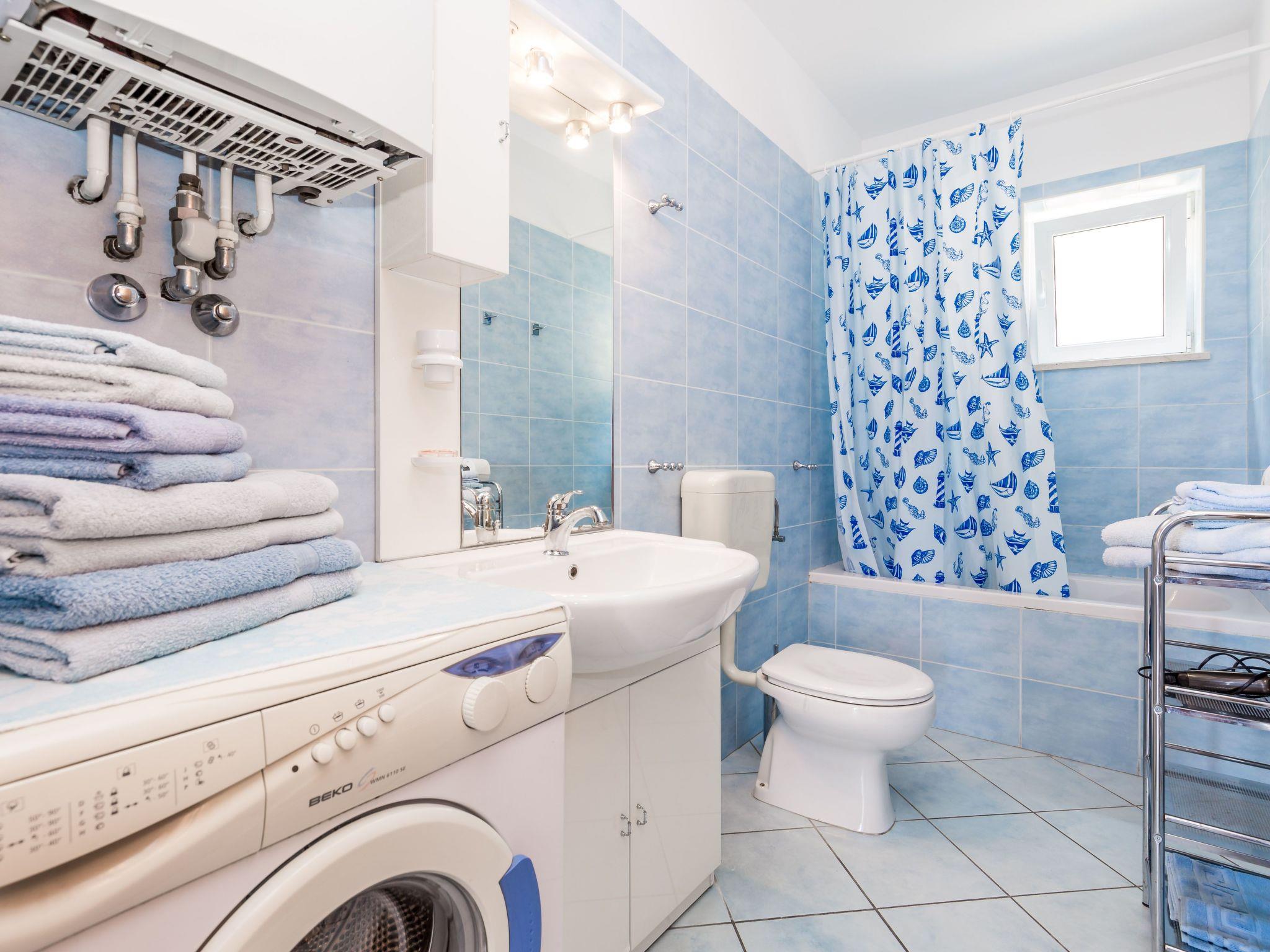 The apartment is located on the first floor and offers a total area of 57 m2 for a comfortable accommodation of 5 persons. It consists of a bedroom with one double bed and one single bed, bathroom with bath, fully equipped kitchen with oven and dishwasher, dining and a living room. In the living room there are extra beds for three persons (double stretch sofa and stretch armchair). Living room and dining room consists of a single space, while the kitchen area is separated. It is equipped with a washing machine.