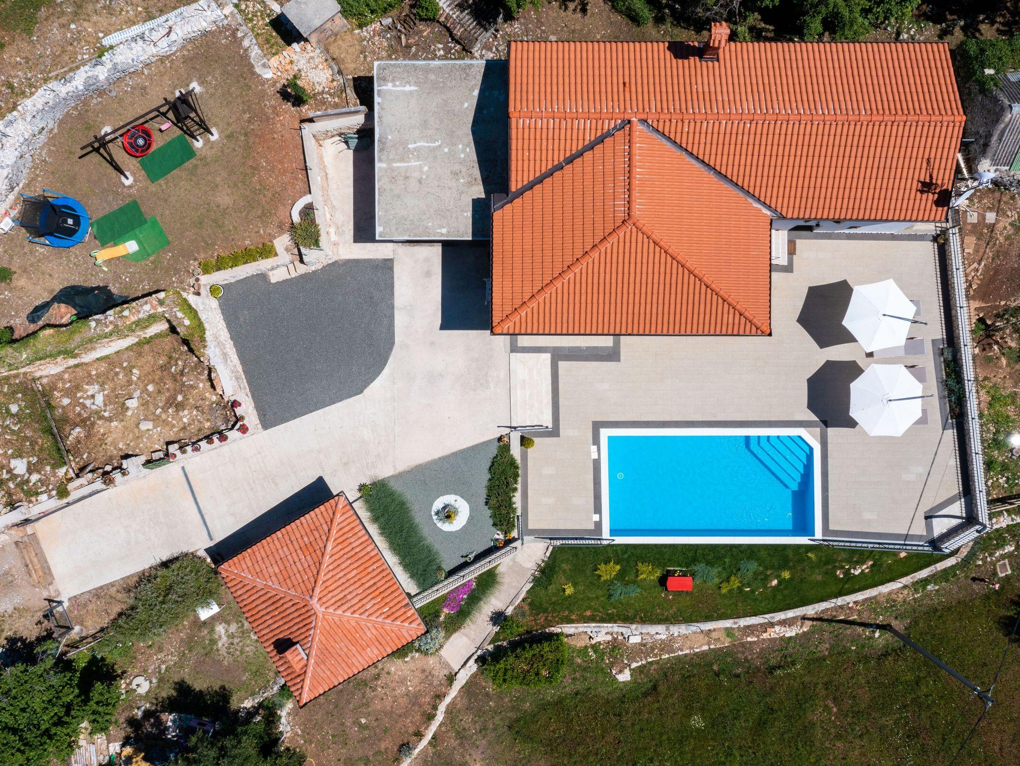 Hof (500m2, Kinderbereich, Sitzbereich), Parkplatz (Anzahl der Parkplätze: 6, Entfernung vom Objekt: im Hof), Pool: privat, Dimensionen: 8m x 4m x 1.45m, Wassertyp: Süßwasser, WiFi Internet, Föhn, Bügeleisen, Bügelbrett, Sonnenschirm, Kinderbett