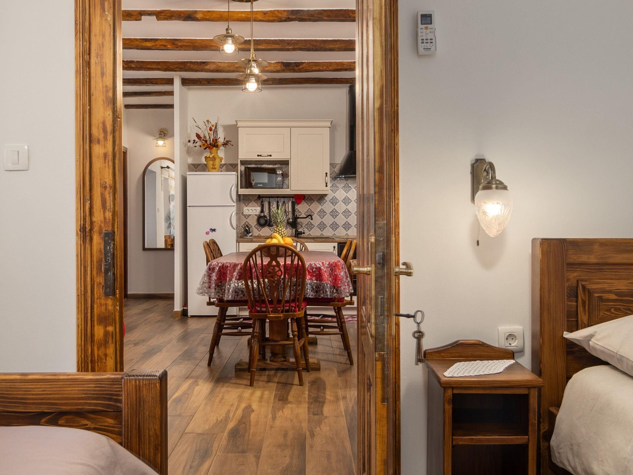 Haus bietet Platz für 7 Gäste. Die Betten sind in Schlafzimmern, die es 2 gibt, und in Wohnzimmer, innerhalb einer Gesamtfläche von 62m2, angeordnet. Die Gäste haben eine eigene Terrasse zur Verfügung, auf der sie in warmen Sommernächten genießen können. Für vollen Genuss und Entspannung gibt es einen privaten Grill für Gäste dieser Unterkunft. Während ihres Aufenthalts können sich Gäste im privaten Schwimmbad entspannen. IM PREIS INBEGRIFFEN: Kurtaxe, Endreinigung, Klimatisierung, Pool, Parkplatz, Internet, Kinderbett, Bügeleisen, Bügelbrett, Föhn, Sonnenschirm. UNVERBINDLICHE ZUSÄTZLICHE KOSTEN: Zentralheizung (10,00 € pro Nacht). Die Verfügbarkeit zusätzlicher Dienstleistungen in Ihrem reservierten Termin und die Preise derselben (falls nicht aufgeführt) müssen im Voraus überprüft werden. Zusätzliche Dienstleistungen die in der Zahlungsaufforderung nicht aufgeführt sind werden direkt beim Vermieter bezahlt, angenommen der Gast nutzt auch diese. Ermäßigung auf den Grundpreis: Gratistag 21=19 (bei einem Aufenthalt von 21 Tagen oder mehr erhalten Sie 2 Gratistage für den Aufenthalt bis 31.12.26).