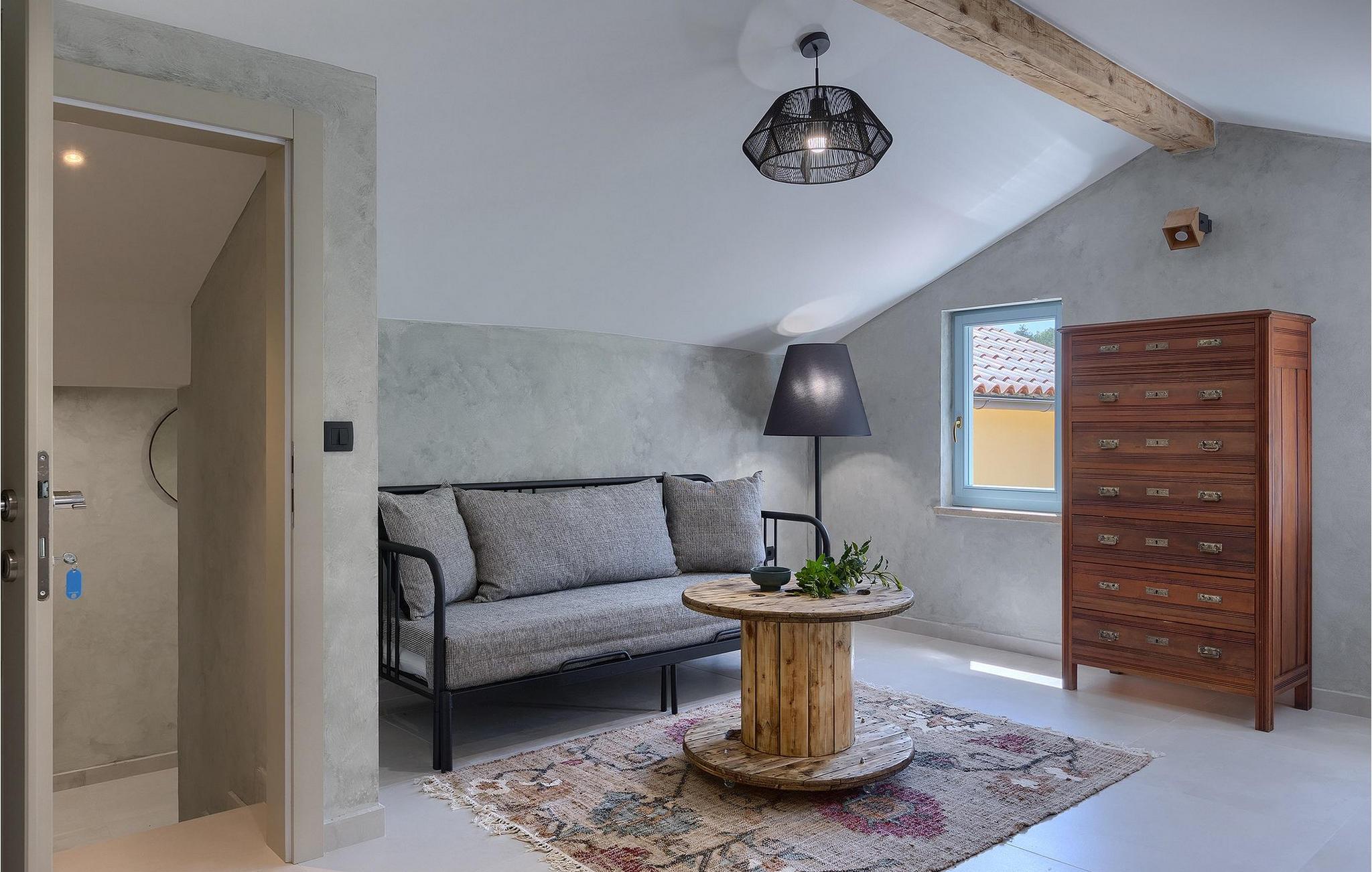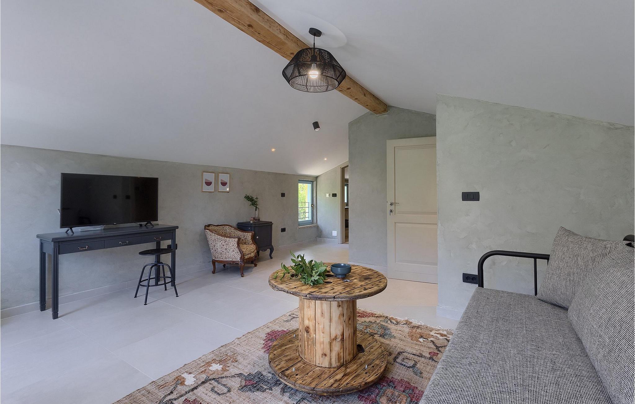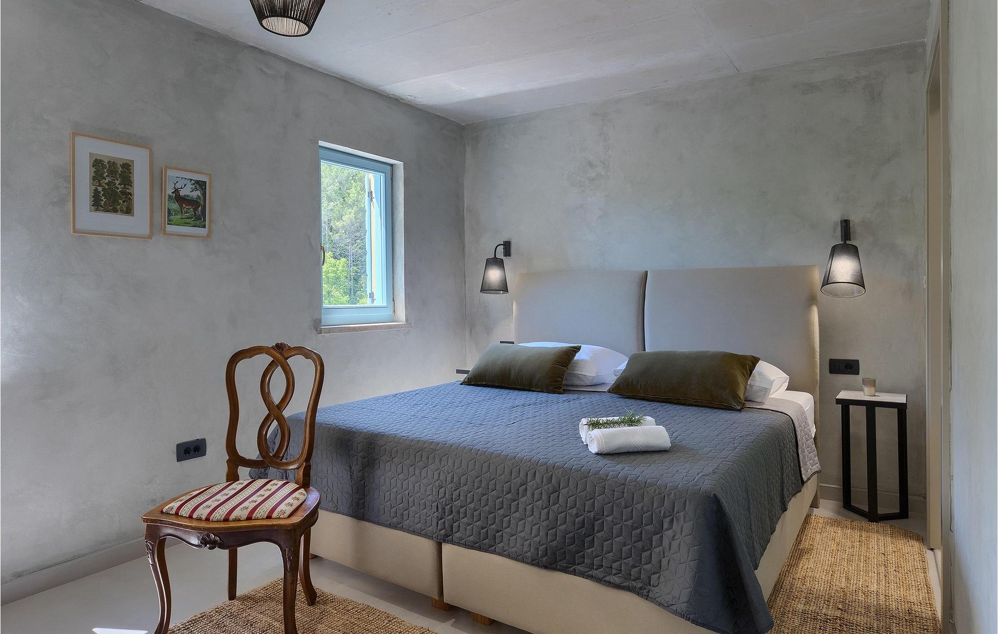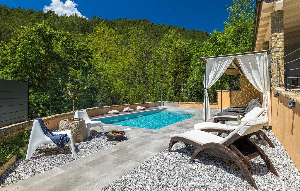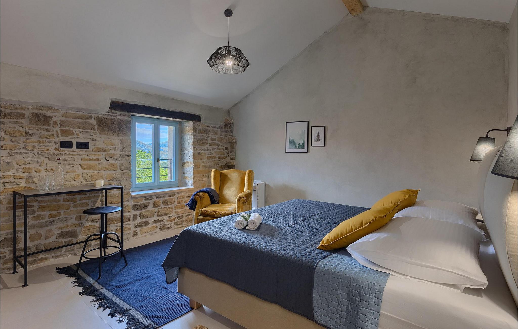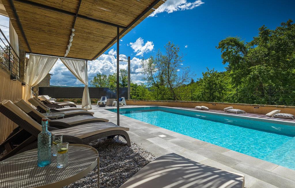 Omgivet af natur? Væk fra folkemængderne? Luksuriøs? Hyggelig? Casa Jovanin tjekker alle boksene! Denne helt nye villa, beliggende i en fredelig landsby i det centrale Istrien, kan komfortabelt rumme 12 gæster på en måde, så alle stadig kan nyde deres privatliv, mens de tilbringer deres ferie sammen i villaen. Villaen har som udgangspunkt 3 etager. Det laveste niveau er poolniveauet. Tag en forfriskende dukkert i poolen eller nyd solen på de hyggelige liggestole. Lidt over poolen ligger det veludstyrede, overdækkede sommerkøkken med køleskab og spiseplads for at sikre, at du kan nyde dine måltider al fresco. Sommerkøkkenet har også en stor kulgrill, så øv dine grillfærdigheder!