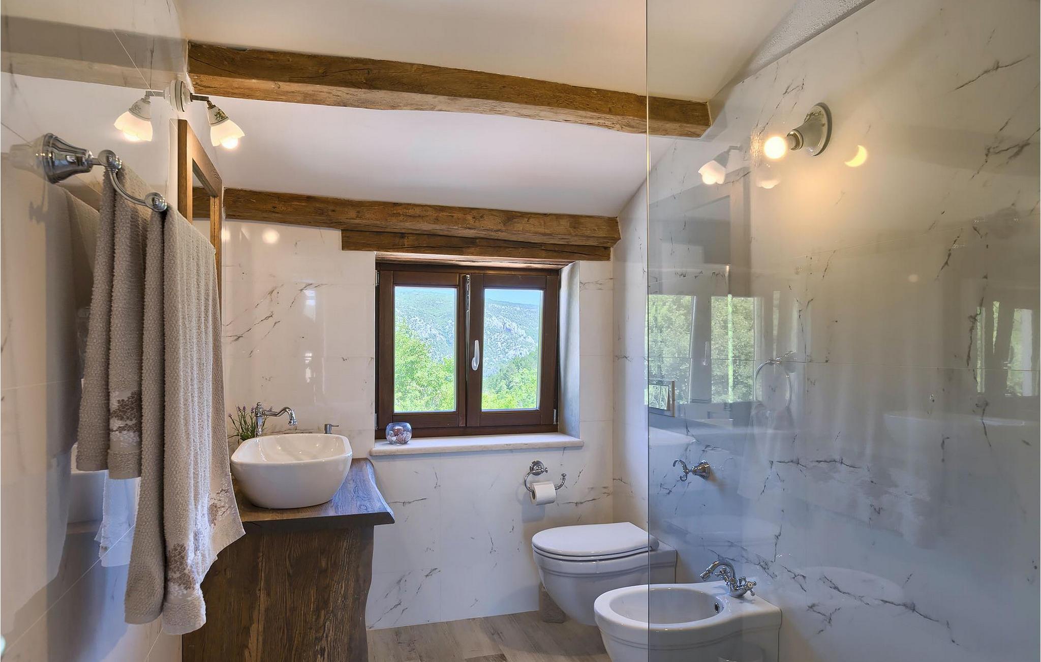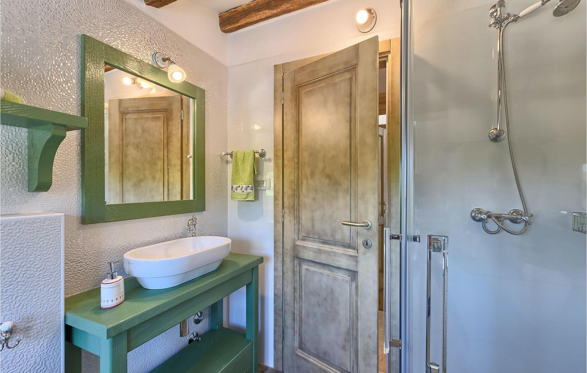 Bare forestil dig, hvordan det føles at gå udenfor og se en charmerende middelalderby på en bakke. Udendørsområdet byder på et indbydende poolområde med liggestole og en overdækket spiseplads med et smukt sommerkøkken og en kulgrill. Fra den skyggefulde terrasse har du direkte adgang til den åbne stueetage. I stueetagen finder du en romantisk stue med pejs, en skøn spiseplads og et fuldt udstyret køkken, som kombinerer moderne med rustikke detaljer. Villaen har fire soveværelser, alle med aircondition og eget badeværelse. Tre soveværelser har en dobbeltseng og et soveværelse har to enkeltsenge. Men det er ikke alt! På nederste etage finder du et wellness-område med sauna og jacuzzi for at gøre din ferie endnu mere perfekt.