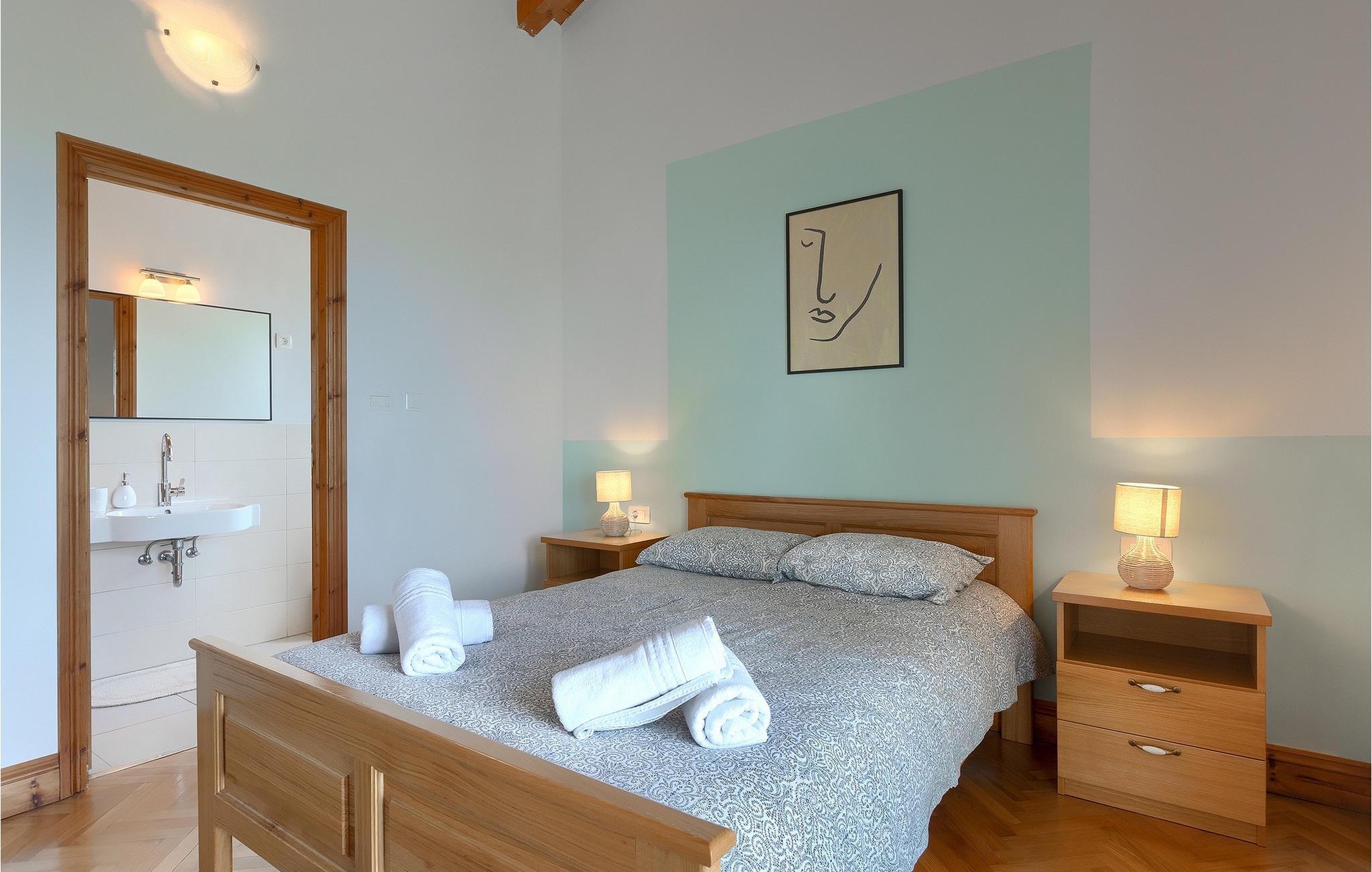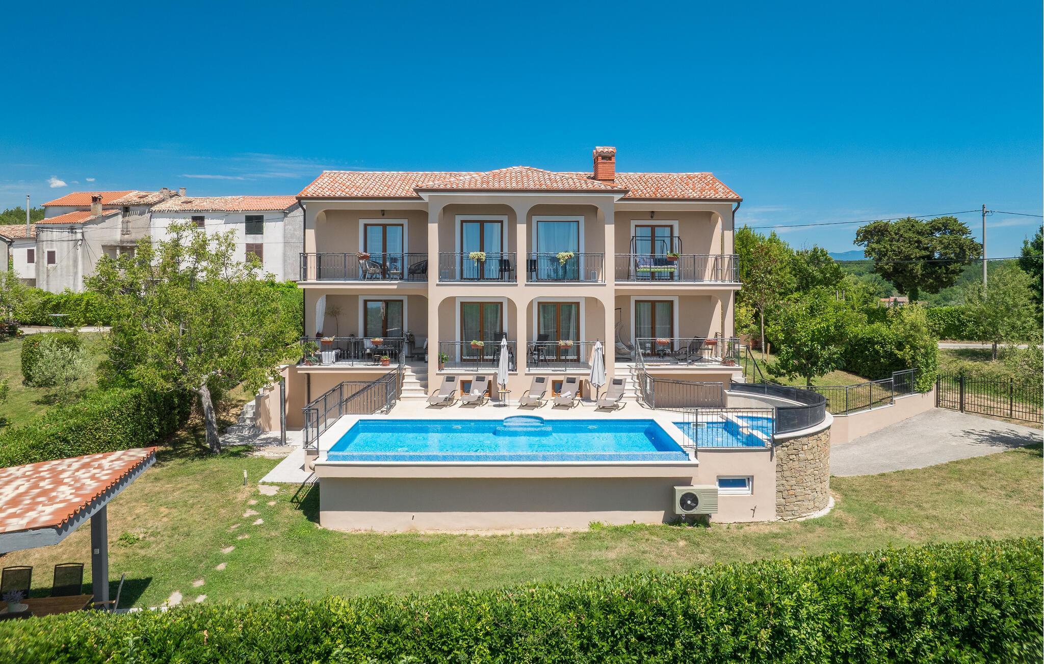 Smuk familie Villa Mahovic er 2 etagers hus beliggende i hjertet af Istrien, kun en kort køretur fra Motovun. Villaen er opdelt i to separate lejligheder. Stuelejligheden består af et moderne og fuldt udstyret køkken, en spisestue, en komfortabel stue med tv og et vaskerum. Der er også to soveværelser og to badeværelser. Går du ovenpå finder du endnu en lejlighed med rummelig stue og spisestue med pejs, et veludstyret køkken, to soveværelser og to badeværelser. Tre af fire soveværelser har en dobbeltseng, mens et soveværelse har to enkeltsenge. Fra første sal er der udgang til den store terrasse med opholdsstue, hvorfra du kan nyde den smukke udsigt og roen i omgivelserne. Hvis du vil tilbringe din ferie med at slikke dig i solen, er der foran villaen en skøn stor privat pool. Poolen er et rigtigt højdepunkt i villaen. Den 41m2 store pool består af et almindeligt poolområde (1,5m dybde) og et børnepoolområde for de mindste. Der er også et spabad, som kan opvarmes. Blot få skridt væk ligger den fantastiske have, med en trampolin og en legeplads, hvor dine børn hygger sig, mens du laver en lækker middag på kulgrillen, som også står til din rådighed. Villaen er perfekt til to familier eller grupper, der søger deres eget privatliv i separate lejligheder, men som stadig ønsker at tilbringe en uforglemmelig ferie i Istrien sammen!Villa Mahovic ligger i den lille landsby Novaki Motovunski i det centrale Istrien, en kort køretur fra smukke by Motovun. Motovun er en af de mest berømte middelalderbyer beliggende på en bakke. Gå en tur gennem byens smalle gader og bymurene, der omslutter denne smukke by, og nyd udsigten over dalen ved floden Mirna. Ikke langt fra villaen ligger Motovun-skoven, et unikt sted, hvor du kan gå på jagt efter hvide og sorte trøfler. Efter en sjov, men trættende dag bør du besøge en af de mange taverner, der tilbyder traditionelle istriske retter såsom istrisk pasta med trøfler, ombolo eller boškarin, og runde det hele af med et godt glas istrisk Malvasia. For alle kulturelskere anbefaler vi bestemt et besøg i kystbyerne Pula, Rovinj og Porec med deres rige romerske og venetianske historie. Udover sin rige kultur er Istrien også kendt for sine smukke strande, der strækker sig langs vestkysten til Kap Kamenjak og videre ind i den nordlige del til byen Rabac.