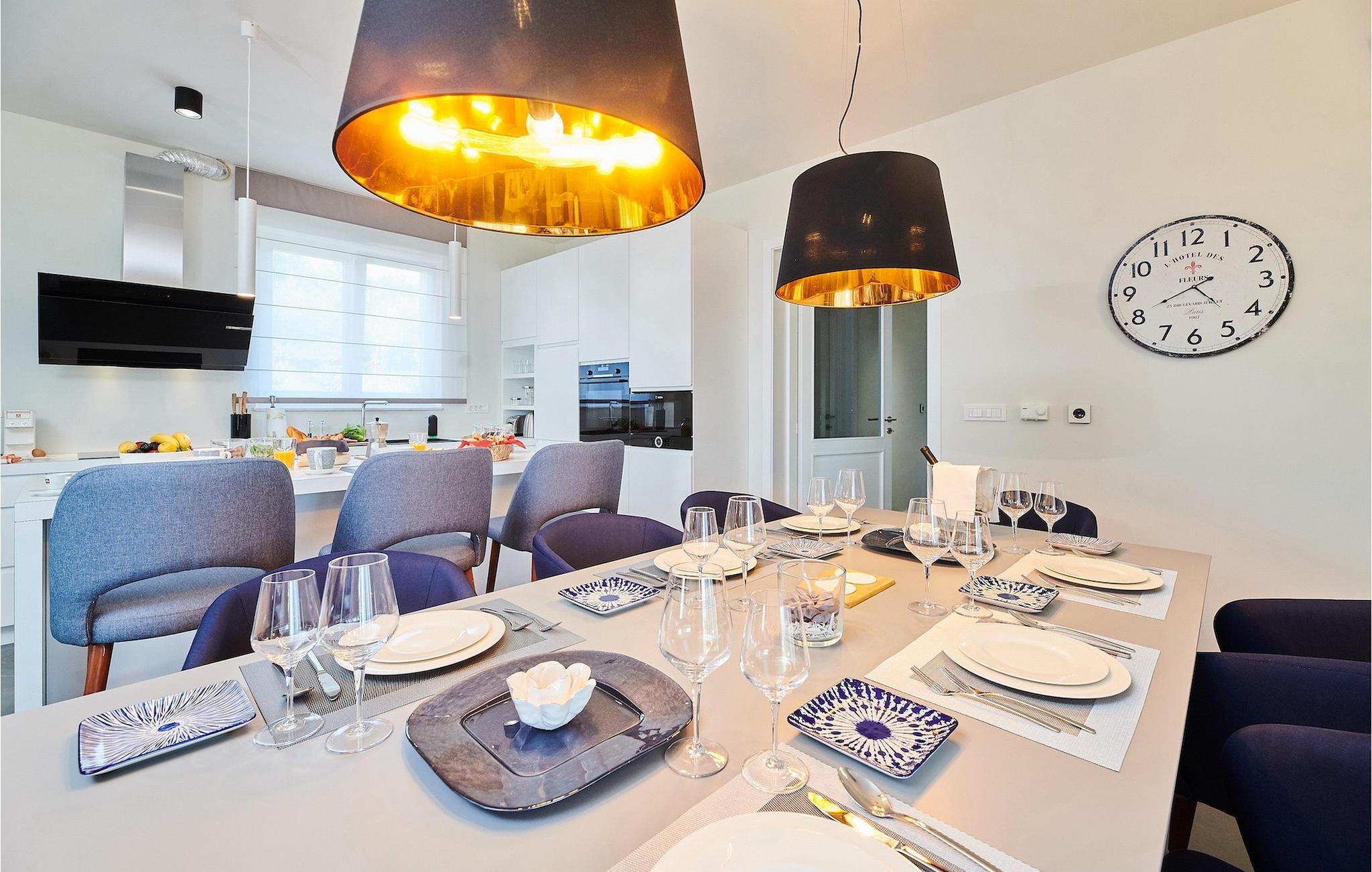 Interiøret i Villa Rainis Hill Top vil inspirere dig med den moderne indretningsstil. Stueetagen af villaen har en elegant møbleret stue med pejs, en spisestue og et fuldt udstyret køkken. På samme etage finder du 2 soveværelser med eget badeværelse og separat toilet. På første sal er der yderligere to vidunderlige soveværelser med ensuite badeværelser og et studie.