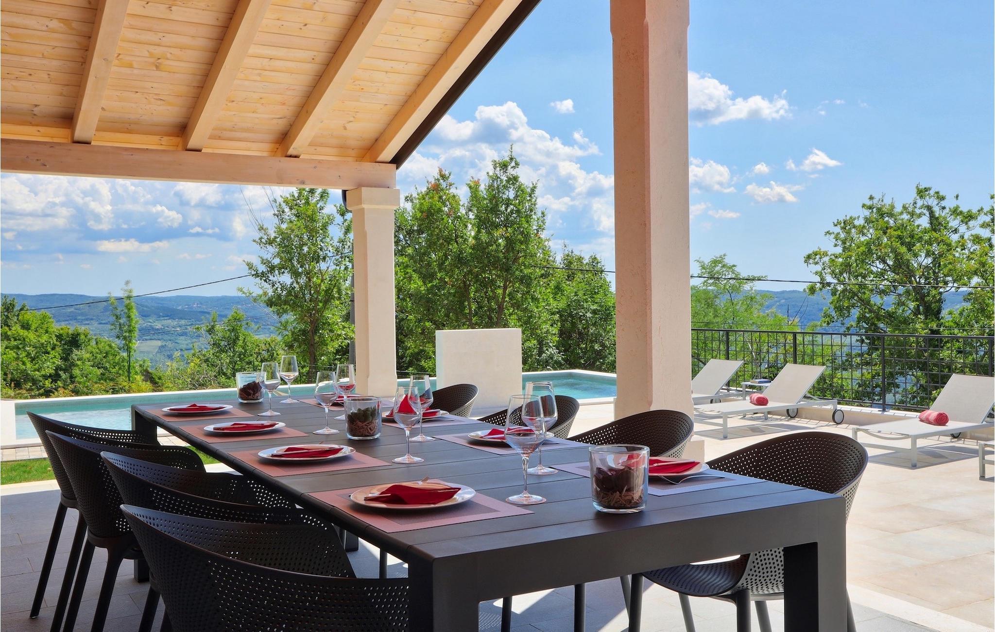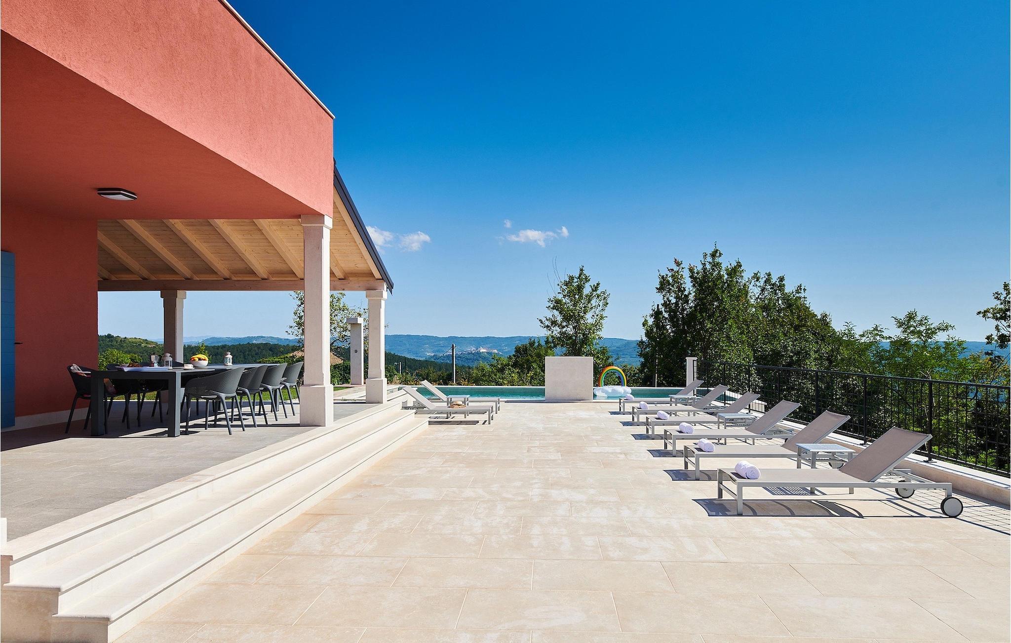 Drømmer du om en ferie i idylliske omgivelser med en smuk udsigt, så er Villa Rainis Hill Top det perfekte valg for dig! Smukke Villa Rainis Hill Top ligger på en bakke i det centrale Istrien. På den rummelige ejendom finder du en privat pool, hvor du virkelig kan slappe af og nyde den istriske naturs stilhed. På den rummelige terrasse på Villa Rainis Hill Top finder du en spiseplads med grill, hvor du virkelig vil nyde din familieferie. Under dit ophold på Villa Rainis Hill Top vil du slappe af ved poolen, hvor du kan nyde en betagende udsigt over de omkringliggende skove, Mount Ucka og det maleriske Motovun. Hvis du virkelig vil nyde din fritid, er der også en finsk sauna til rådighed i villaen.