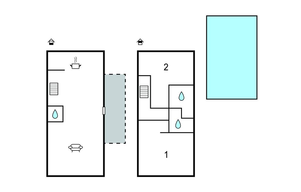 Soveværelse (nr. 1) - 2 Sovepladser. (Enkeltseng(e)).
