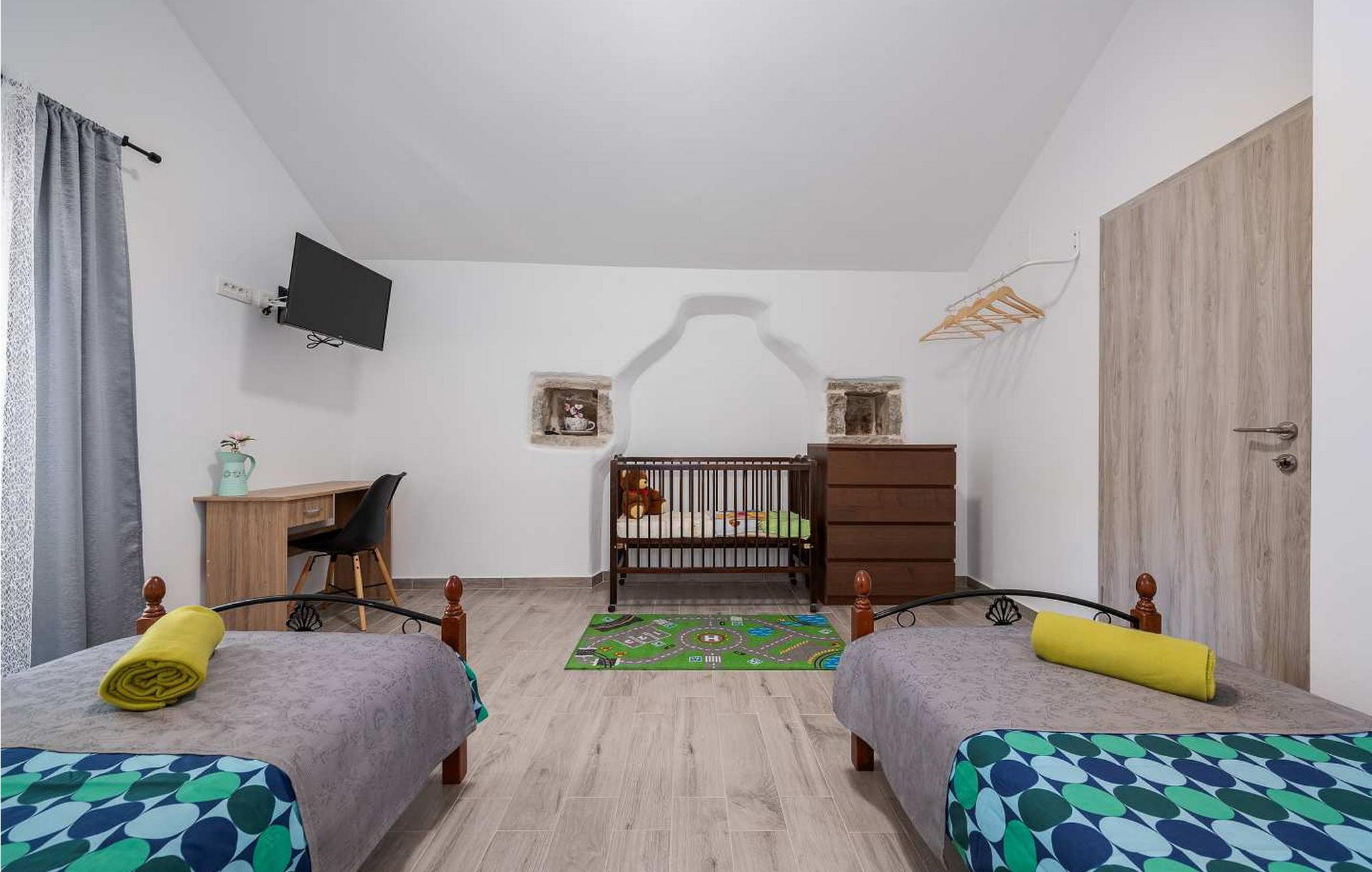 Madonna delle Nevi er et istrisk stenhus beliggende i uberørt natur i en lille landsby i den nordlige del af Istrien. Fra swimmingpoolen er der en fantastisk udsigt over det grønne landskab og de omkringliggende bakker. Villaen er bygget i 1918 og totalrenoveret i 2020. Det omkringliggende område er kendt for fremragende vinavlere, fremragende traditionelle værtshuse og særdeles smuk natur. I umiddelbar nærhed af huset er der en naturlig klatrevæg og 3 km videre et unikt vandfald med sø. På en stor ejendom har gæsterne en swimmingpool, liggestole, parasol, grill og spisebord, legeplads og parkering til flere biler til deres rådighed. Madonna delle Nevi har et boligareal på 100 kvm og er til 4 gæster. I stueetagen er der en stue med aircondition, spisestue, fuldt udstyret køkken og et separat toilet. På første sal er der et soveværelse med dobbeltseng, et soveværelse med to enkeltsenge og et badeværelse. Et klimaanlæg til første sal er i hallen. Bemærk venligst, at denne ejendom ikke accepterer ungdomsgrupper eller polterabends. En ungdomsgruppe på denne ejendom er en gruppe bestående af personer på 26 år eller derunder. Book ikke denne ejendom, hvis du er en ungdomsgruppe eller et polterabend, da din reservation vil blive afvist efter booking, hvilket kan omfatte ved ankomst til ejendommen eller under dit ophold, og du vil ikke blive refunderet.