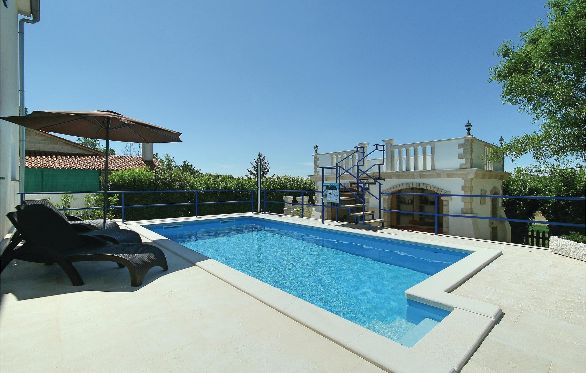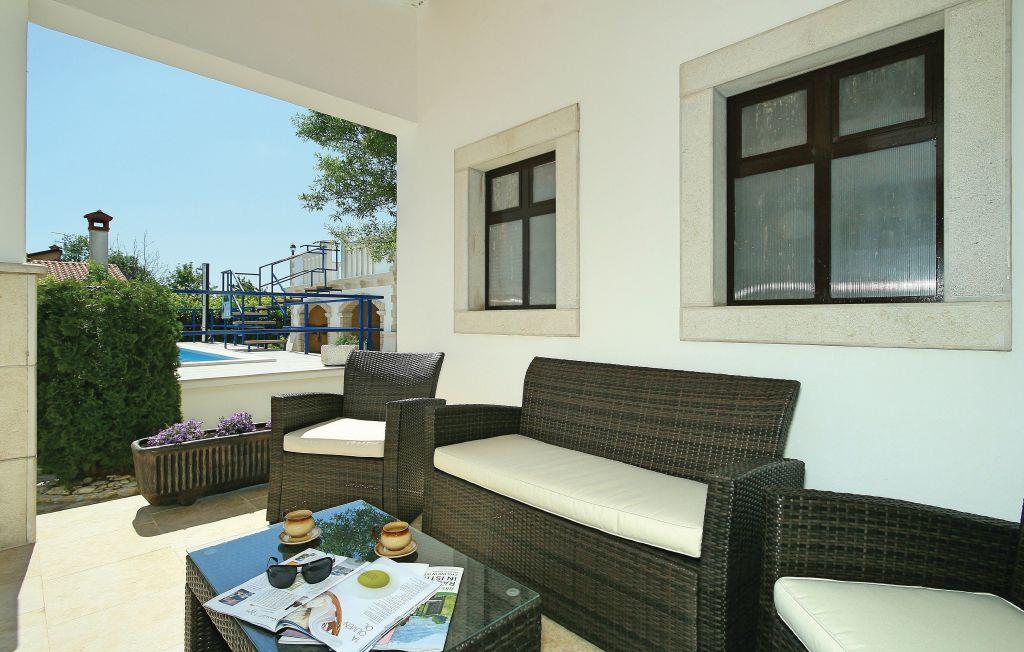 Dette stenhus ligger midt i Istrien, med skøn udsigt ud over landskabet, højt på en bakketop. Huset er omgivet af smukke stenmure som både giver privatsfære og en skøn udsigt ud over landskaberne. Ejer er en pensioneret stenhugger, ejendommen bærer præg af hans kunstværker. Det mest opsigtsvækkende er et komplet lille hus, udhugget som en af de lokale villaer. Fra poolen kommer I op til et udsigtspunkt, hvor I også kan tage solbad. Kun husets stueplan udlejes, alligevel har i adgang til den overdækkede terrasse på første sal.