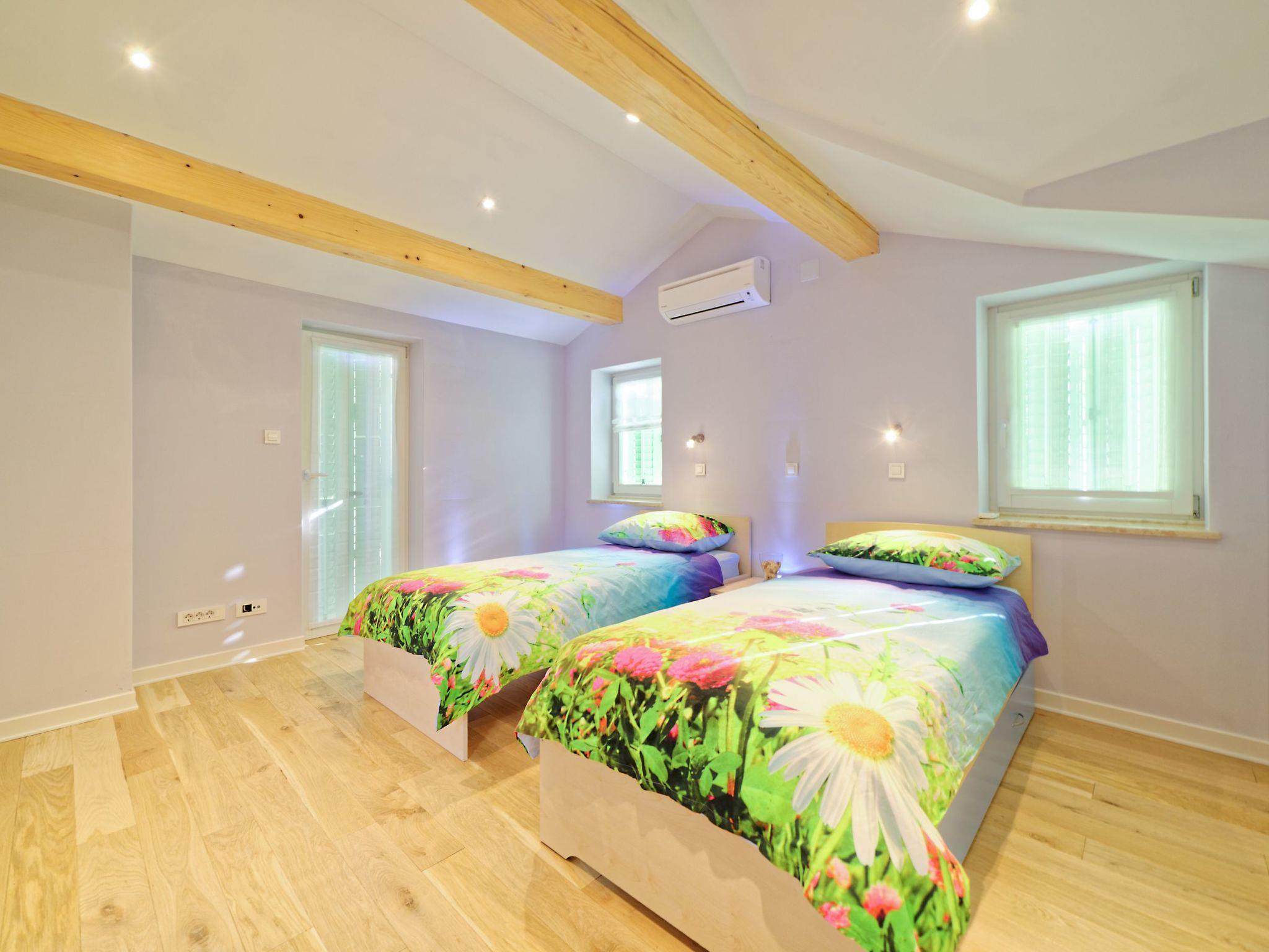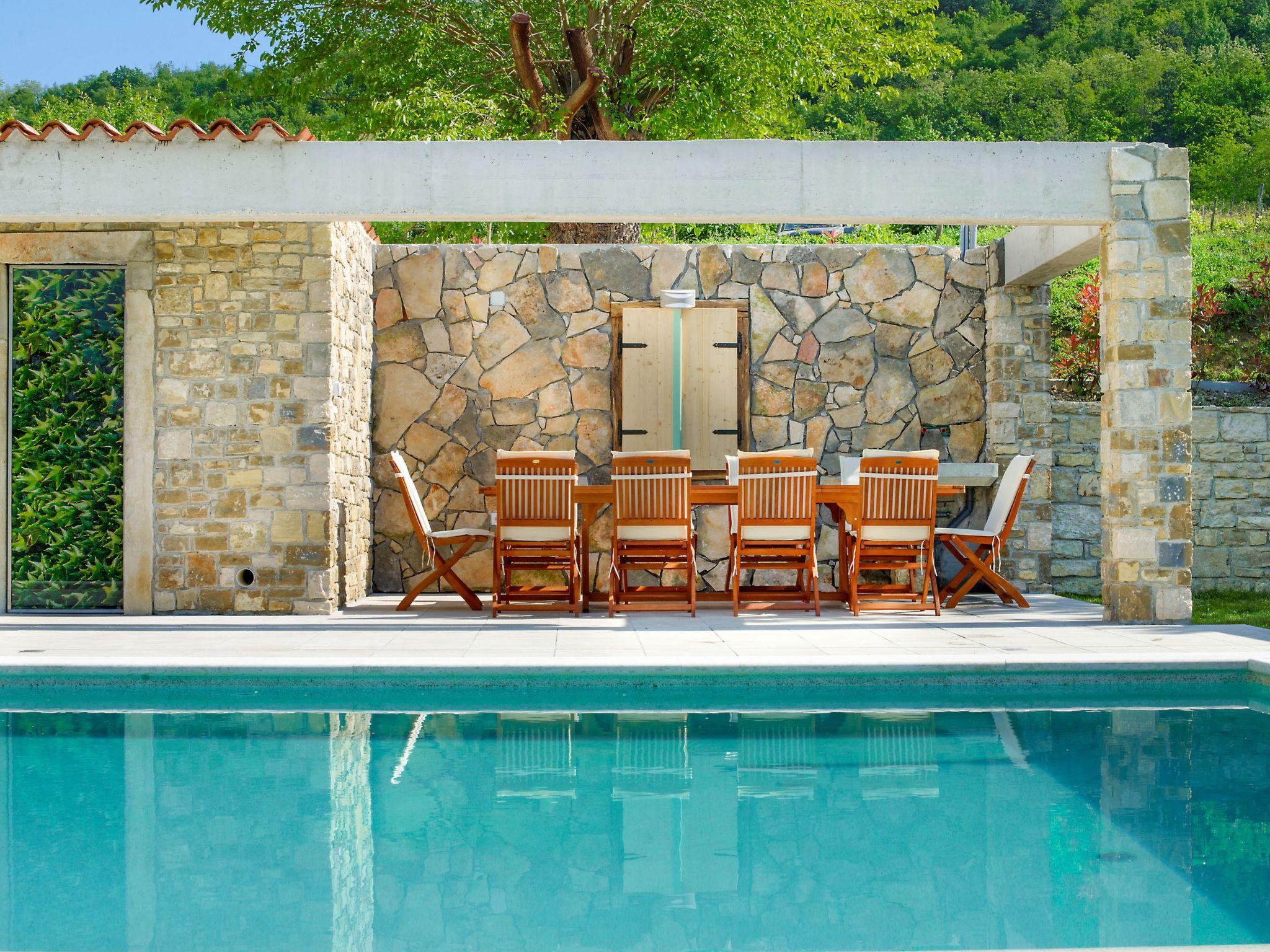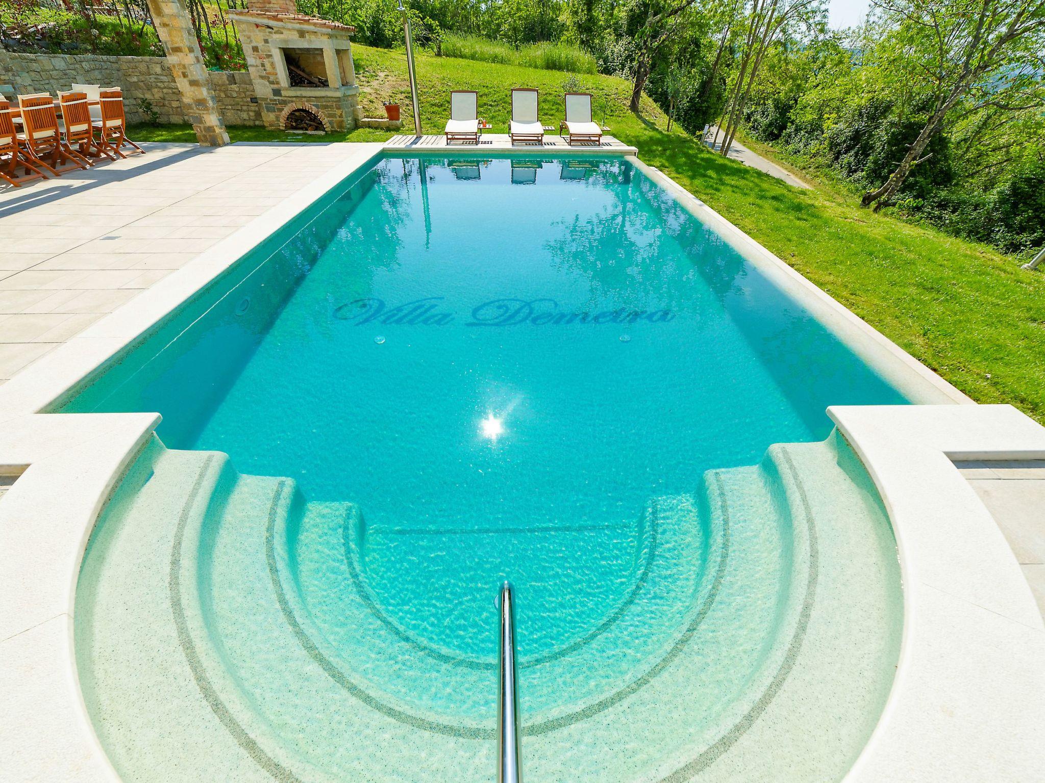 Villa Demetra for 8 people with a total living area of 259 m2 is spread over three floors. On the ground floor of the house there is a fully equipped kitchen with dining room, living room with exit to the pool area and garden, and toilet with washing machine. On the first floor there are two bedrooms each with double bed, en-suite bathrooms, and access to the covered balcony with garden furniture and beautiful views. On the 2nd floor this villa offers 2 bedrooms, one of them with double bed and bathroom, and a twin bedroom with bathroom. Both with access to the balcony with garden furniture and beautiful views of charming Motovun and beautiful Istrian inland. The whole villa is fully air-conditioned and has wireless internet.