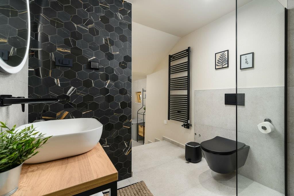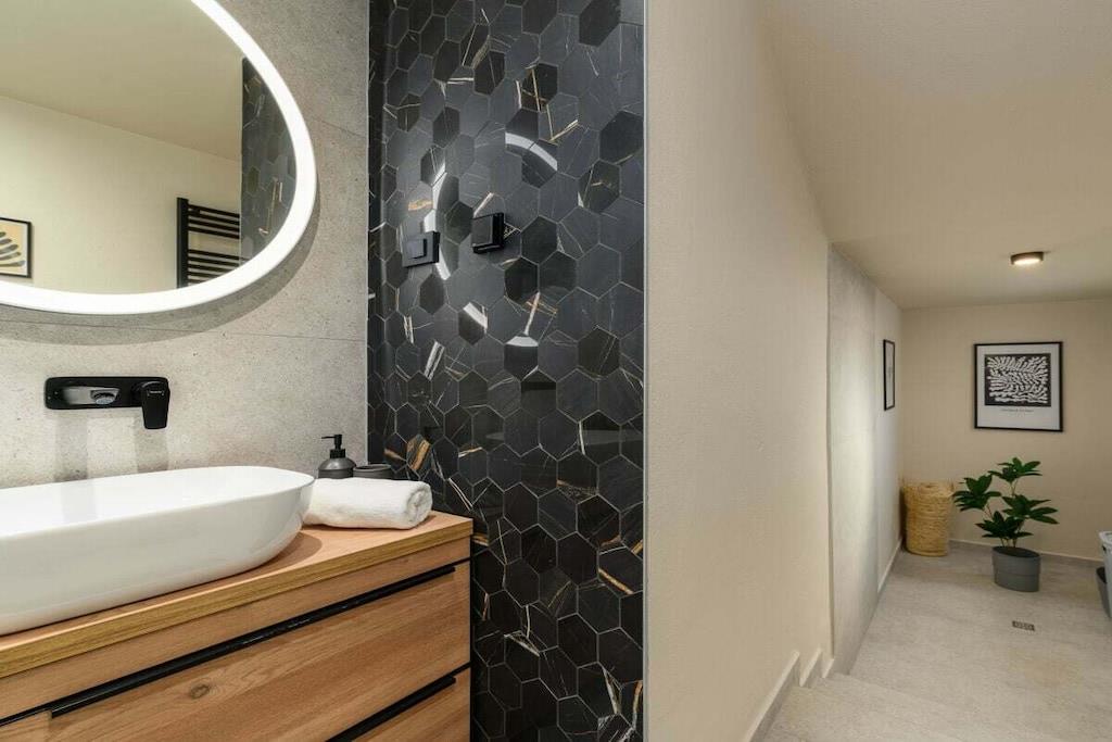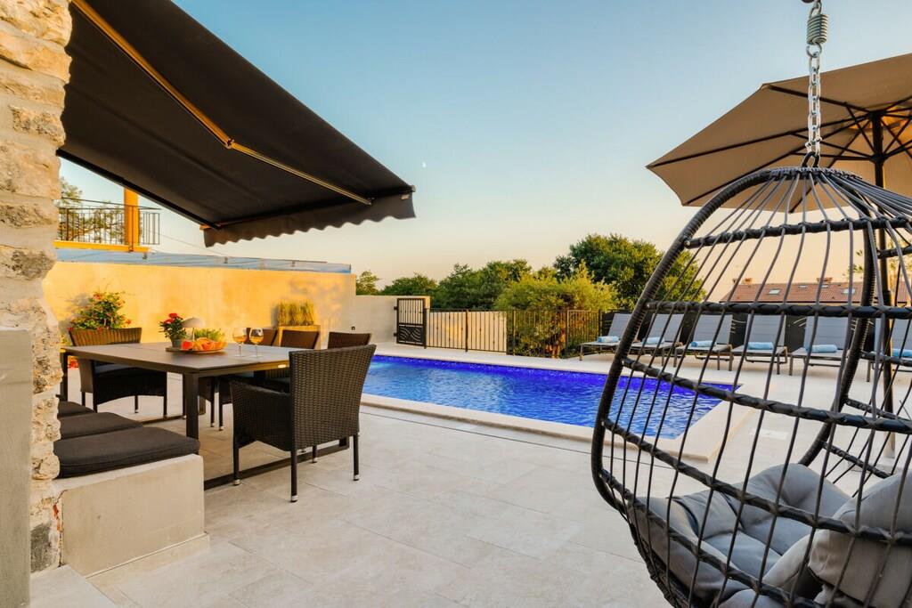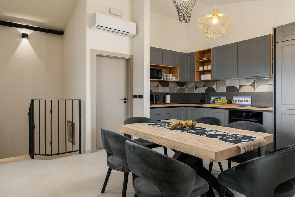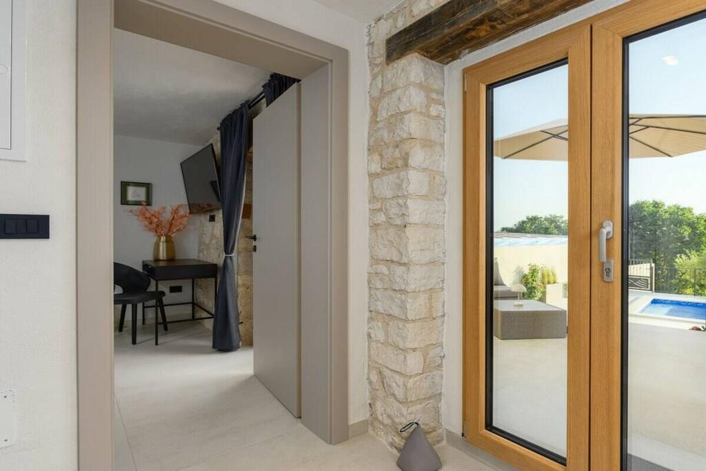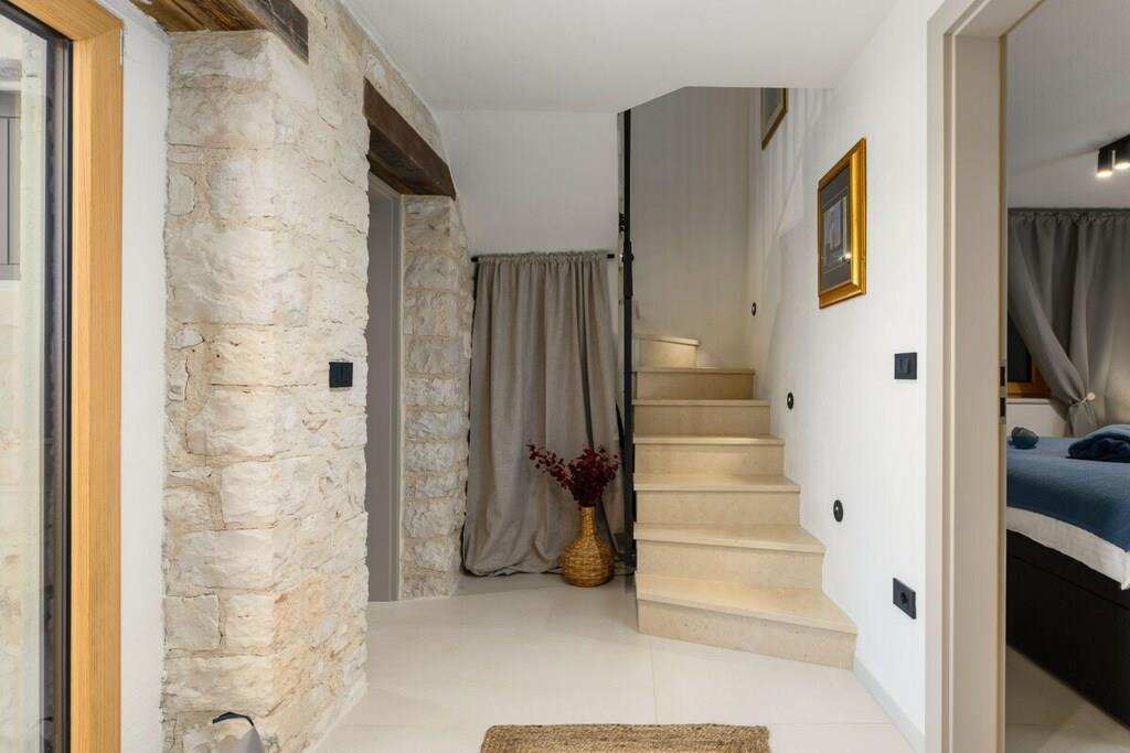 Casa Mar i Mugeba, Istrien, er en nyrestaureret istrisk stenvilla med en fantastisk havudsigt. Den har en charmerende have med privat pool, grillplads og parkering på stedet. Den består af en stue, spisestue, køkken og badeværelse med bruser på øverste etage samt to dobbeltværelser og et badeværelse med bruser i stueetagen. I et af soveværelserne kan dobbeltsengen laves om til to enkeltsenge. Havens hovedtræk er poolen og siddeområdet foran den, men også strandområdet, et andet område i nærheden af soveværelserne og en balkon ved indgangsdøren. Hvert område er separat, hvis du har brug for et roligt hjørne, men stadig tæt nok på til at være tæt på. Casa Mar ligger i den lille landsby Mugeba nær Porec med udsigt over Zelena Laguna. Det er tæt på Aquacolors, et vandland i Porec. De nærmeste strande, samt en skilift, adskillige barer og restauranter, ligger i Zelena Laguna. Uanset om du leder efter en romantisk getaway eller en familieferie, lover Casa Mar en uforglemmelig oplevelse i Istrien. Slap af i dette traditionelle istriske stenhus, og nyd den smukke Adriaterhavskyst. Dit istriske eventyr begynder på Casa Mar!