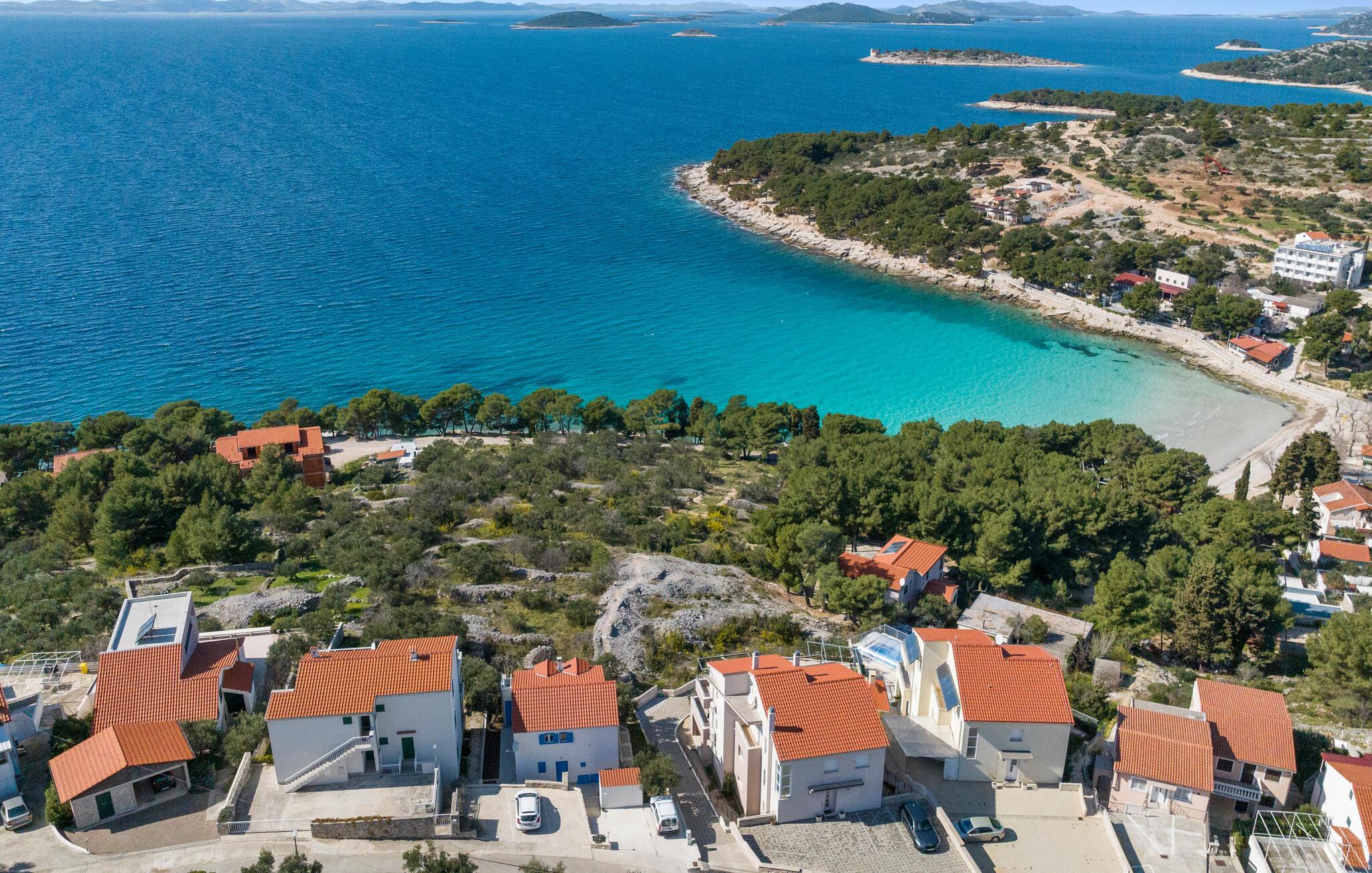 Beliggenheden kunne ikke være bedre, da I kun har en kort gåtur til den indbydende strand. I kan også gå ind til byen Murter og gå på opdagelse u de små butikker og spise på restauranter. Udforsk den smukke ø eller tag til fastlandet via broen. Vi anbefaler et besøg i Kornati National Park, hvortil der organiseres bådture dagligt, og hvor I kan beundre den spektakulært smukke natur og det krystalklare hav.