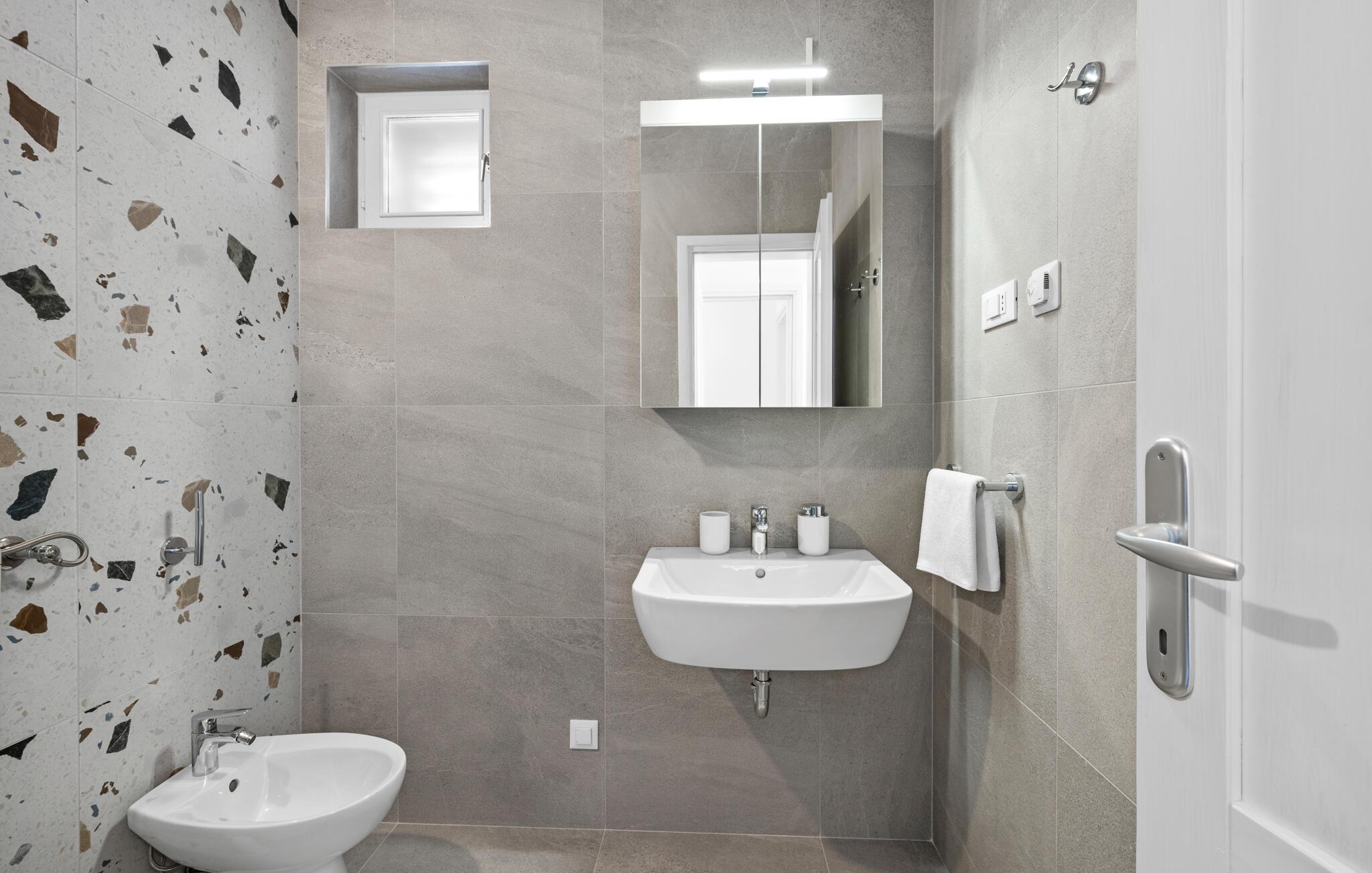 Badeværelse (nr. 1) - WC. Varmt og koldt vand. Bruser