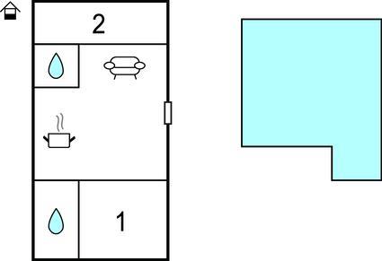 Opholdsstue/køkken - 2 Sovepladser. (Sofa, madras eller lignende).