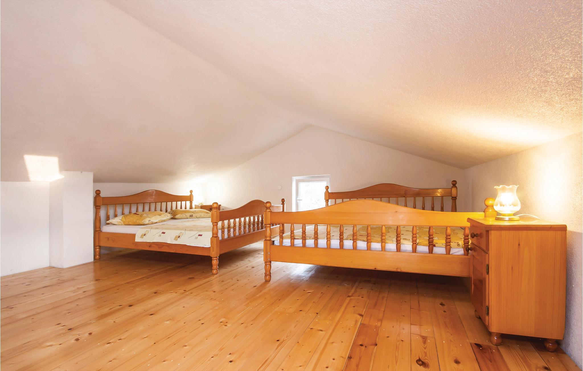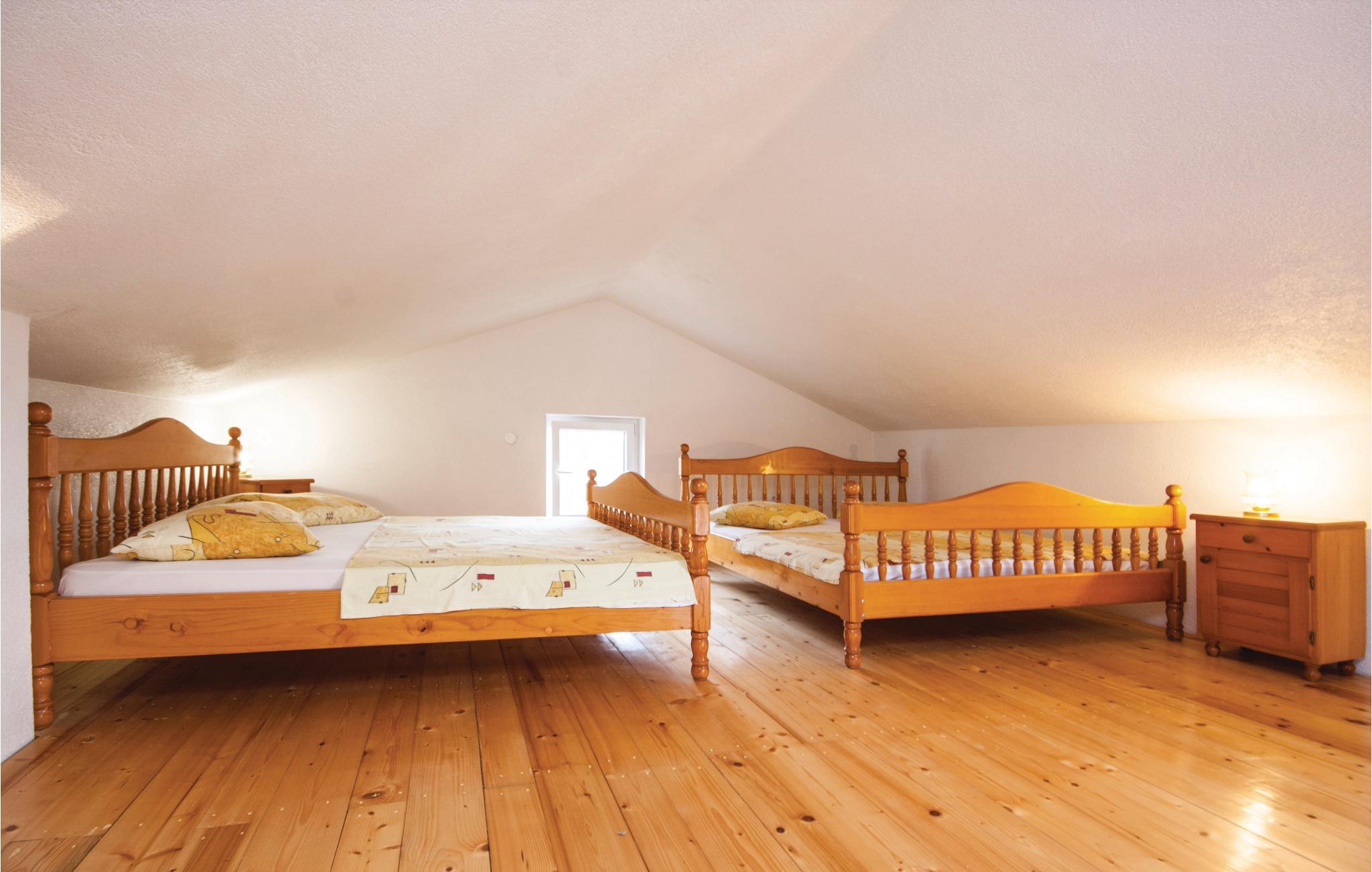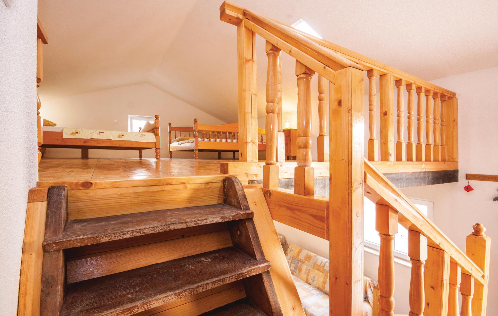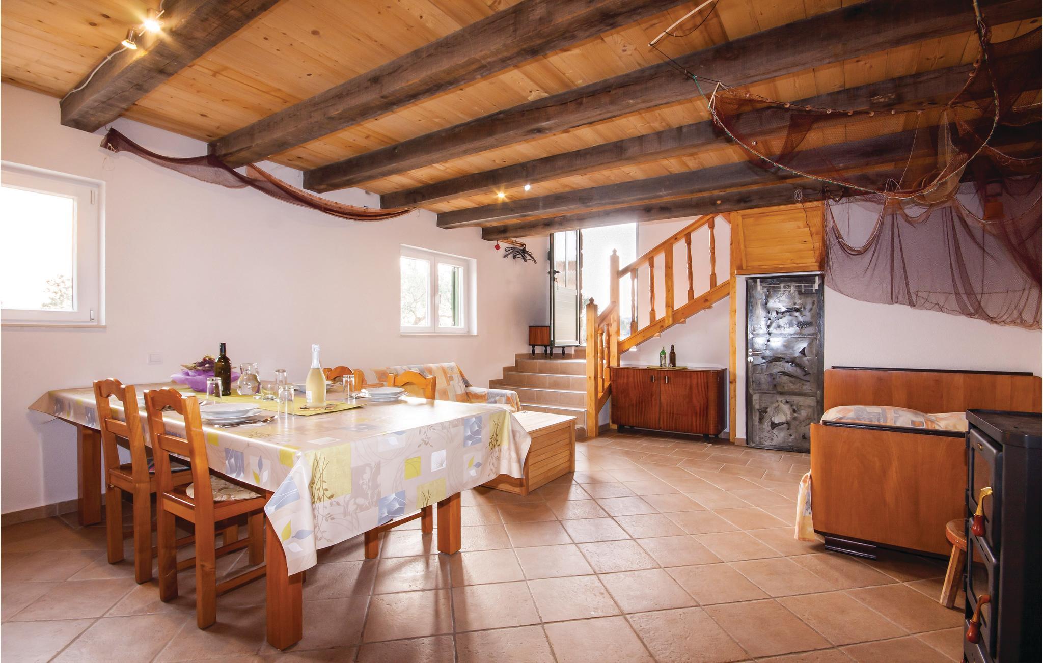 Dette toetages, typisk dalmatiske feriehus, er praktisk indrettet. På øverste etage er en hems med en loftshøjde på 120 cm. Huset ligger, omgivet af oliventræer, i den rolige Jezera på en stor grund. Jezera er en populær ferieby på øen Murter, med en bro der forbinder øen med fastlandet. Til cyklisterne er der et flot net af cykelstier. Hvis I søger en fredelig og afslappet beliggenhed til jeres ferie, er denne et godt valg. Spadser gennem naturen ud til en lille hemmelig bugt 200 meter væk. Nyd udsigten fra grunden over det åbne vide hav.