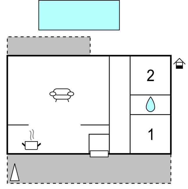 Opholdsstue/køkken - 2 Sovepladser. (Sofa, madras eller lignende).