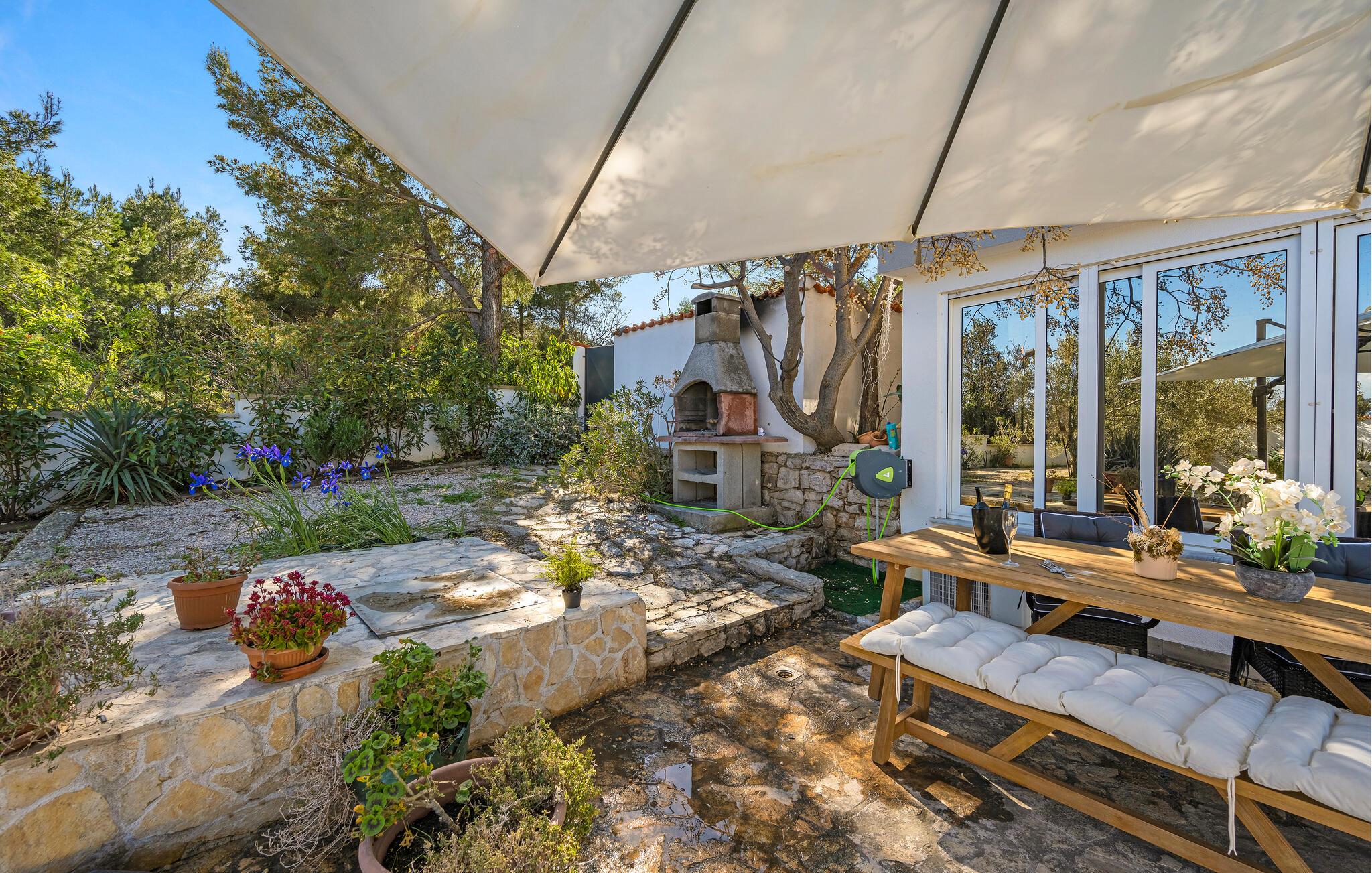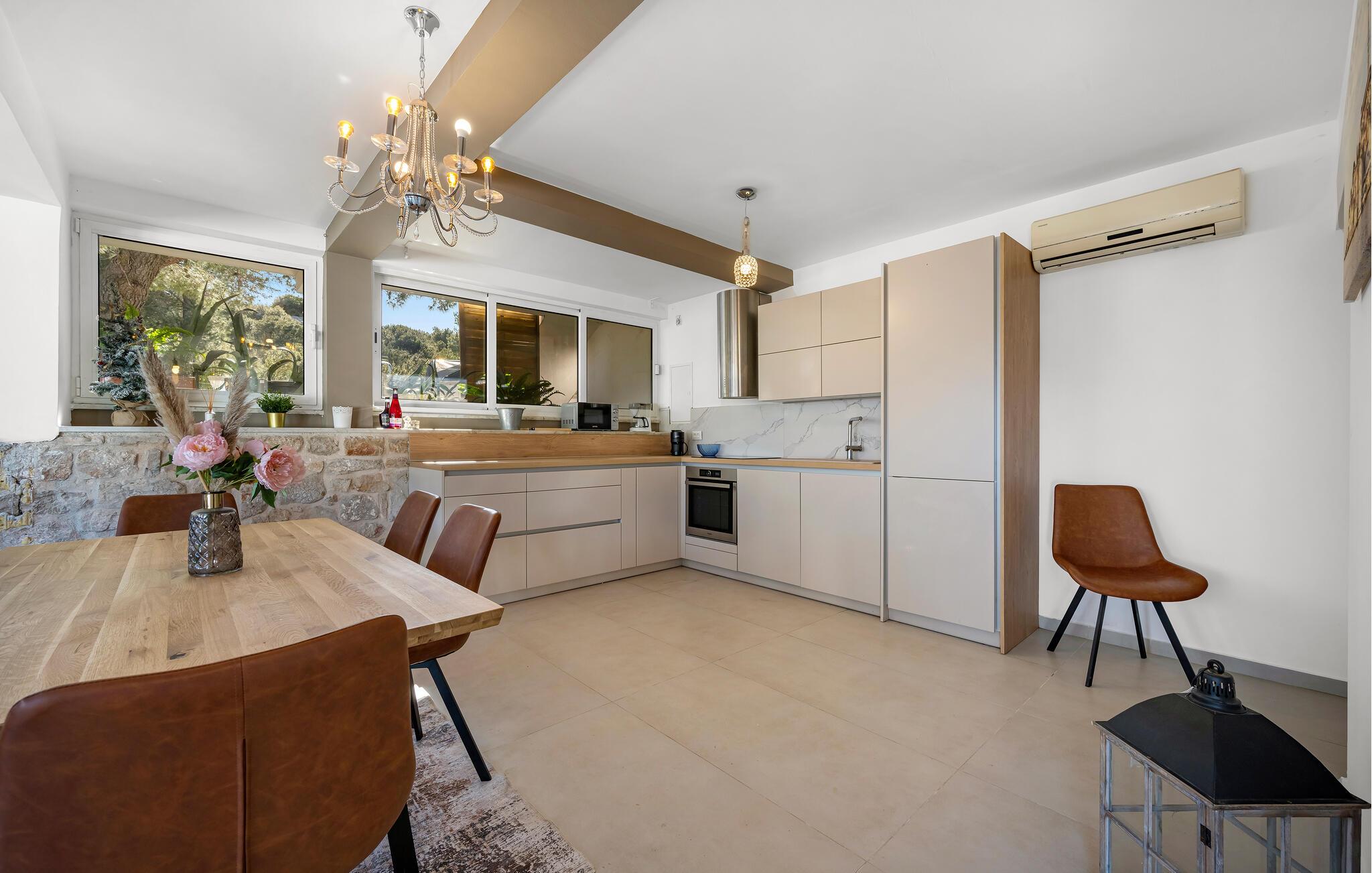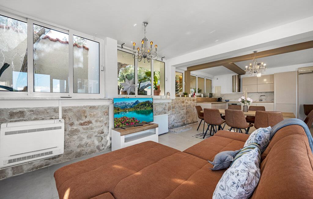 Denne smukke ferielejlighed med privat pool ved indgangen til Jezera på øen Murter er det perfekte tilflugtssted til en afslappende ferie. Den smagfuldt indrettede lejlighed giver jer og jeres familie eller venner et komfortabelt hjem, hvor I kan nyde roen og det særlige middelhavspræg i området. Tilbring solrige dage ved poolen, og afslut aftenen med en grillaften på den hyggelige terrasse – den mediterrane atmosfære indbyder til ren afslapning.