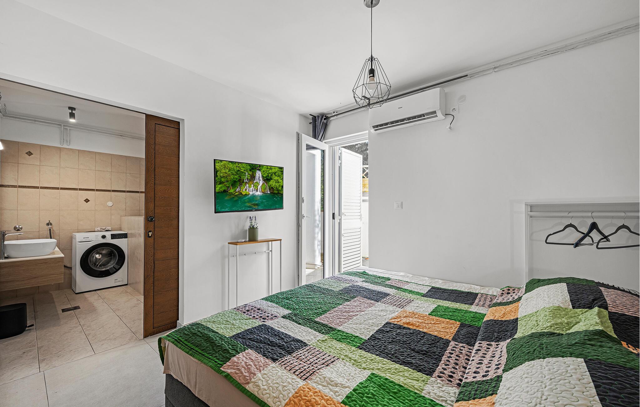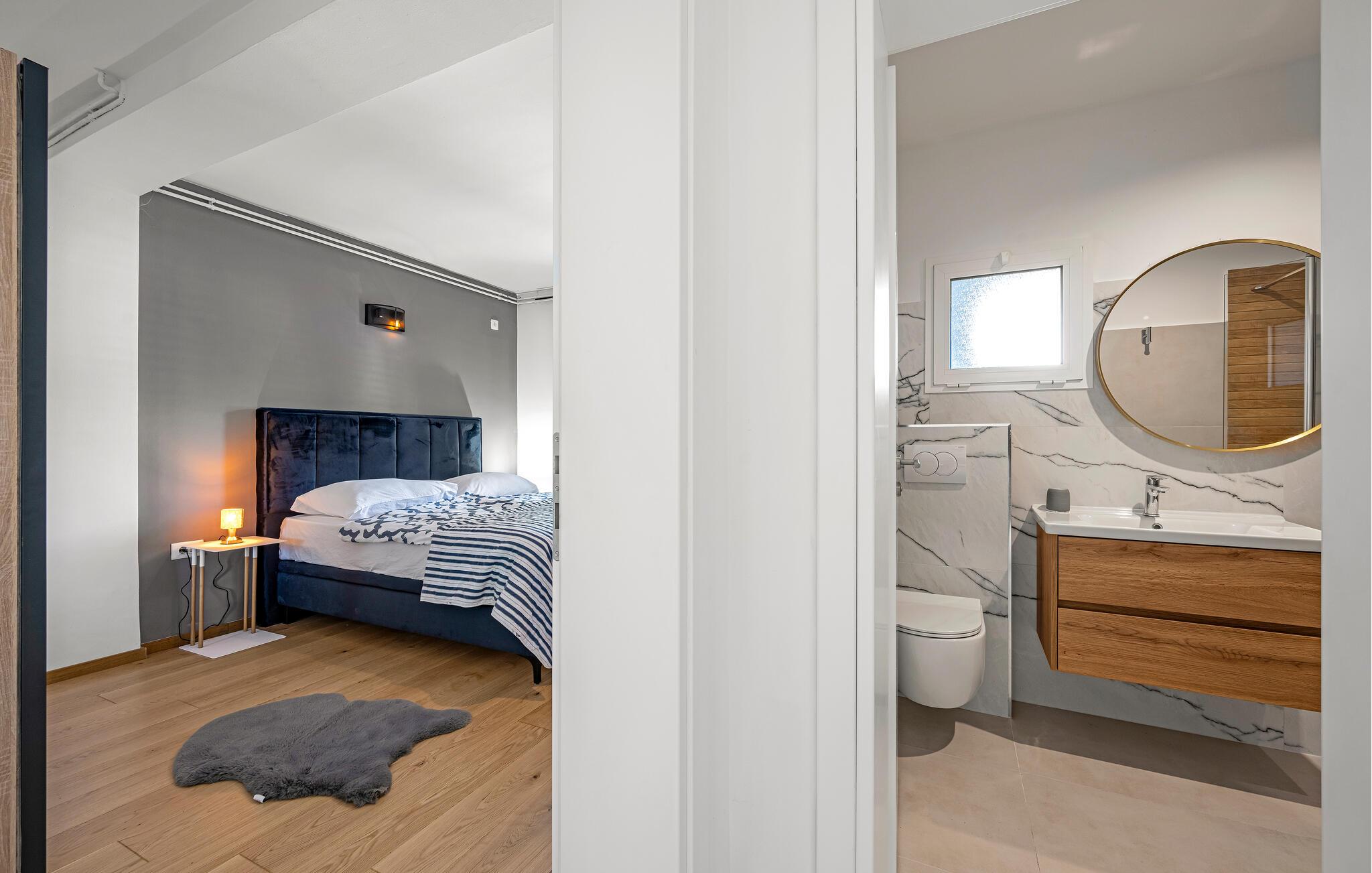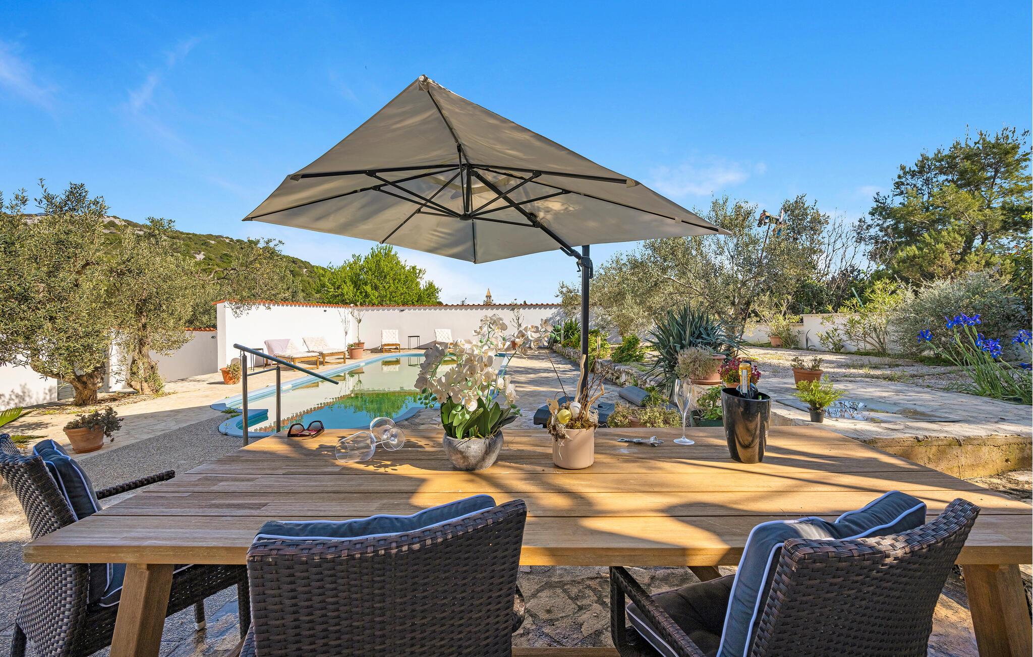 Denne smukke ferielejlighed med privat pool ved indgangen til Jezera på øen Murter er det perfekte tilflugtssted til en afslappende ferie. Den smagfuldt indrettede lejlighed giver jer og jeres familie eller venner et komfortabelt hjem, hvor I kan nyde roen og det særlige middelhavspræg i området. Tilbring solrige dage ved poolen, og afslut aftenen med en grillaften på den hyggelige terrasse – den mediterrane atmosfære indbyder til ren afslapning.