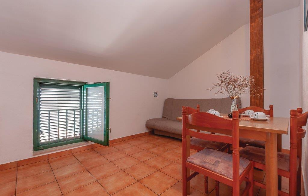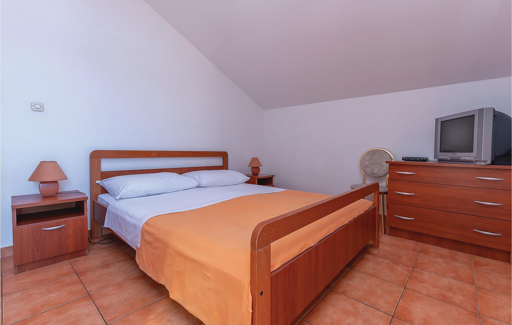 Denne funktionelt og enkelt indrettede ferielejlighed ligger på øverste etage med en laveste loftshøjde på 160 cm. Fra soveværelset er der udgang til altalen, med en skøn panoramaudsigt over havet. På den lukkede grund med parkeringsplads står grillen, hvor I kan tilberede lækre måltider. Havet ligger kun 30 meter væk. Besøg de naturskønne nationalparker Sibenik og Split og tag til Vodice og besøg en af de lækre restauranter. Besøg Tisco og øen Murter, hvis skønne strande og mange kulturelle seværdigheder bestemt er en køretur værd.