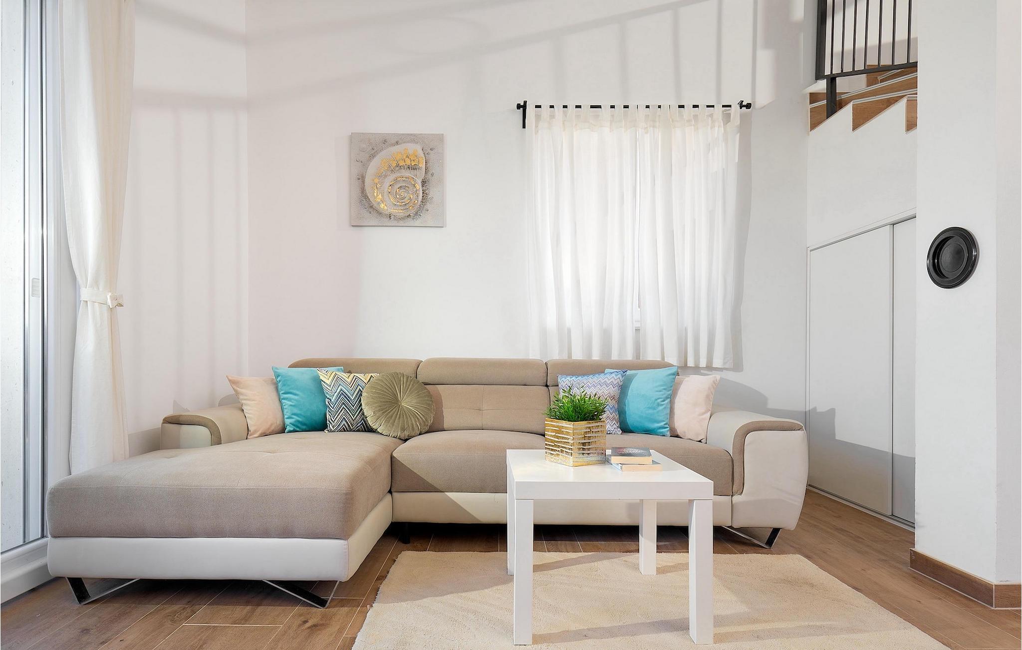 Betreten Sie die Villa von der Terrasse aus, so erwartet Sie ein heller, freundlicher und offener Wohnbereich mit voll ausgestatteter Küche. Im Erdgeschoss befindet sich auch eines der 4 komfortablen Schlafzimmer sowie ein modernes Badezimmer.