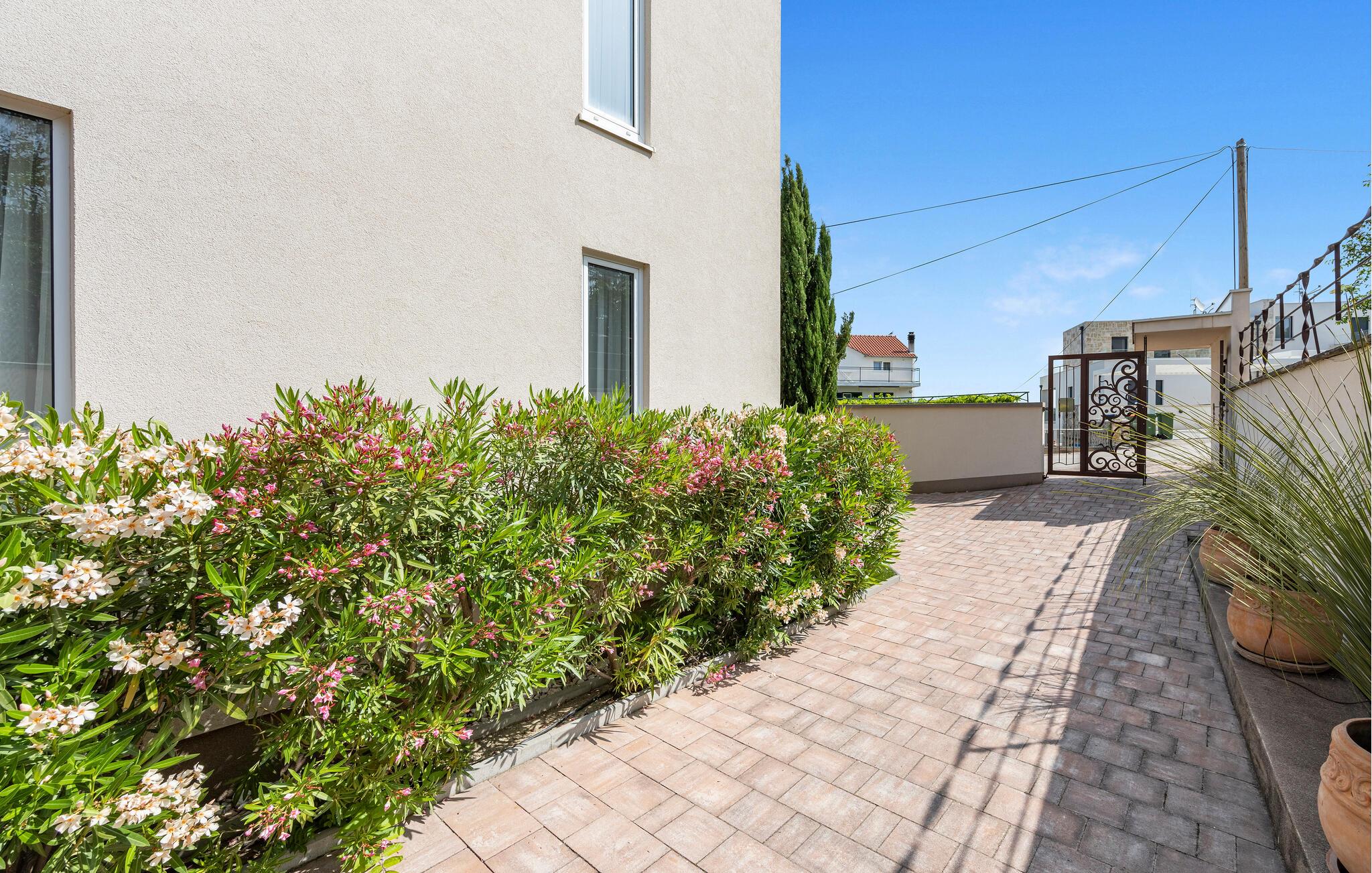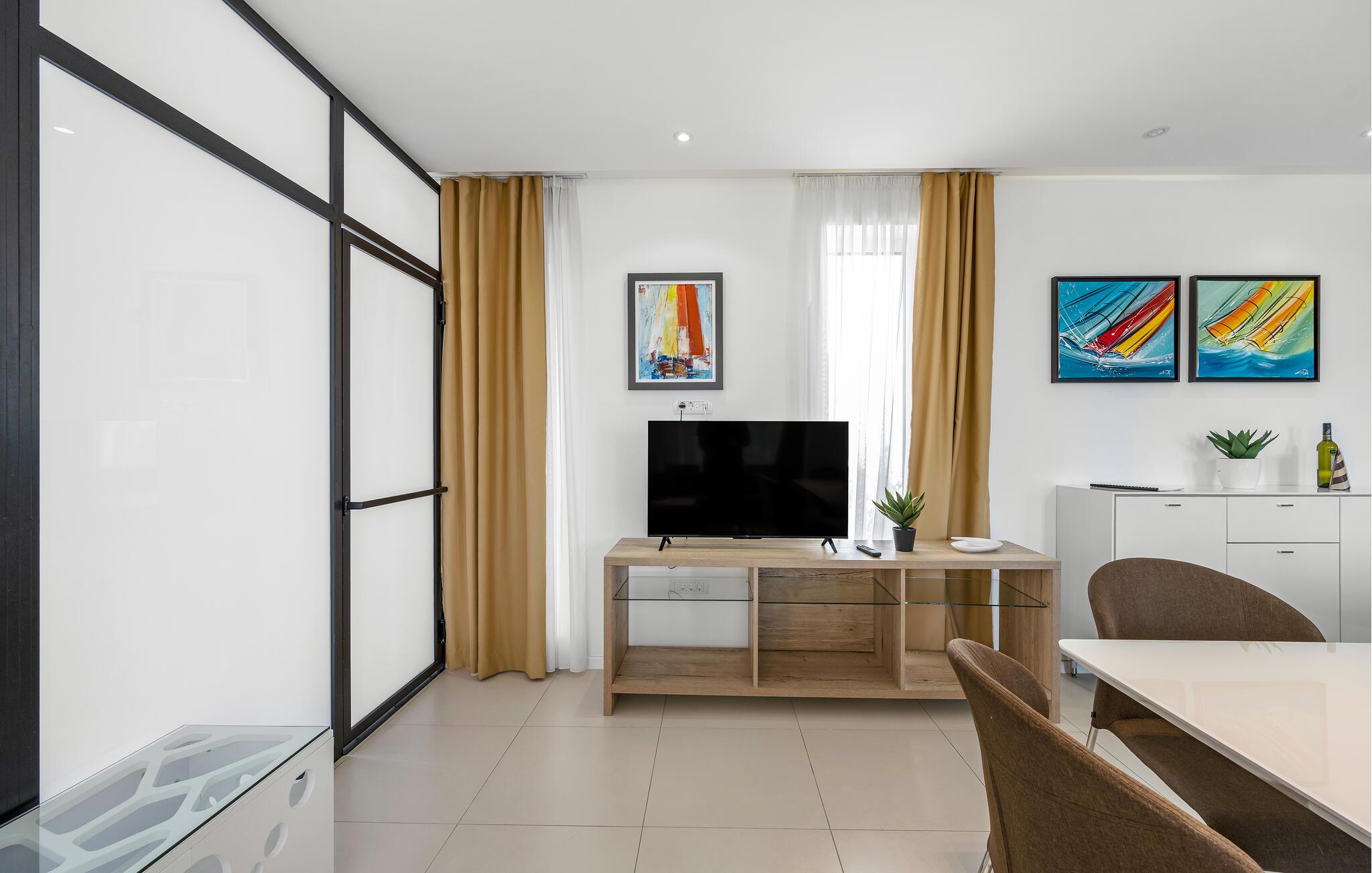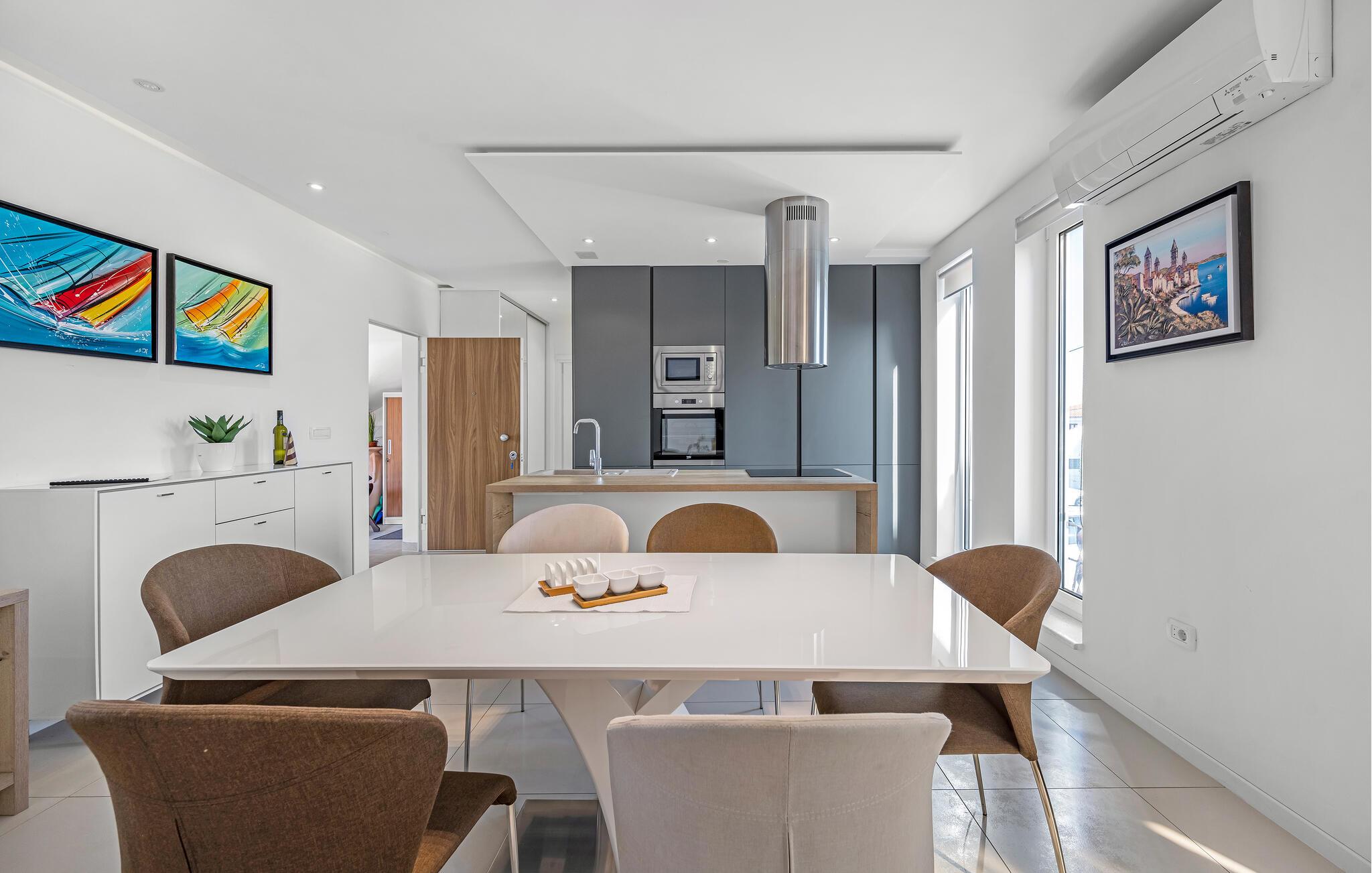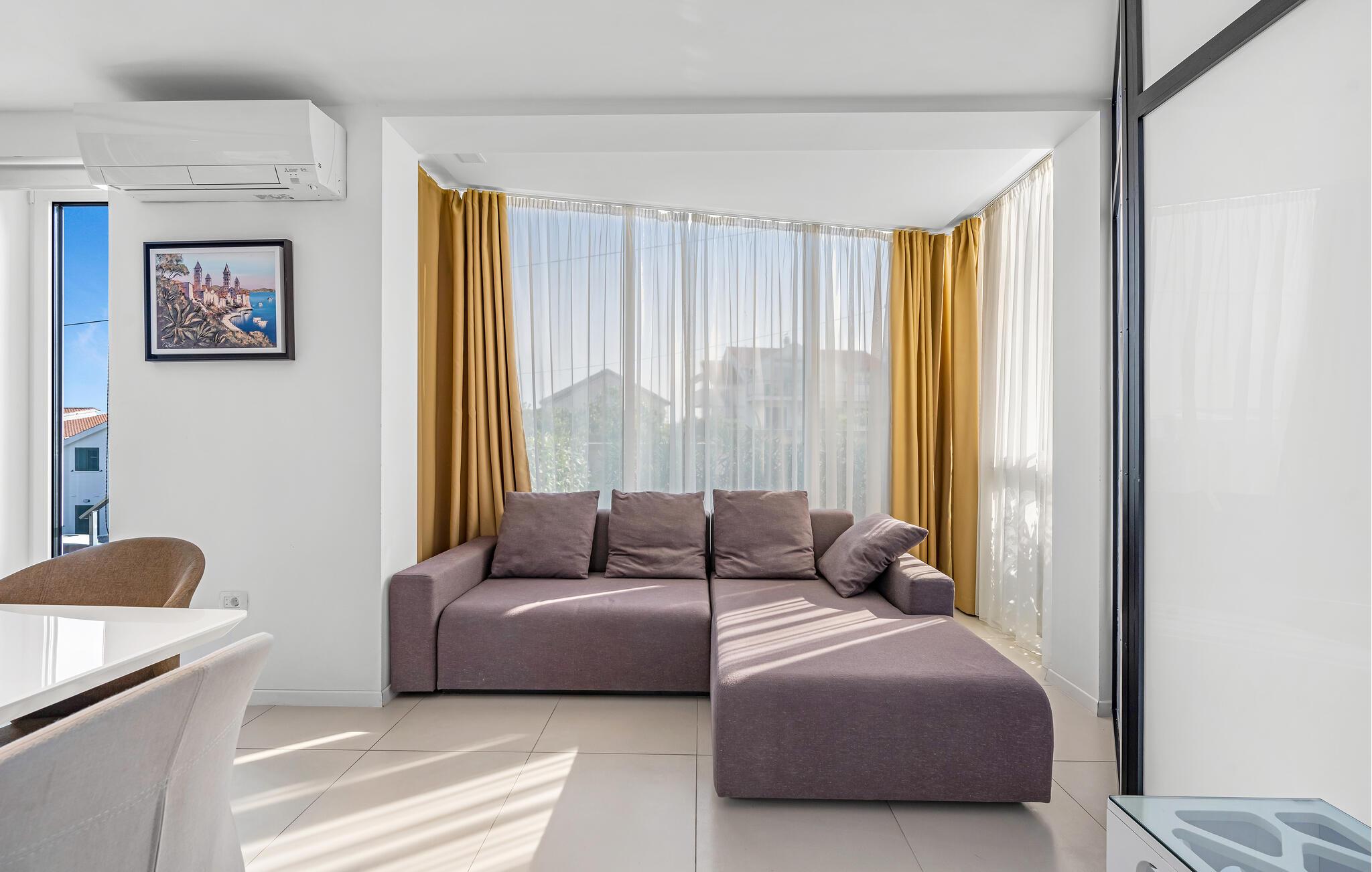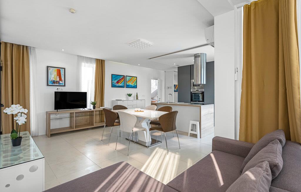Velkommen til denne rummelige og stilfuldt møblerede ferielejlighed, kun en kort gåtur fra havet, der lægger op til afslappende dage med familien. Glæd jer til at lave mad i det åbne designerkøkken og nyde hyggelige måltider i den behagelige atmosfære i den lyse opholdsstue. Om aftenen kan I synke ned i den komfortable sofa, streame en god serie eller hengive jer til en god bog, som I ikke har tid til i jeres dagligdag.