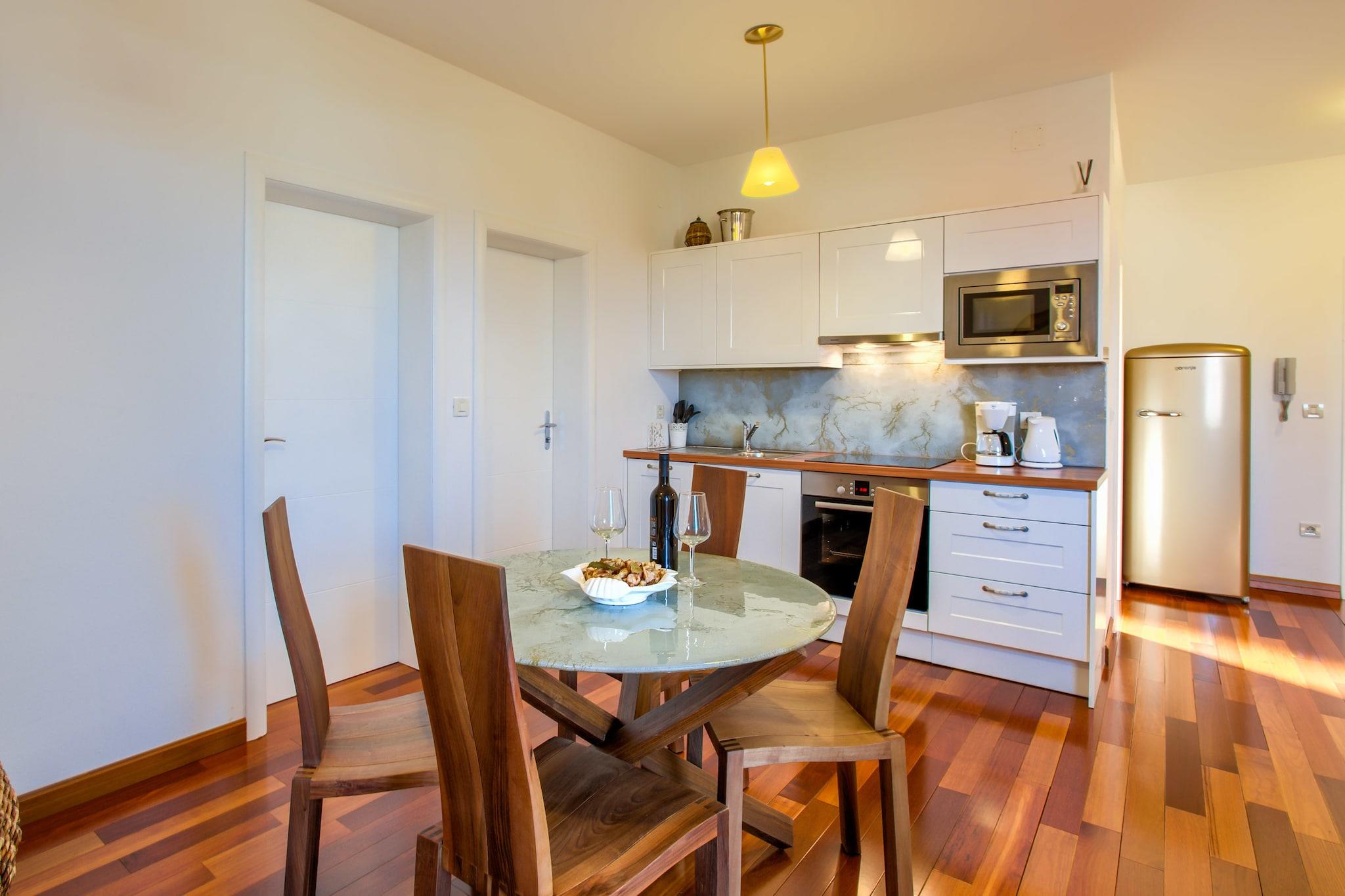 Denne luksuriøse villa med 6 udsøgte lejligheder integreret i en bolig ligger på øen Murter. De fuldt udstyrede lejligheder med køkkener, opholdsstuer, soveværelser, badeværelser og terrasser med fantastisk udsigt tjener dig som midlertidigt hjem. Villaens hovedsted er en stor swimmingpool og udendørs spa-jacuzzi. Komplet område omkring poolen er opdelt i flere diskrete sektioner udstyret med liggestole, lounge sæt, parasol og havemøbler. Der er også rummelig udendørs overdækket kro med grill og sommer køkken. Du kan leje en båd eller cykel fra ejeren. Hver eneste detalje af villaen, indvendig og udvendig er perfekt indrettede og vil give dig stor oplevelse under din ferie.