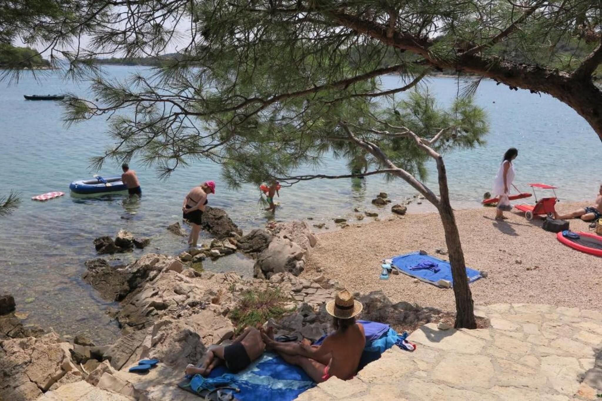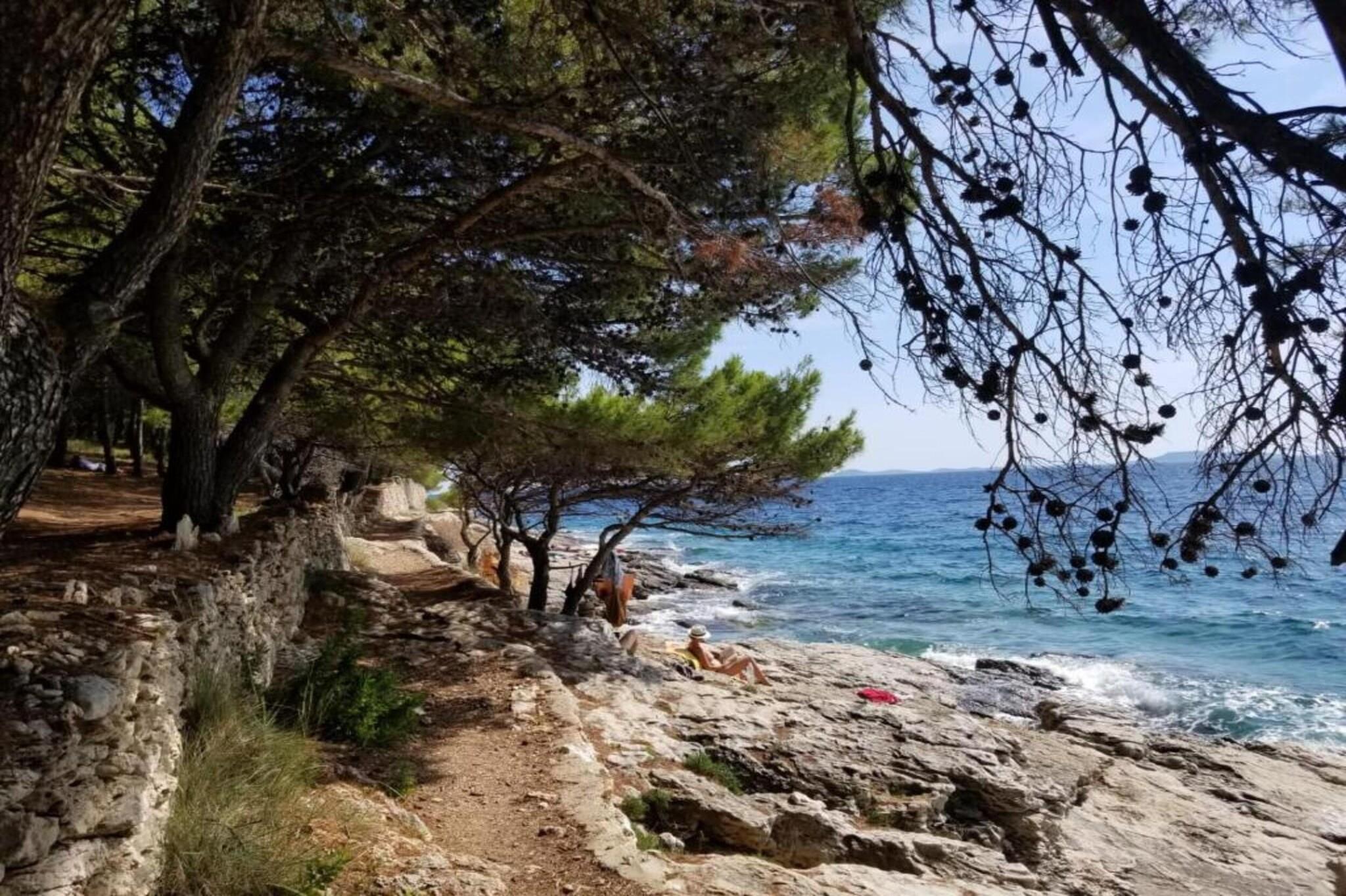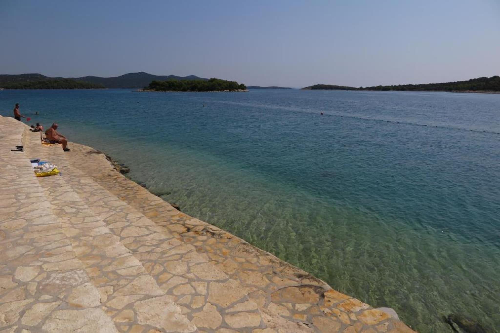 Dette charmerende og veludstyrede feriehus med to soveværelser i Murter er på 56 m² og har komfortabel plads til op til fire gæster, hvilket gør det ideelt for par eller små familier. Indkvarteringen tilbyder en privat terrasse med havemøbler, hvilket skaber det perfekte sted til morgenkaffe eller aftenafslapning. Med faciliteter som aircondition, satellit-tv, Wi-Fi, vaskemaskine og udendørs parkering på stedet er det designet til at give et komfortabelt og problemfrit ophold. Lejligheden er beliggende i et roligt, familievenligt område, kun 300 meter fra den populære Restaurant Kod Ive og 500 meter fra et lokalt Konzum-supermarked. Gæsterne kan nå både sand- og klippekysten ved stranden Slanica med en kort gåtur på 650 meter, hvilket giver nem adgang til sol og hav. For dem, der ønsker at udforske yderligere, ligger Aquapark Biograd 41 km væk, mens de naturskønne vidundere ved Vrana-søen og Nationalparken Krka kan nås inden for en radius af 45 km. Zadar Lufthavn, inklusive dens internationale terminal, ligger 75 km væk. Det åbne køkken med gaskomfur er fuldt udstyret med køleskab, mikrobølgeovn, fryser, kaffemaskine, brødrister, elkedel og alt nødvendigt køkkengrej og bestik, hvilket gør det nemt og bekvemt at lave mad selv. Der er også hårtørrer og strygejern til rådighed for ekstra komfort. Denne lejlighed, der ligger tæt på strande, restauranter og naturattraktioner, er et praktisk og fredeligt tilflugtssted på den dalmatiske kyst.