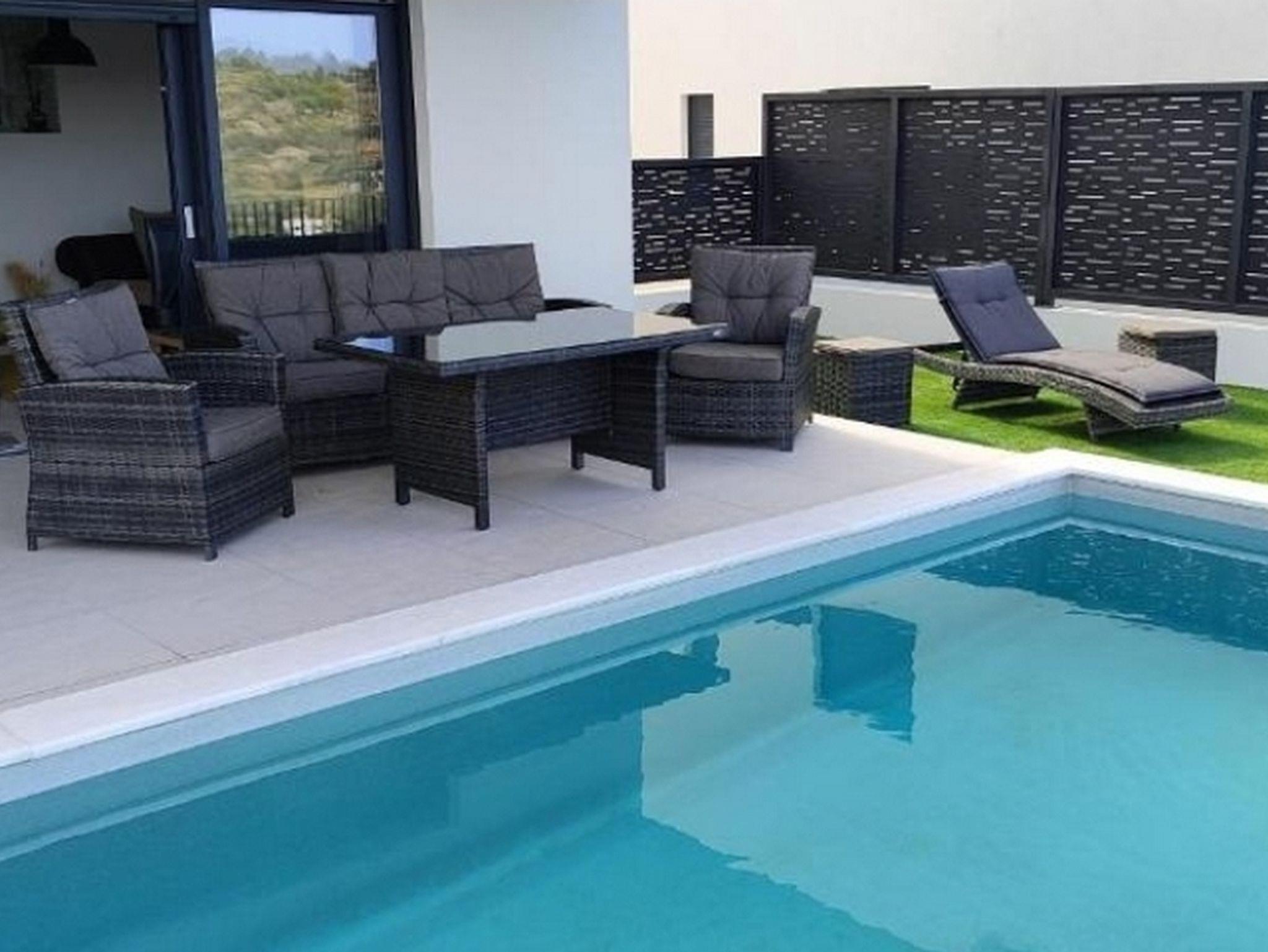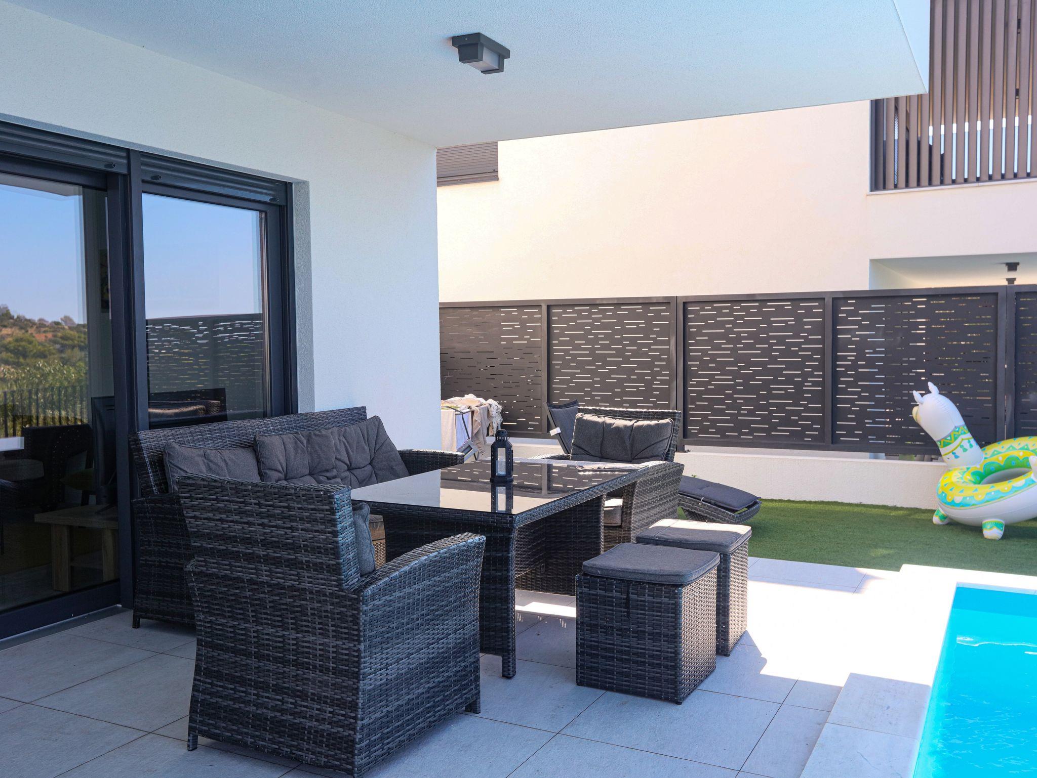 Ferienwohnung bietet Platz für 8 Gäste. Die Betten sind in Schlafzimmern, die es 3 gibt, und in Wohnzimmer, innerhalb einer Gesamtfläche von 81m2, angeordnet. Die Gäste haben eine eigene Terrasse zur Verfügung, auf der sie in warmen Sommernächten genießen können. Während ihres Aufenthalts können sich Gäste im privaten Schwimmbad entspannen. IM PREIS INBEGRIFFEN: Kurtaxe, Endreinigung, Klimatisierung, Pool, Parkplatz, Garage, Internet, Kinderbett, Bügeleisen, Bügelbrett, Föhn. Die Verfügbarkeit zusätzlicher Dienstleistungen in Ihrem reservierten Termin und die Preise derselben (falls nicht aufgeführt) müssen im Voraus überprüft werden. Zusätzliche Dienstleistungen die in der Zahlungsaufforderung nicht aufgeführt sind werden direkt beim Vermieter bezahlt, angenommen der Gast nutzt auch diese.