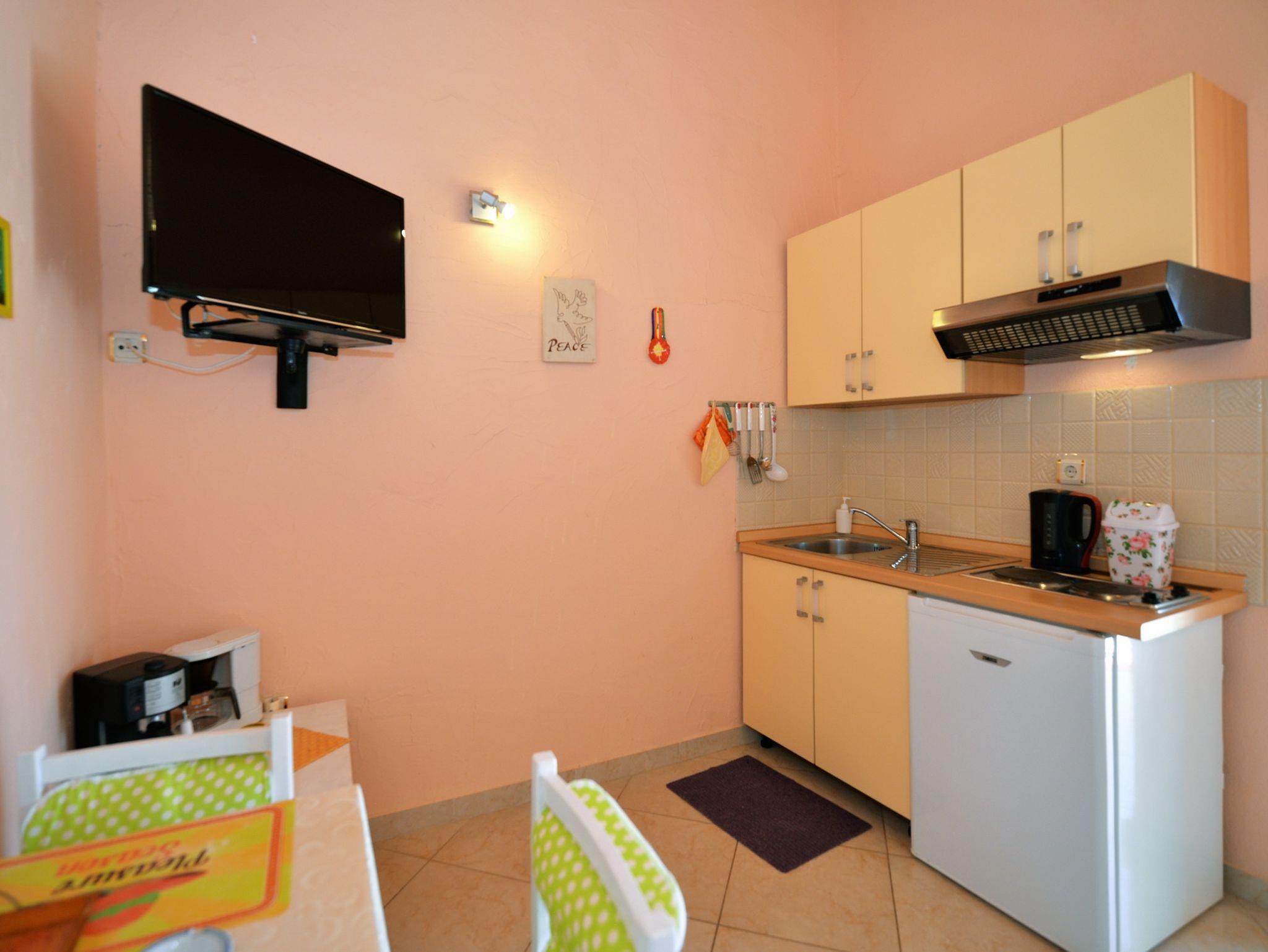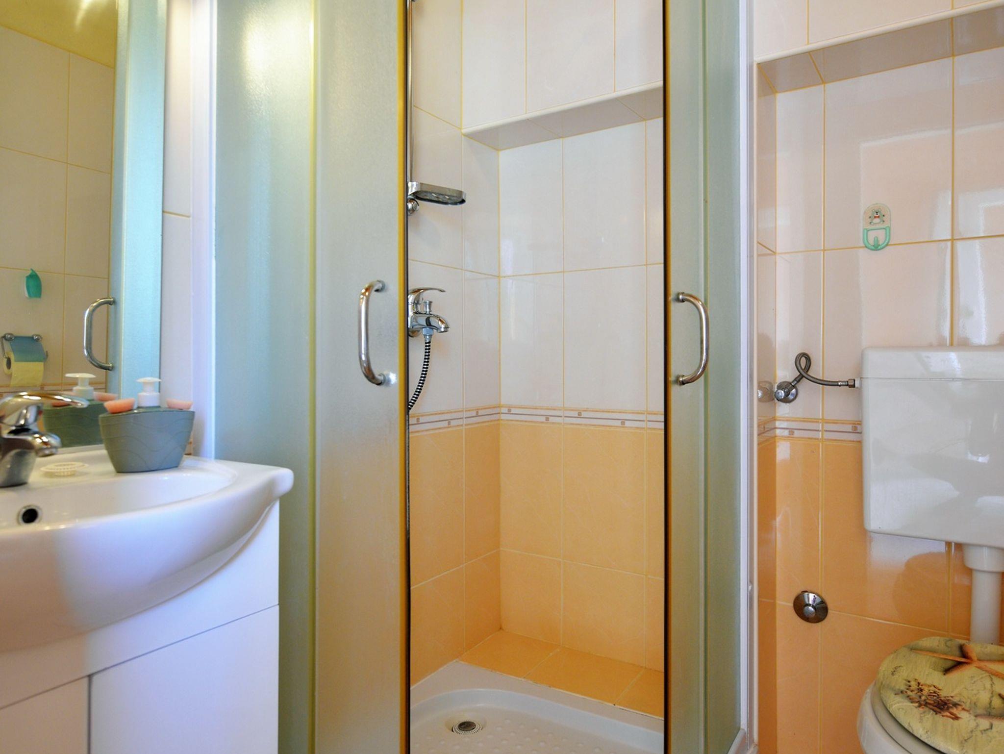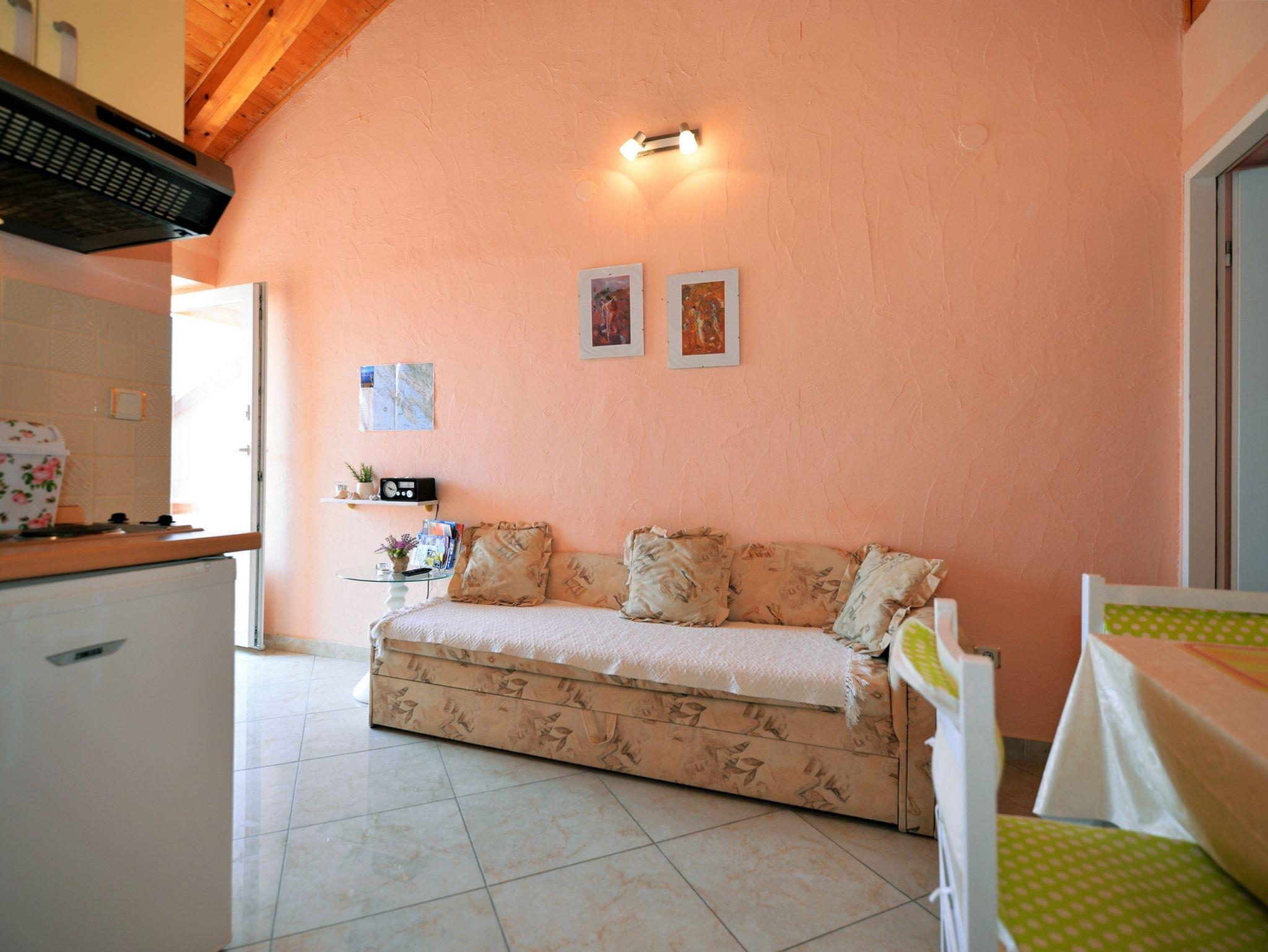 Ferienwohnung bietet Platz für 3 Gäste. Die Betten sind in Schlafzimmern, die es 1 gibt, und in Esszimmer, innerhalb einer Gesamtfläche von 21m2, angeordnet. Die Gäste haben eine eigene Terrasse zur Verfügung, auf der sie in warmen Sommernächten genießen können. Das Apartment bietet Meerblick. Es ist erlaubt, Speisen auf dem Gemeinschafts-Grill vorzubereiten. In der Unterkunftseinheit besteht die Möglichkeit des Mitbringens von Haustieren gegen Aufpreis. IM PREIS INBEGRIFFEN: Kurtaxe, Endreinigung, Parkplatz, Internet, Bügeleisen, Bügelbrett, Föhn, tragbarer Grill. VERBINDLICHE ZUSÄTZLICHE KOSTEN: Aufzahlung für Kurzaufenthalte (prozentualer Zuschlag pro Nächtigungsanzahl: 30% - 1, 20% - 2, 10% - 3). UNVERBINDLICHE ZUSÄTZLICHE KOSTEN: Klimatisierung (10,00 € pro Nacht), Wäschewaschen (8,00 € Waschen), Haustiere (20,00 € pro Nacht). Die Verfügbarkeit zusätzlicher Dienstleistungen in Ihrem reservierten Termin und die Preise derselben (falls nicht aufgeführt) müssen im Voraus überprüft werden. Zusätzliche Dienstleistungen die in der Zahlungsaufforderung nicht aufgeführt sind werden direkt beim Vermieter bezahlt, angenommen der Gast nutzt auch diese.