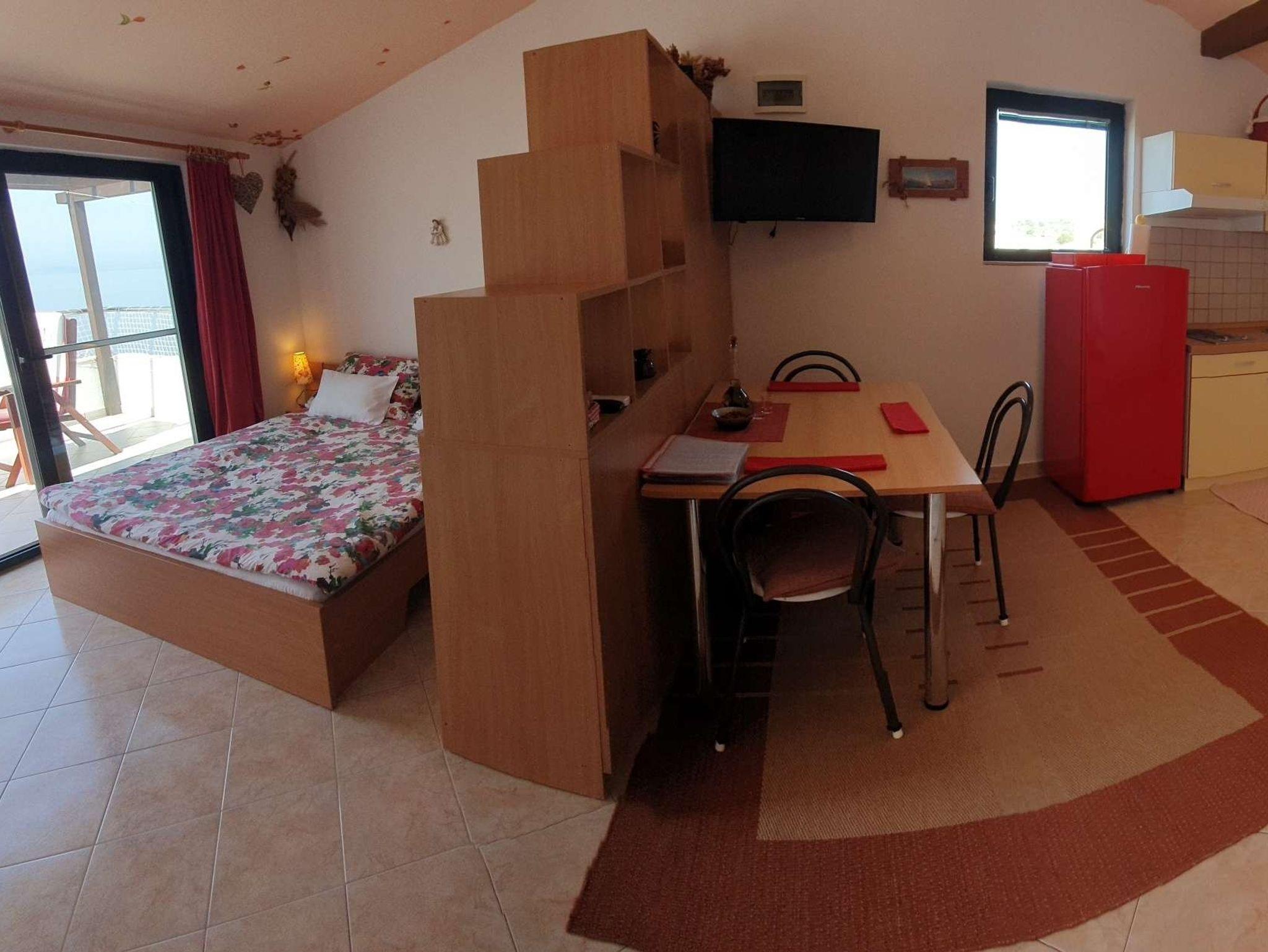 Studio bietet Platz für 3 Gäste. Die Betten sind in Schlafzimmern, die es 1 gibt, und in Wohnzimmer, innerhalb einer Gesamtfläche von 40m2, angeordnet. Die Gäste haben eine eigene Terrasse zur Verfügung, auf der sie in warmen Sommernächten genießen können. Das Studio-Apartment bietet Meerblick. Es ist erlaubt, Speisen auf dem Gemeinschafts-Grill vorzubereiten. IM PREIS INBEGRIFFEN: Kurtaxe, Endreinigung, Klimatisierung, Parkplatz, Internet, Kinderbett, Bügeleisen, Bügelbrett, Föhn, Sonnenschirm. VERBINDLICHE ZUSÄTZLICHE KOSTEN: Aufzahlung für Kurzaufenthalte (prozentualer Zuschlag pro Nächtigungsanzahl: 30% - 1, 20% - 2, 10% - 3). Die Verfügbarkeit zusätzlicher Dienstleistungen in Ihrem reservierten Termin und die Preise derselben (falls nicht aufgeführt) müssen im Voraus überprüft werden. Zusätzliche Dienstleistungen die in der Zahlungsaufforderung nicht aufgeführt sind werden direkt beim Vermieter bezahlt, angenommen der Gast nutzt auch diese.