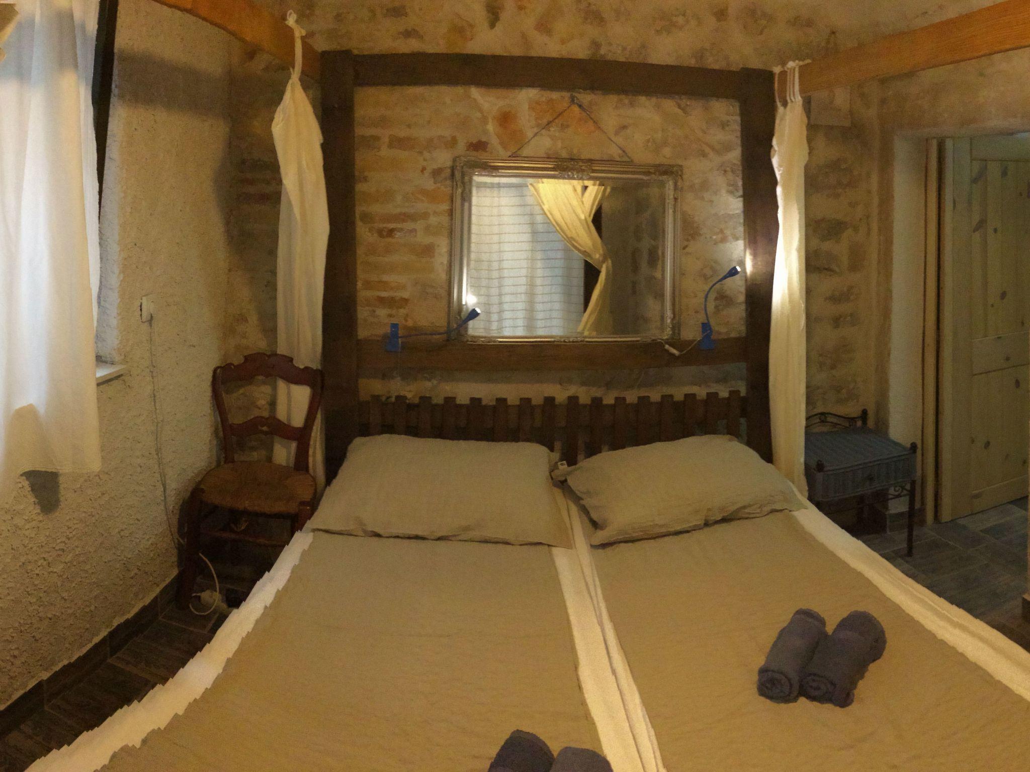 The interior of the flat welcomes you with a tastefully furnished living room that not only has a kitchenette with all the basic cooking utensils - from crockery to a fridge with freezer compartment to a cooker and basic cooking spices - but also offers two sofas that can be converted into comfortable sofa beds. Next to this multifunctional space you will find a separate bedroom, crowned by a double bed made of historic oak beams and equipped with anatomical mattresses, promising a restful night's sleep. The bathroom is modernly equipped with a shower, WC and fresh towels for your comfort.