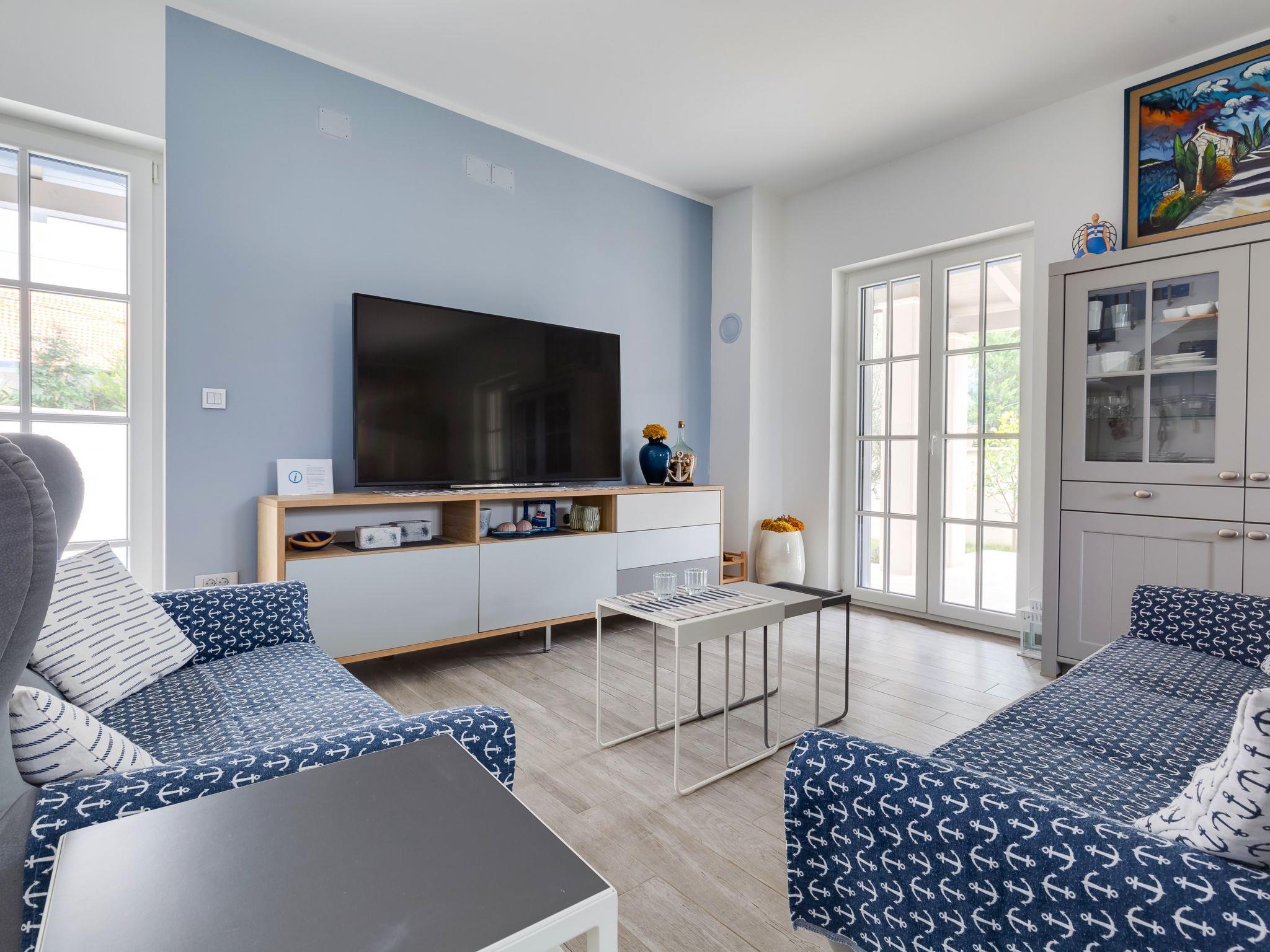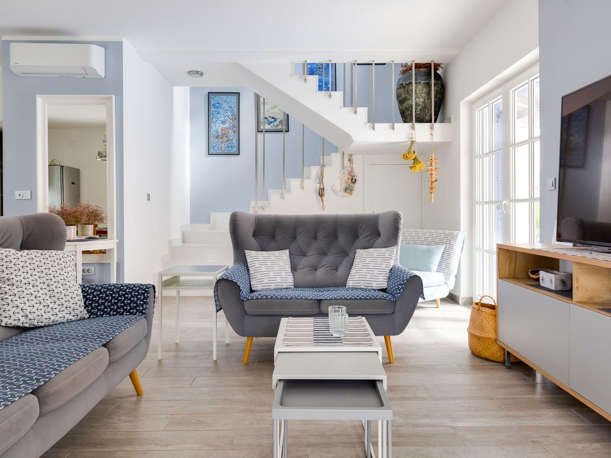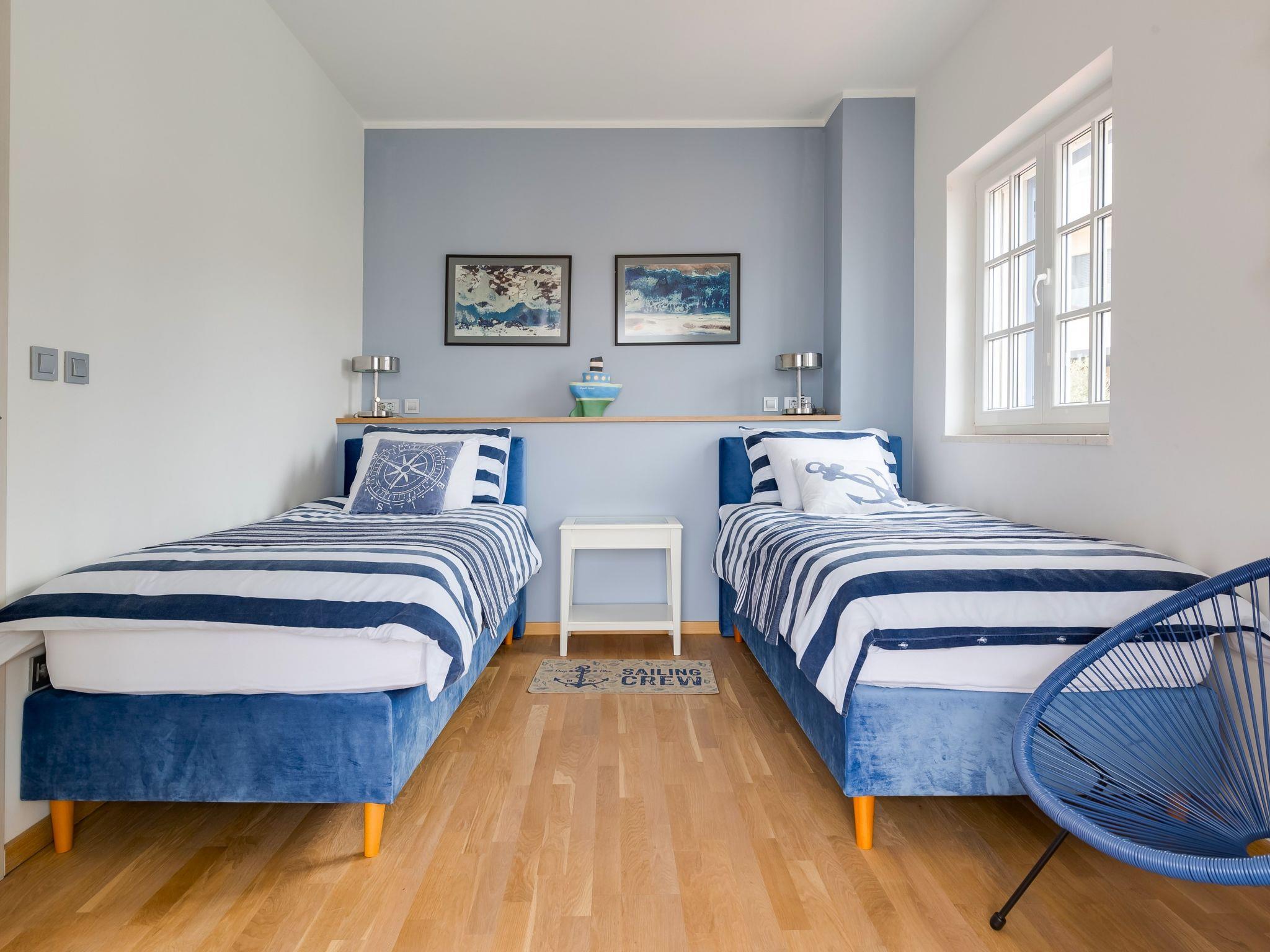 3-room semi-detached house 120 m2 on 2 levels. Living/dining room 30 m2 with 2 beds (100 cm, length 200 cm), TV (flat screen), air conditioning. Exit to the terrace. Open kitchen (oven, dishwasher, 4 ceramic glass hob hotplates, toaster, freezer, electric coffee machine). Exit to the terrace. Shower/WC. Upper floor: 1 room with 1 french bed (200 cm, length 220 cm), TV (flat screen), air conditioning. Exit to the balcony. 1 room with 2 beds (100 cm, length 200 cm), air conditioning. Exit to the balcony. Bath/WC. No heating option. 2 balconies 6 m2. Terrace furniture, balcony furniture, deck chairs. Facilities: safe, iron, hair dryer. Internet (WiFi, free). Please note: non-smoking house. 1 small pet/ dog allowed.