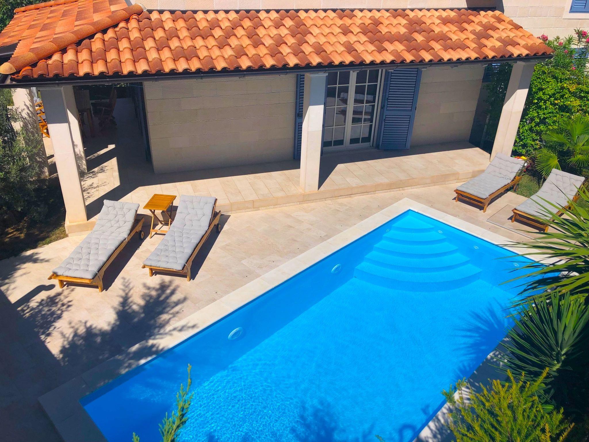 Beautiful semi-detached house "Mala", 2 storeys. 1 km from the centre of Murter, in a sunny position, 900 m from the sea, 900 m from the beach. Private: property 330 m2, swimming pool angular (21 m2, depth 150 cm, seasonal availability: 01.Jun. - 30.Sep.) with internal staircase. Outdoor shower, terrace (22 m2), garden furniture, barbecue. In the house: internet access, washing machine. Parking (for 2 cars) at the house on the premises. Shop 450 m, restaurant 900 m, bus stop 1 km, sandy beach, rocky beach 900 m. Marina 1.4 km.