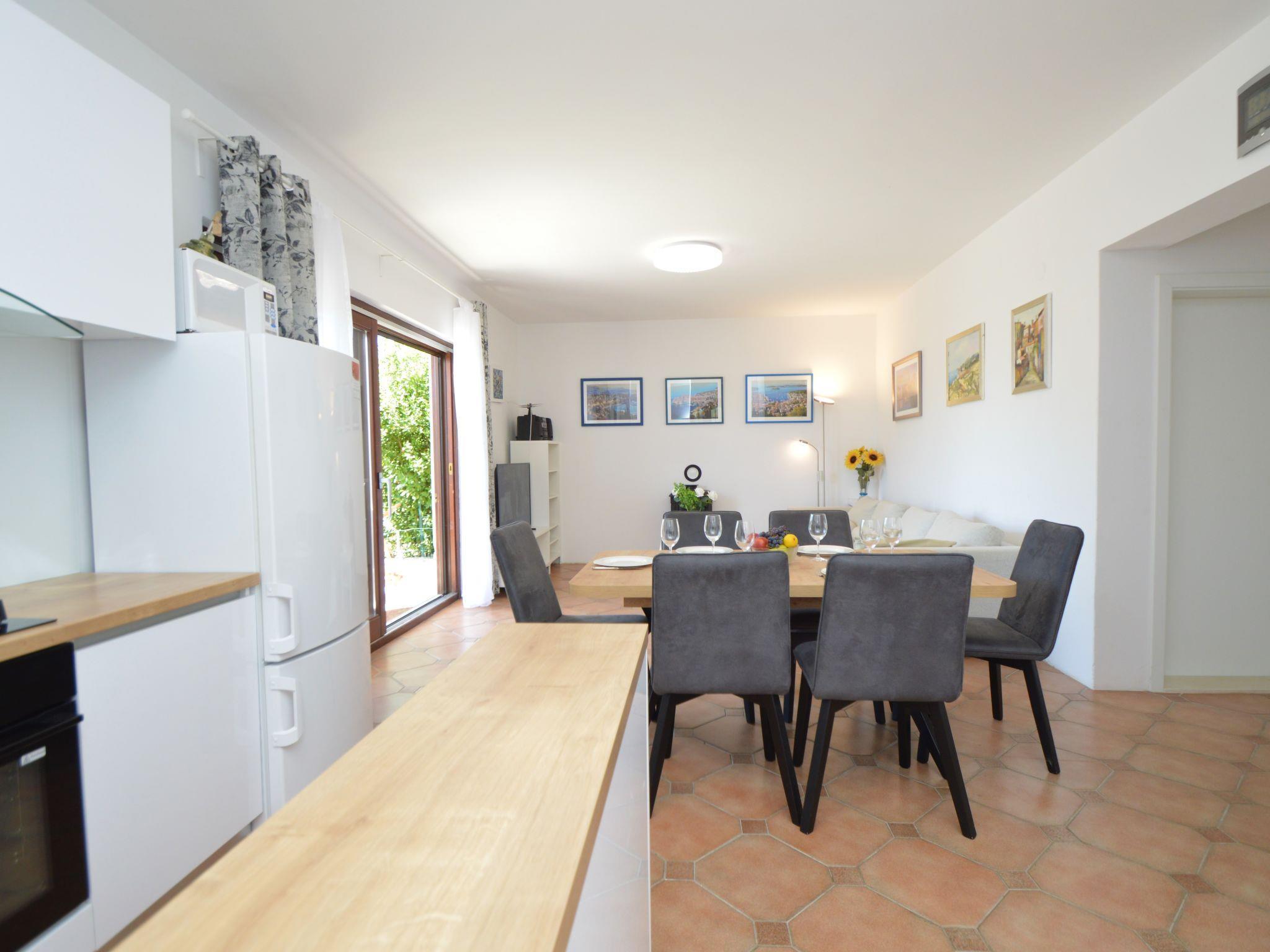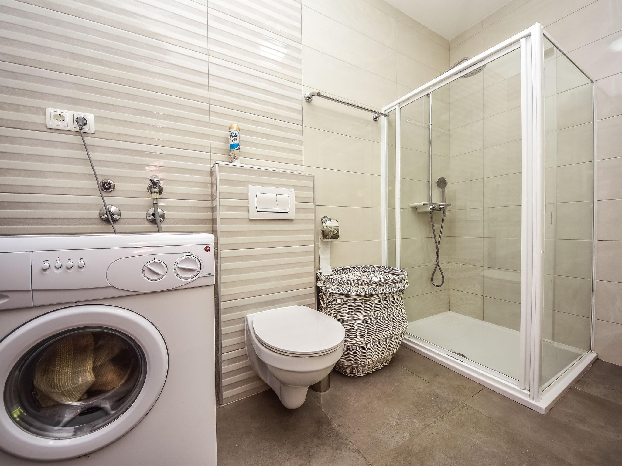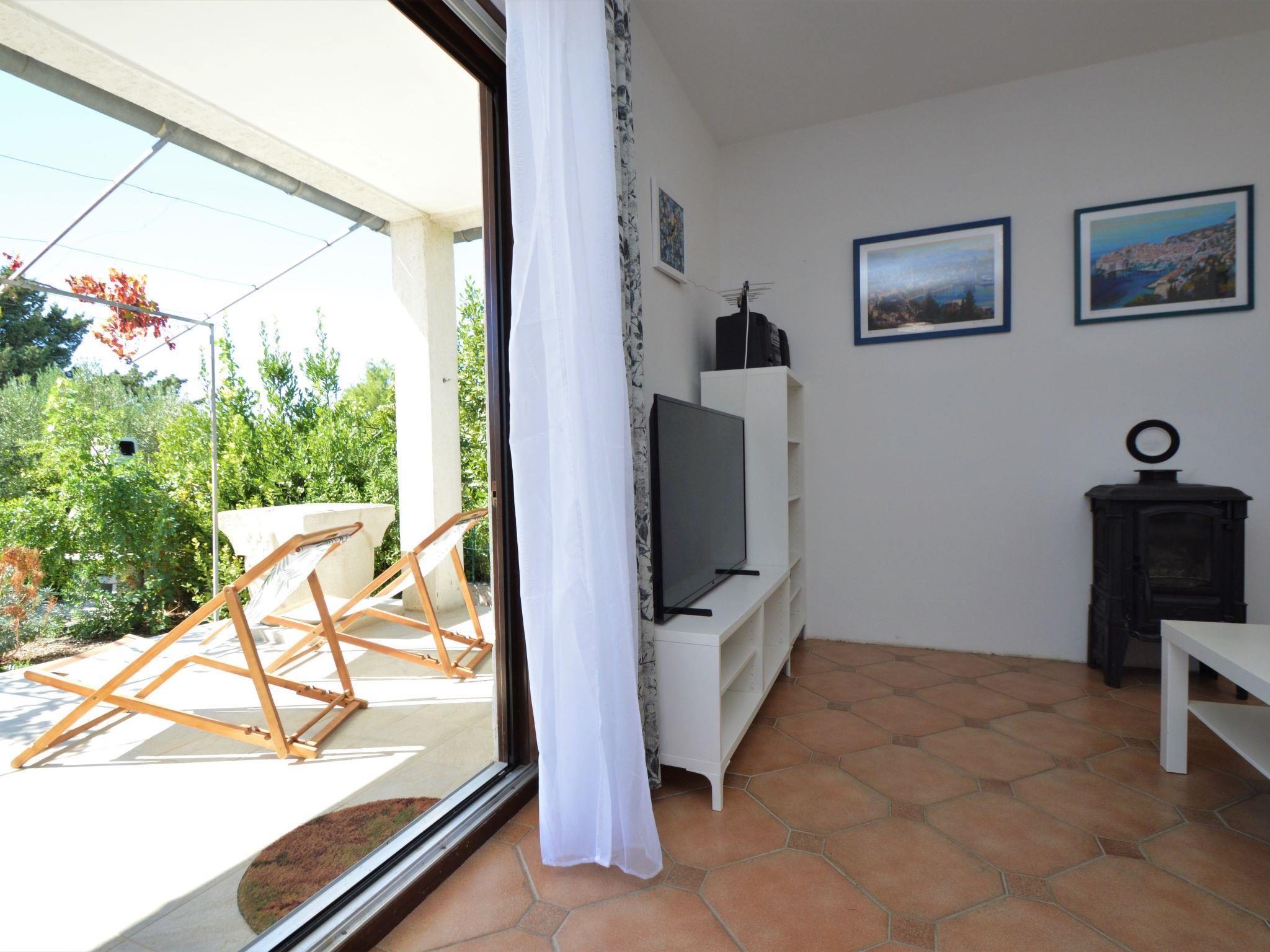 4-room house 90 m2, south facing position. Living/dining room 36 m2 with 1 sofabed (80 cm, length 200 cm), satellite TV (flat screen), air conditioning. Exit to the terrace. 1 room with 1 french bed (160 cm, length 200 cm). 1 room with 3 beds (90 cm, length 200 cm). 1 room with 1 french bed (160 cm, length 200 cm), shower/WC. Exit to the terrace. Open kitchen (4 hot plates, oven, dishwasher, kettle, microwave, freezer, electric coffee machine). Shower/WC, sep. WC. No heating option. Terrace 22 m2, roofed, terrace 8 m2. Terrace furniture, barbecue (portable), deck chairs. View of the sea. Facilities: Internet (WiFi, free). Maximum 1 pet/ dog allowed.