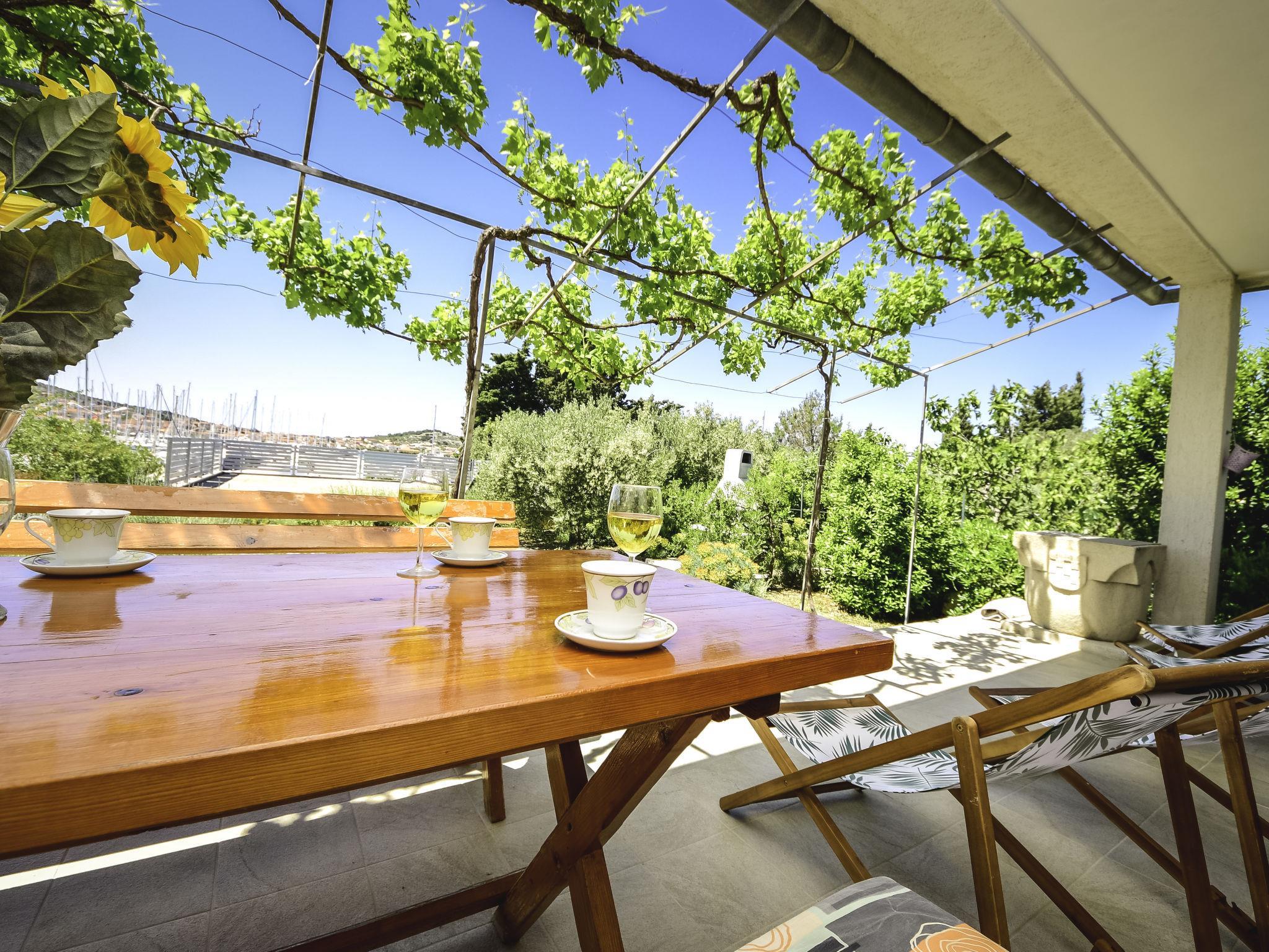 Single-family house "Mihotic". 900 m from the centre of Murter, in a sunny position, 200 m from the sea, 200 m from the beach. Private: property 650 m2 with wildlife garden. Outdoor shower. In the house: internet access, washing machine. Parking (for 2 cars) on the premises. Shop 300 m, restaurant 80 m, bus stop 13.8 km, rocky beach 200 m. Marina 50 m.