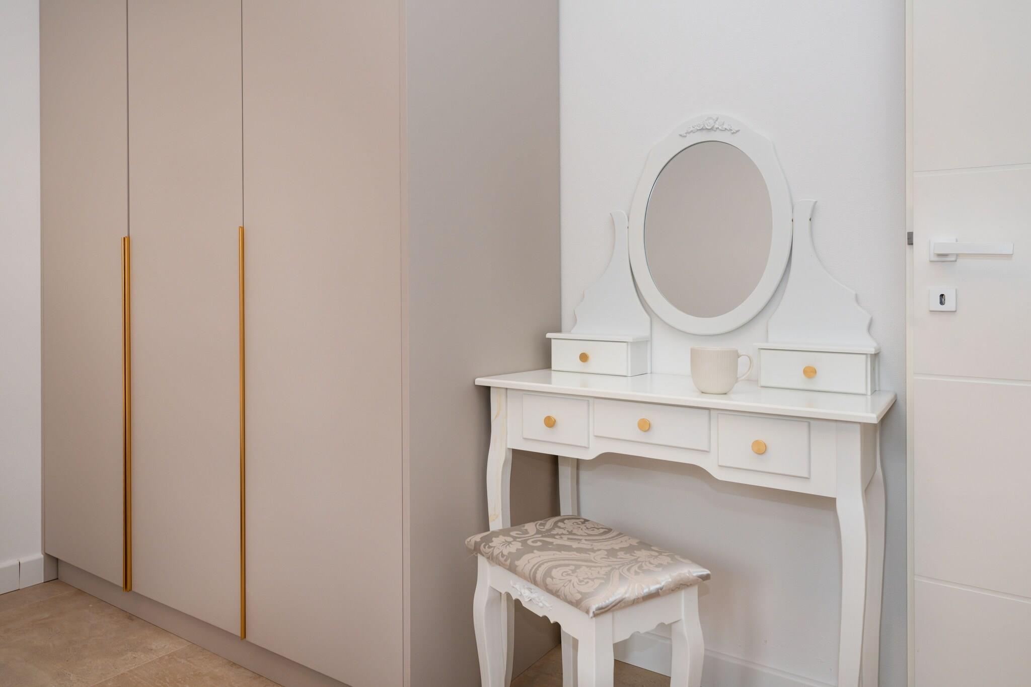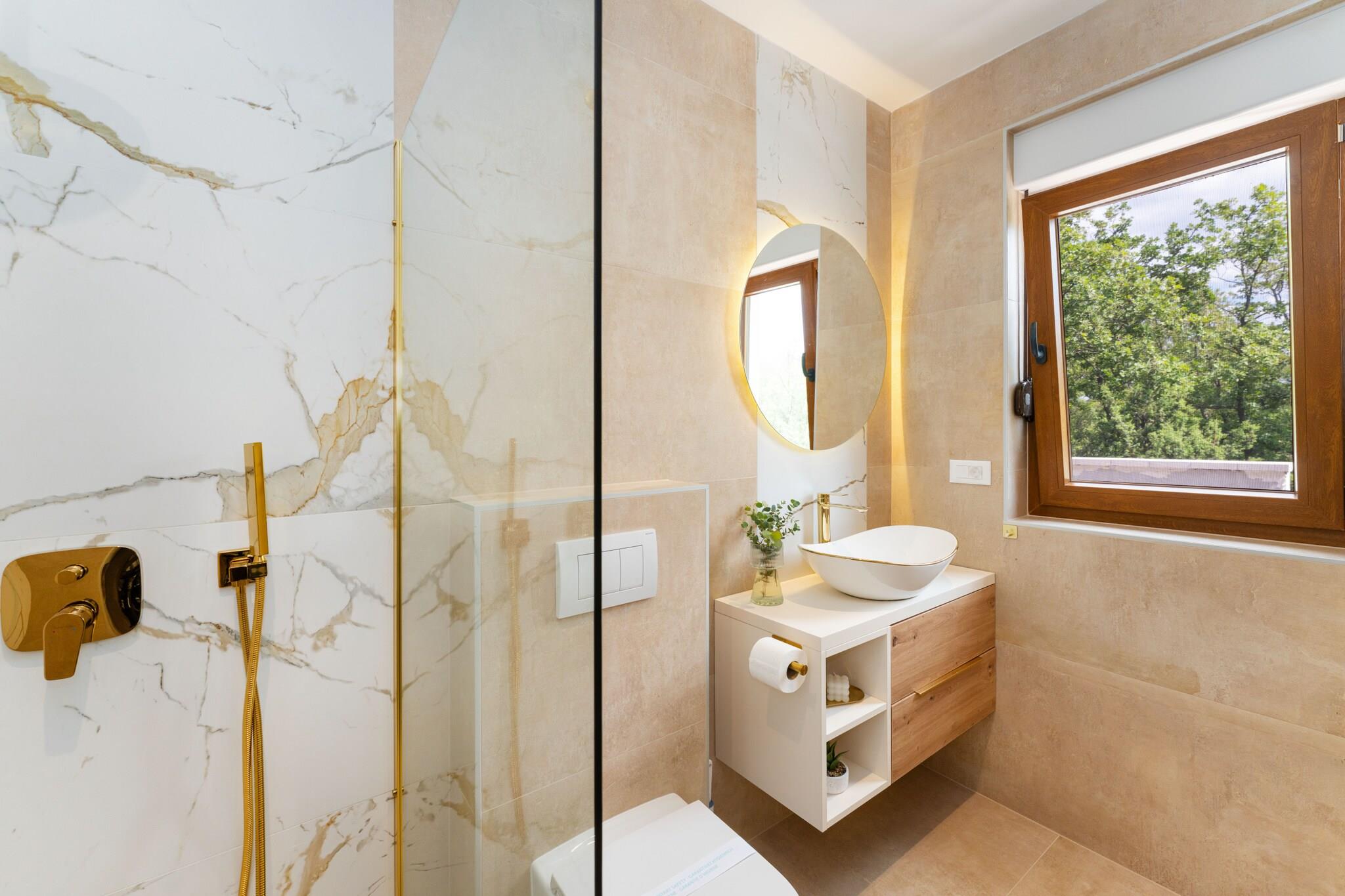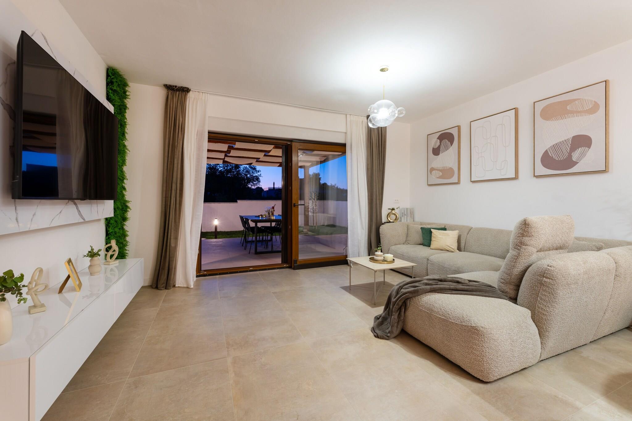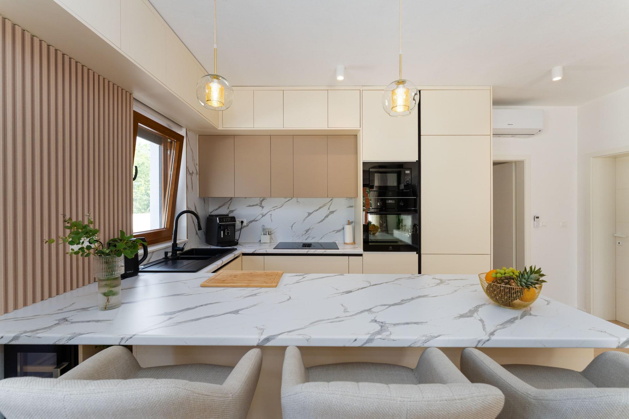 Dette moderne fristed ligger gemt væk i et fredeligt boligkvarter lige uden for Zadar og kombinerer elegant design med en varm og indbydende atmosfære. Villaen har tre elegante soveværelser, hver med eget badeværelse og tv, hvilket skaber perfekte rammer for op til seks gæster. Den rummelige åbne stue går ubesværet over i et fuldt udstyret køkken og en lys spiseplads, mens store glasdøre åbner ud til en solrig terrasse. Udenfor inviterer en privat 8 × 4 m pool dig til at slappe af under Middelhavets himmel, omgivet af komfortable liggestole, parasoller og en udendørs spiseplads, der er ideel til lange, afslappede måltider med dine kære. Hver eneste detalje her er nøje gennemtænkt med henblik på komfort og bekvemmelighed. Interiøret balancerer moderne stil med hjemlige detaljer, og villaen er udstyret med alt det nødvendige – fra højhastigheds-WiFi og satellit-tv til vaskemaskine, tørretumbler og myggenet foran vinduerne, så du kan nyde ubekymrede sommeraftener. Et fuldt udstyret køkken gør madlavningen til en fornøjelse, uanset om du brygger morgenkaffe eller tilbereder et lokalt fisk- og skaldyrsfestmåltid. Der er endda en grill og en hyggelig udendørs pejs, så du kan nyde uforglemmelige aftener under stjernerne. På trods af den rolige beliggenhed er alt, hvad du har brug for, lige ved hånden. Lokale caféer, butikker og restauranter ligger kun en kort køretur væk, mens de glitrende strande og den historiske gamle bydel i Zadar kan nås på få minutter. Denne villa tilbyder det bedste fra begge verdener – fredelig afsondrethed til afslapning ved poolen og nem adgang til kysten for dage fyldt med sol, hav og Dalmatien charme.
