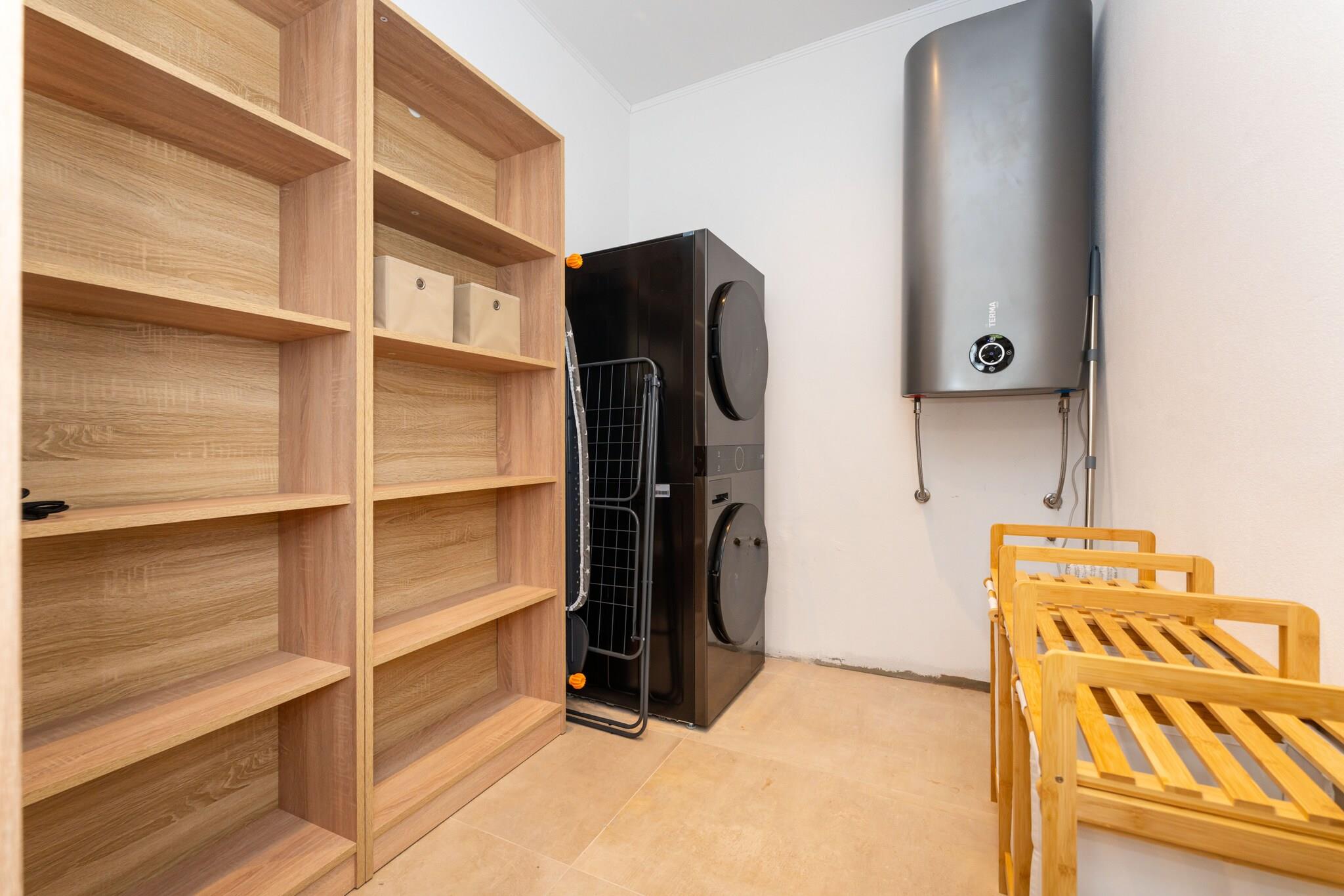 Åbent køkken(kogeplade(induktion), elkedel, brødrister, kaffemaskine, ovn, mikrobølgeovn, opvaskemaskine , køle-fryseskab, (), ()), stue / spisestue(Fjernsyn(parabol, Smart-TV), spisebord, sofahjørne, radio, håndvask, klimaanlæg), Soveværelse med badeværelse(king size-seng, Fjernsyn(parabol, Smart-TV), bruser, håndvask, toilet, klimaanlæg), Soveværelse med badeværelse(king size-seng, Fjernsyn(parabol, Smart-TV), bruser, håndvask, toilet, klimaanlæg), Soveværelse med badeværelse(enkeltseng, enkeltseng, Fjernsyn(parabol, Smart-TV), badekar, håndvask, toilet, klimaanlæg), Internetadgang, Førstehjælp, Bar, Have, Havemøbler, pejs, grill, tørretumbler, tremmeseng, bruser med lysterapi, vaskemaskine, balkon, patio, klimaanlæg, terrasse(16 m2), have(indhegnet), solstole, grill, parkering, swimmingpool(privat, udendørs), strygebræt, strygejern, føntørrer, havepejs, tørreskab, , , Cleaning products, Wine glasses