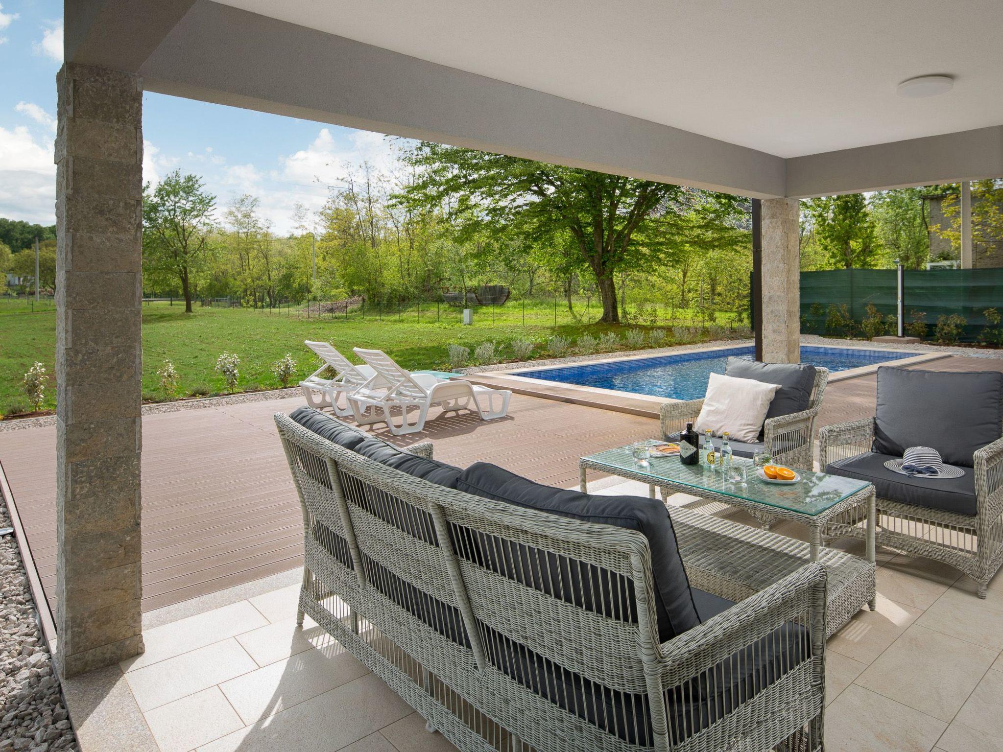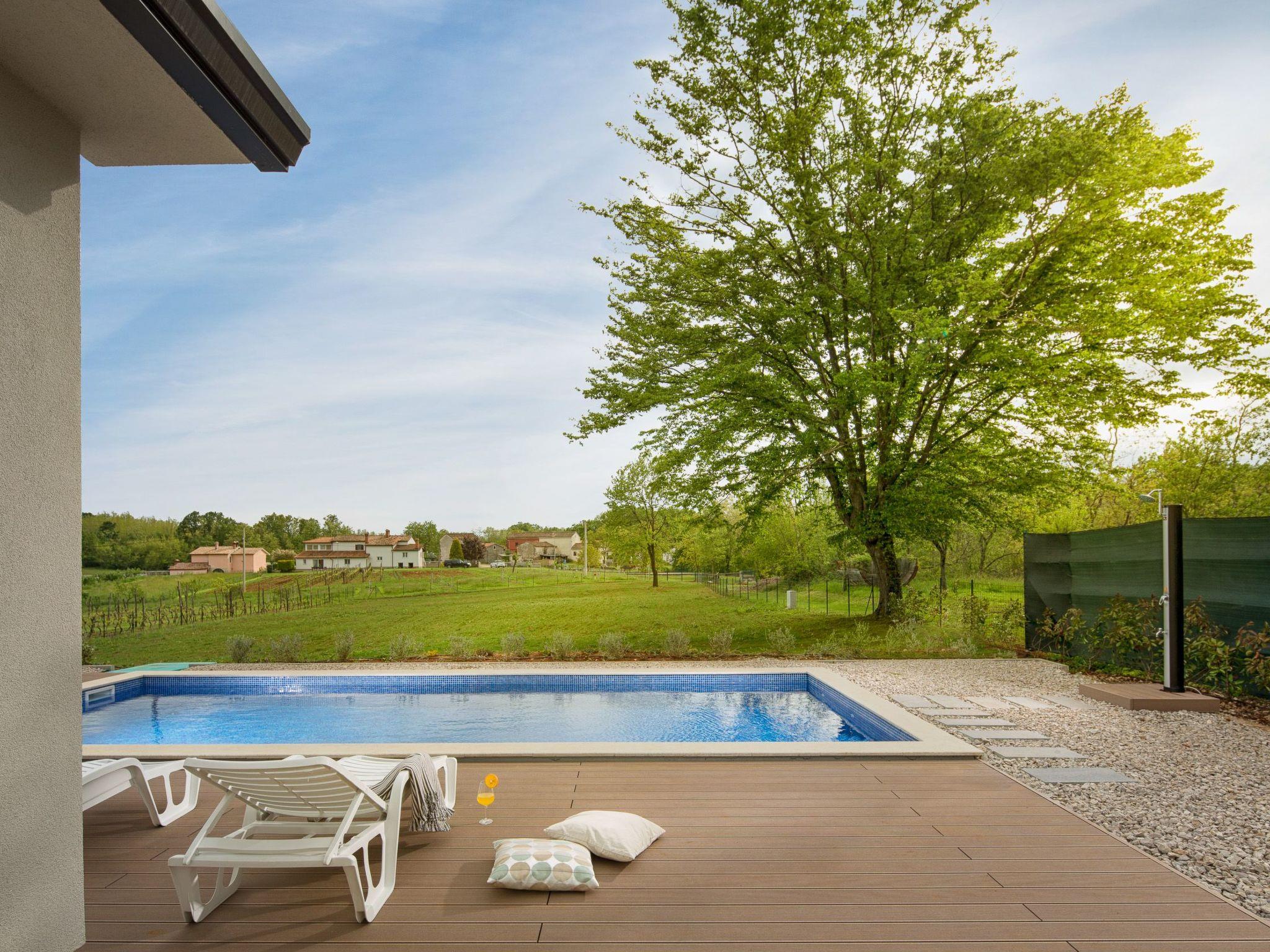 Fully detached, newly-built (2019) holiday villa with a private garden, heated pool and view across a nearby vineyard The elegant holiday villa is located in Županici, a small charming village in Istria. The popular Girandella beach in Rabac and historic town center of Labin are within 12 km and 8 km of the villa.