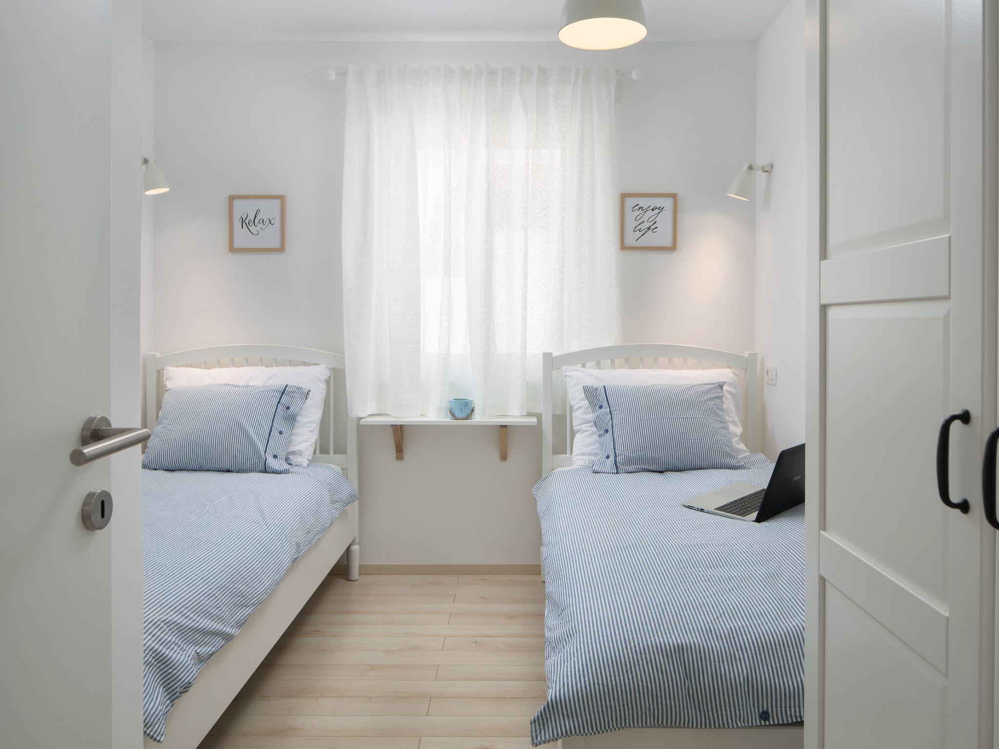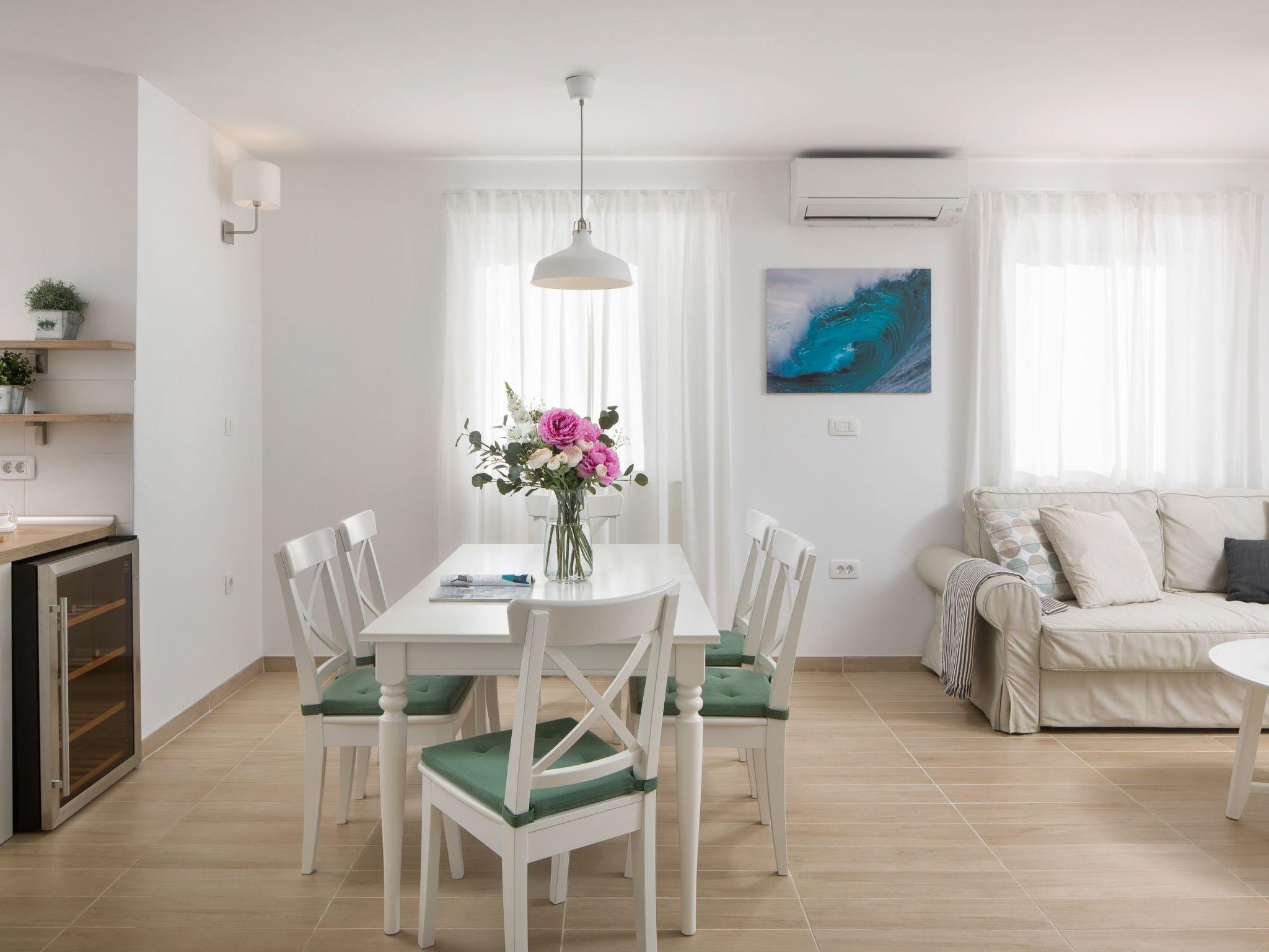 The single-storey villa features a flat-screen TV and air-conditioning in the living room. There are three bedrooms: two with a double bed and one with two single beds. A seventh and eigth person can sleep on the double sofa bed in the living area. The kitchen is fully equipped with dishwasher, microwave, coffee machine and toaster among others. Free WiFi and parking for guests is provided.