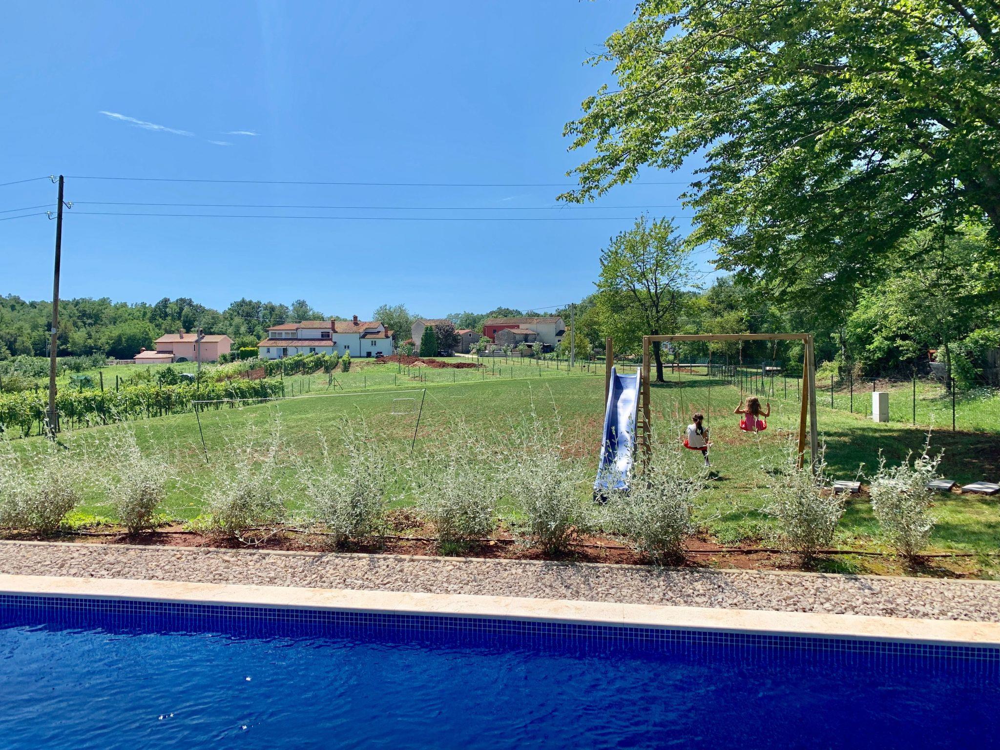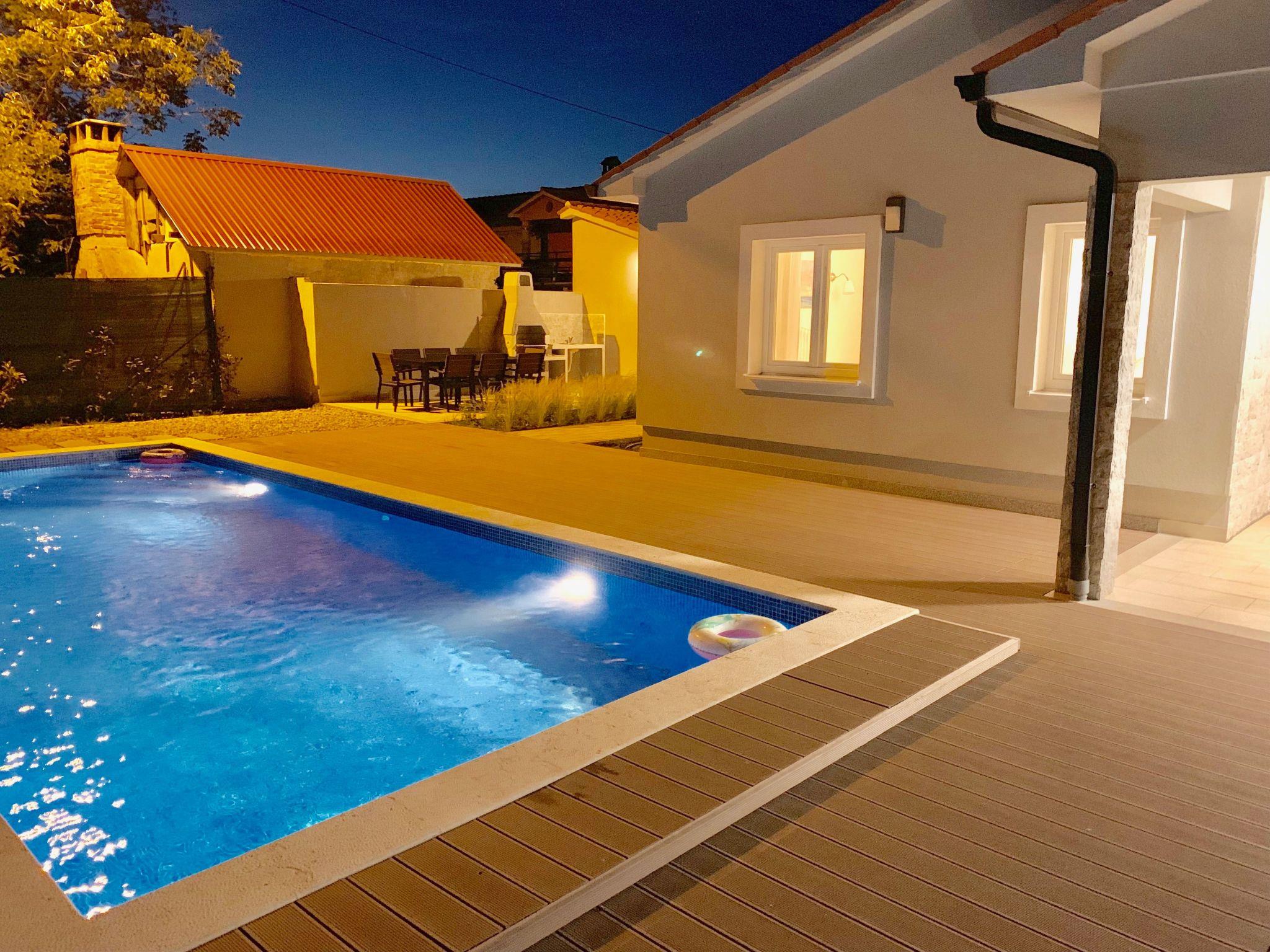 The newly-built villa set on 2.400 m2 of land and features a heated pool surrounded by sun loungers and two patios for enjoyment in sun throughout the day. Patios overlook the private pool and offer chance to barbecue. Property features kids playground, badminton court and mini football field. Guests are welcome to use bicycles that are on the premises and explore the surrounding roads and villages.