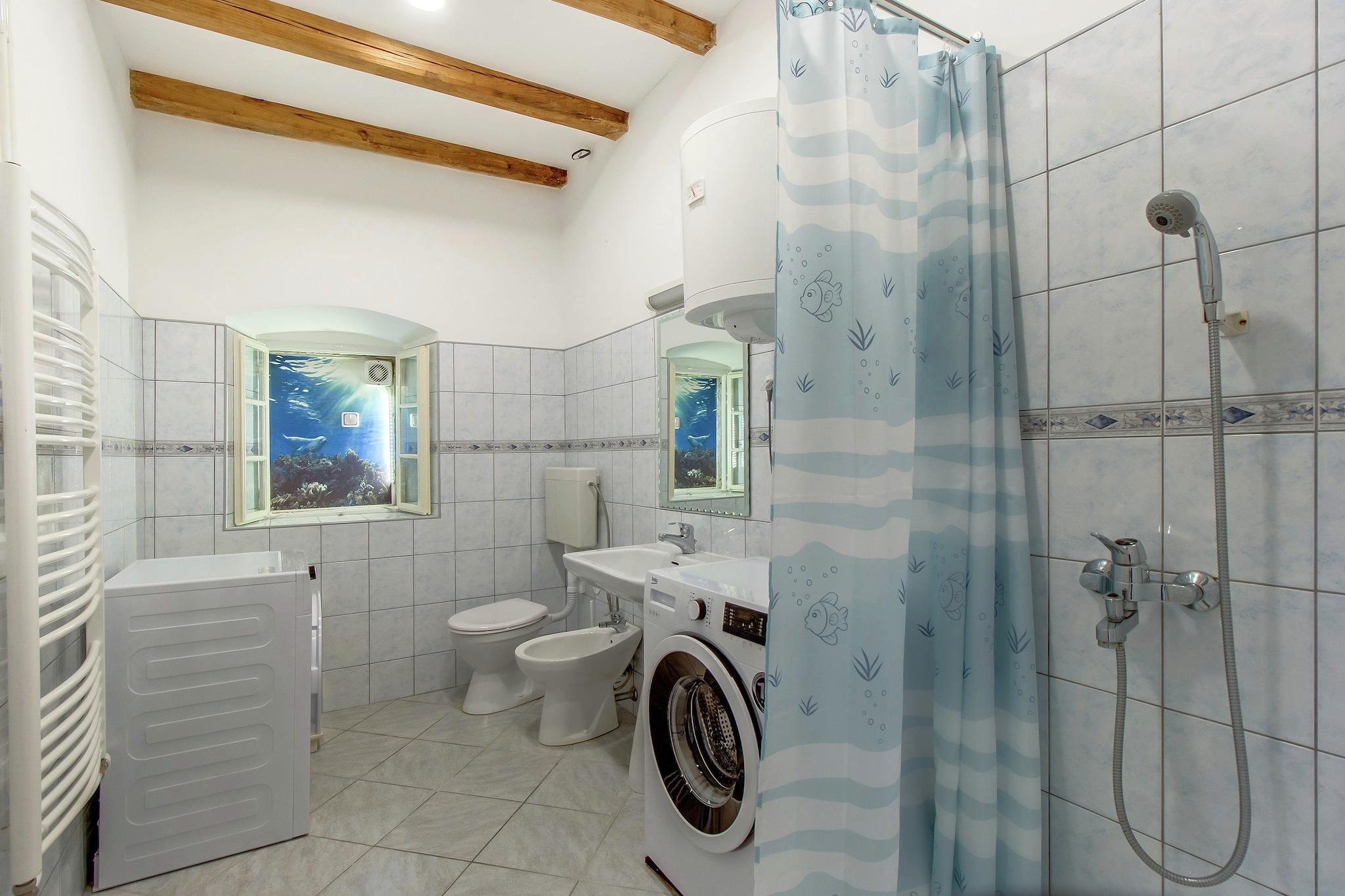 Unikt feriehus omgivet af have, kun 15 meter væk fra havet. Hjem har alt for en afslappende ferie, udendørs køkken, grill, havemøbler. Indkvartering er beliggende i landsbyen Osor -Nerezine på øen vitalitet.Lošinj har en sundhedsturisme tradition på over 125 år. Takket være det milde middelhavsklima, pinjetræer og luft er dette et ideelt sted at genskabe din krop og ånd. Selvom den er lille med en befolkning på kun 70 indbyggere, er hele landsbyen Osor et open-air museum, hvor kunstnere fra alle epoker forlod deres arv. Fra den moderne Meštrovic til ruinerne af de gamle mure, fort, den første tidlige kristne basilika; en museumsby, hvis grønne haver og parker dækker spor af forhistoriske gamle villaer, renæssancesportaler og klostre. En landsby Osor, som samtidig er historie og museum, bliver en unik udendørs scene med rige kulturelle arrangementer i sommermånederne, det vigtigste er Osor Musical Evening