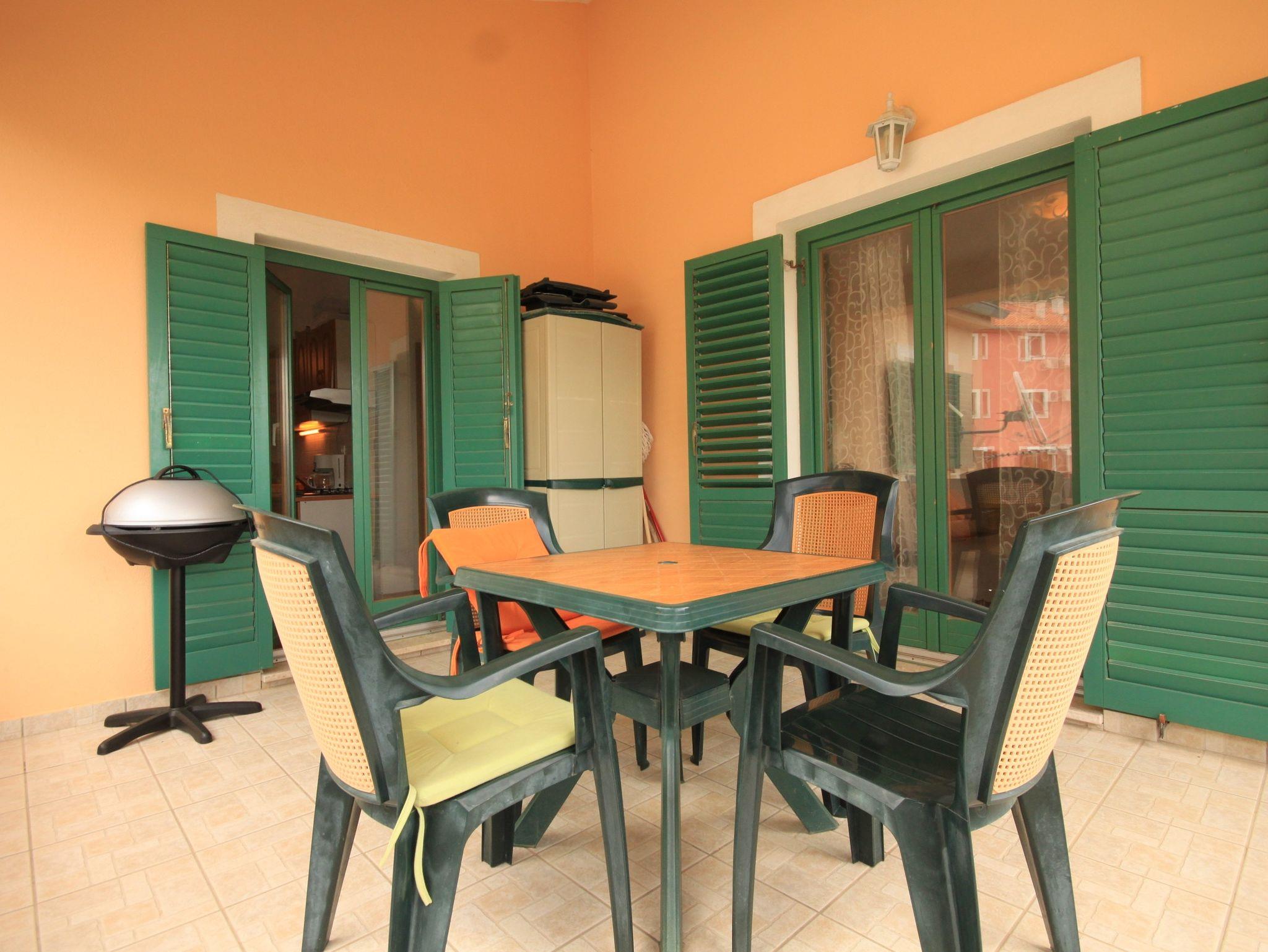 Ferienwohnung bietet Platz für 4 Gäste. Die Betten sind in Schlafzimmern, die es 1 gibt, und in Esszimmer, innerhalb einer Gesamtfläche von 43m2, angeordnet. Die Gäste haben eine eigene Terrasse zur Verfügung, auf der sie in warmen Sommernächten genießen können. Das Apartment bietet Meerblick. Es ist erlaubt, Speisen auf dem Gemeinschafts-Grill vorzubereiten. In der Unterkunftseinheit besteht die Möglichkeit des Mitbringens von Haustieren gegen Aufpreis. IM PREIS INBEGRIFFEN: Kurtaxe, Endreinigung, Klimatisierung, Parkplatz, Internet, Kinderbett, Zusatzbett, Bügeleisen, Bügelbrett, Föhn, tragbarer Grill, Sonnenschirm, Liegestühle. VERBINDLICHE ZUSÄTZLICHE KOSTEN: Aufzahlung für Kurzaufenthalte (prozentualer Zuschlag pro Nächtigungsanzahl: 30% - 1, 20% - 2, 10% - 3). UNVERBINDLICHE ZUSÄTZLICHE KOSTEN: Haustiere (5,00 € pro Nacht). Die Verfügbarkeit zusätzlicher Dienstleistungen in Ihrem reservierten Termin und die Preise derselben (falls nicht aufgeführt) müssen im Voraus überprüft werden. Zusätzliche Dienstleistungen die in der Zahlungsaufforderung nicht aufgeführt sind werden direkt beim Vermieter bezahlt, angenommen der Gast nutzt auch diese.