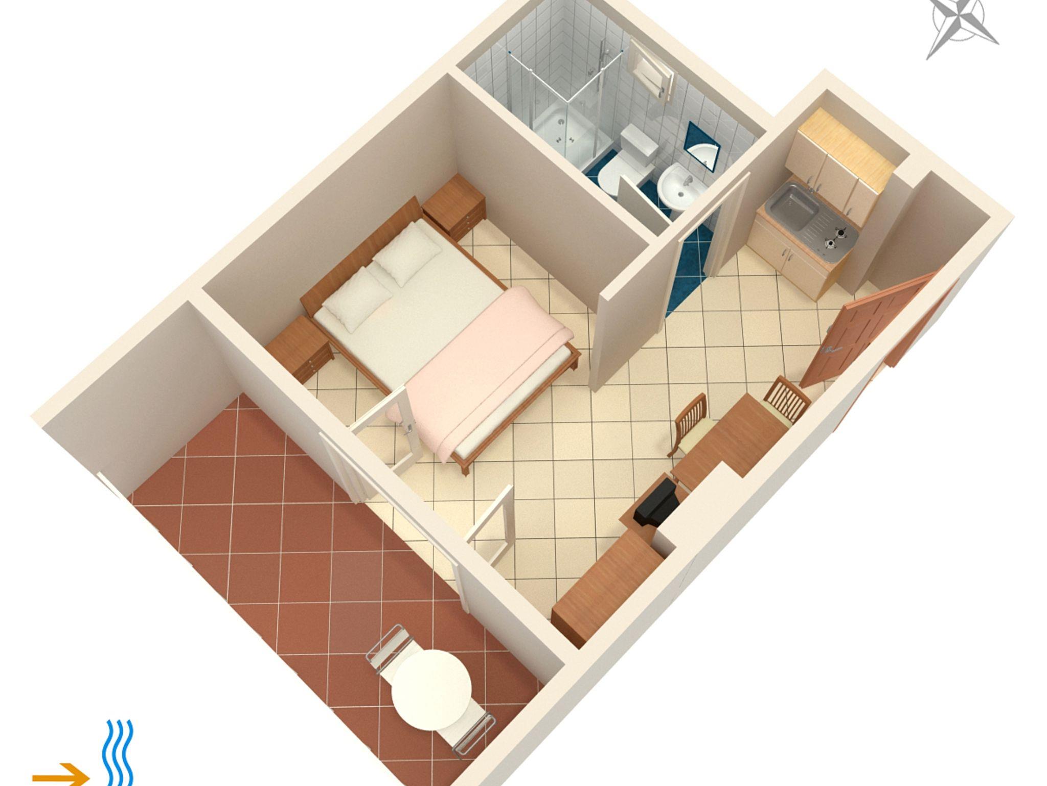 Studio bietet Platz für 2 Gäste. Die Betten sind in Schlafzimmern, die es 1 gibt, innerhalb einer Gesamtfläche von 17m2, angeordnet. Die Gäste haben eine eigene Terrasse zur Verfügung, auf der sie in warmen Sommernächten genießen können. Das Studio-Apartment bietet Meerblick. Es ist erlaubt, Speisen auf dem Gemeinschafts-Grill vorzubereiten. IM PREIS INBEGRIFFEN: Kurtaxe, Endreinigung, Klimatisierung, Parkplatz, Internet, Bügeleisen, Bügelbrett, Föhn. VERBINDLICHE ZUSÄTZLICHE KOSTEN: Aufzahlung für Kurzaufenthalte (prozentualer Zuschlag pro Nächtigungsanzahl: 30% - 1, 20% - 2, 10% - 3). Die Verfügbarkeit zusätzlicher Dienstleistungen in Ihrem reservierten Termin und die Preise derselben (falls nicht aufgeführt) müssen im Voraus überprüft werden. Zusätzliche Dienstleistungen die in der Zahlungsaufforderung nicht aufgeführt sind werden direkt beim Vermieter bezahlt, angenommen der Gast nutzt auch diese. Ermäßigung auf den Grundpreis: Gratistag 14=13 (bei einem Aufenthalt von 14 Tagen oder mehr erhalten Sie einen Gratistag für den Aufenthalt bis 31.12.26).
