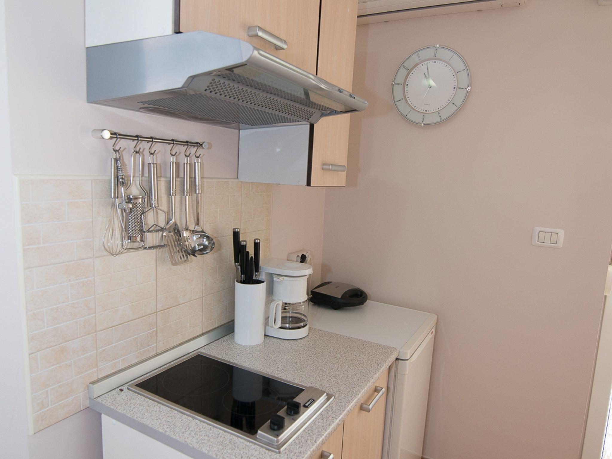 Ferienwohnung bietet Platz für 3 Gäste. Die Betten sind in Schlafzimmern, die es 1 gibt, und in Esszimmer, innerhalb einer Gesamtfläche von 37m2, angeordnet. Die Gäste haben eine eigene Terrasse zur Verfügung, auf der sie in warmen Sommernächten genießen können. Es ist erlaubt, Speisen auf dem Gemeinschafts-Grill vorzubereiten. In der Unterkunftseinheit besteht die Möglichkeit des Mitbringens von Haustieren gegen Aufpreis. IM PREIS INBEGRIFFEN: Kurtaxe, Endreinigung, Klimatisierung, Parkplatz, Internet, Bügeleisen, Föhn. VERBINDLICHE ZUSÄTZLICHE KOSTEN: Aufzahlung für Kurzaufenthalte (prozentualer Zuschlag pro Nächtigungsanzahl: 30% - 1, 20% - 2, 10% - 3). UNVERBINDLICHE ZUSÄTZLICHE KOSTEN: Wäschewaschen (5,00 € Waschen), Haustiere (10,00 € pro Nacht). Die Verfügbarkeit zusätzlicher Dienstleistungen in Ihrem reservierten Termin und die Preise derselben (falls nicht aufgeführt) müssen im Voraus überprüft werden. Zusätzliche Dienstleistungen die in der Zahlungsaufforderung nicht aufgeführt sind werden direkt beim Vermieter bezahlt, angenommen der Gast nutzt auch diese.