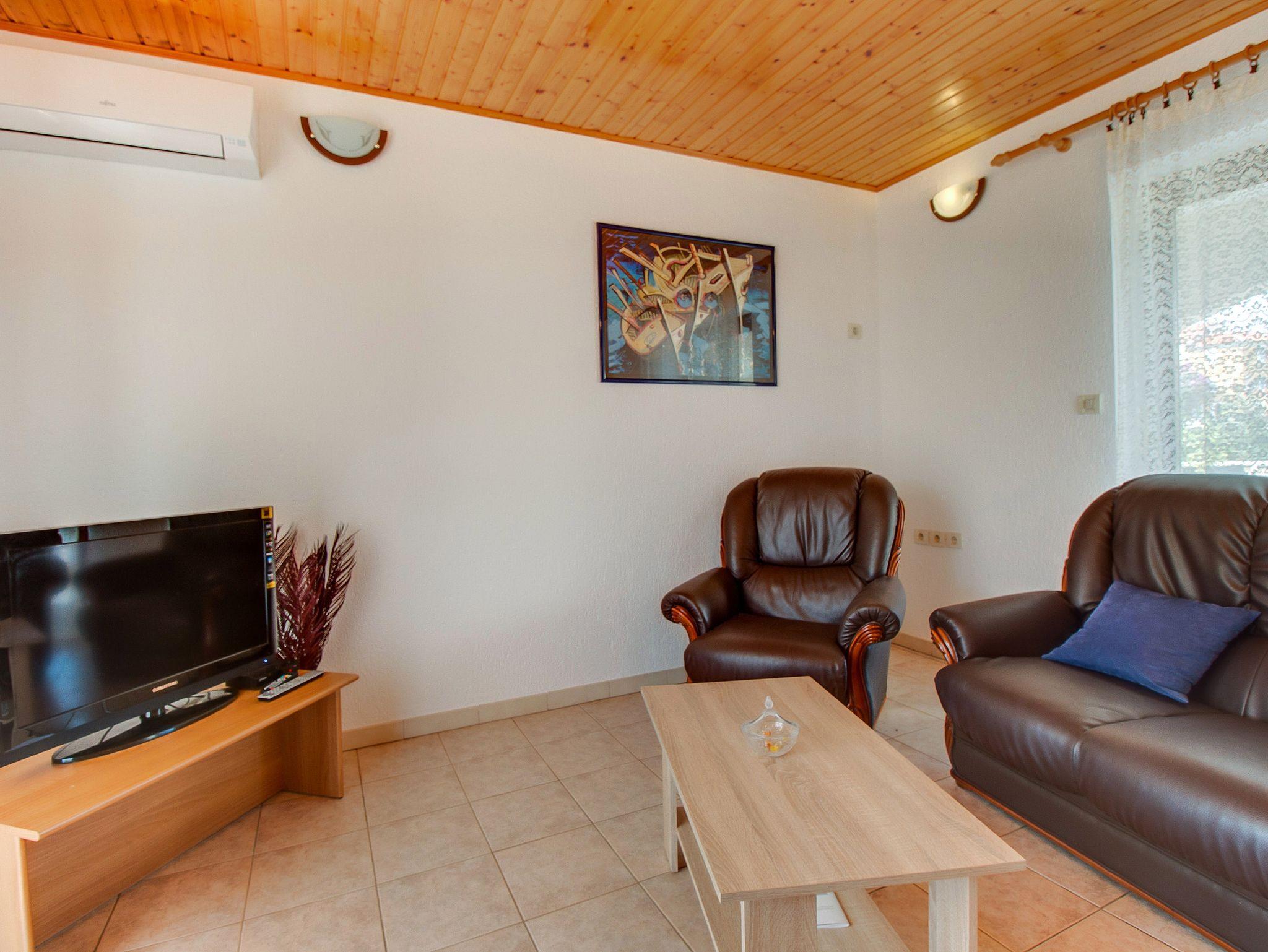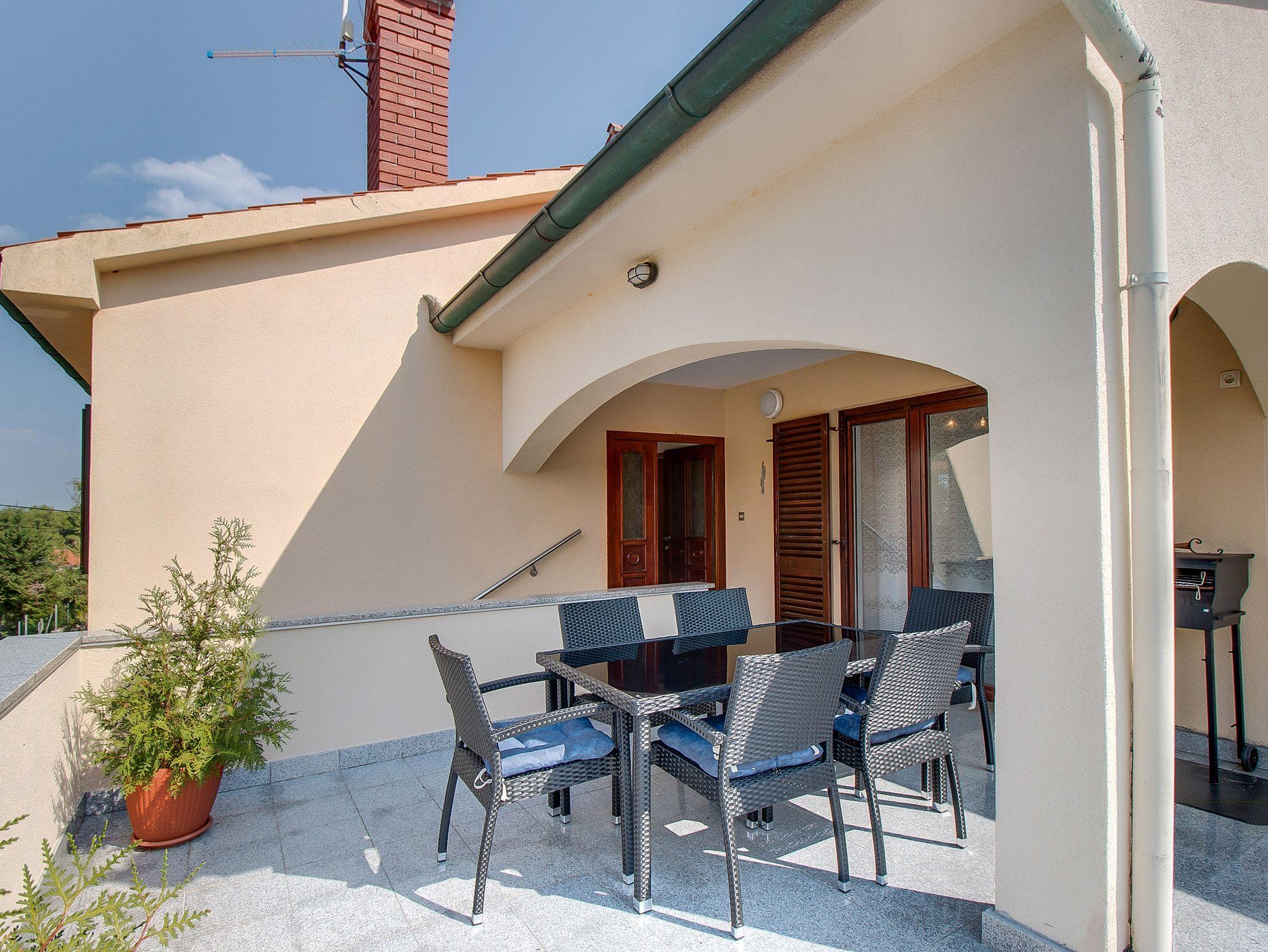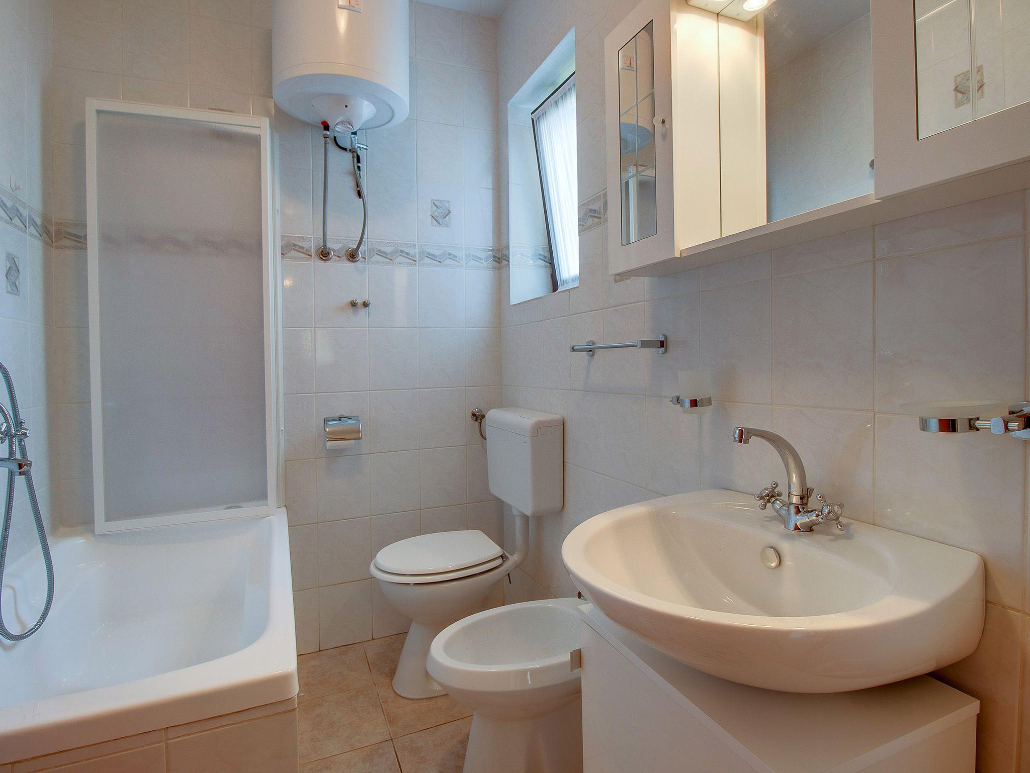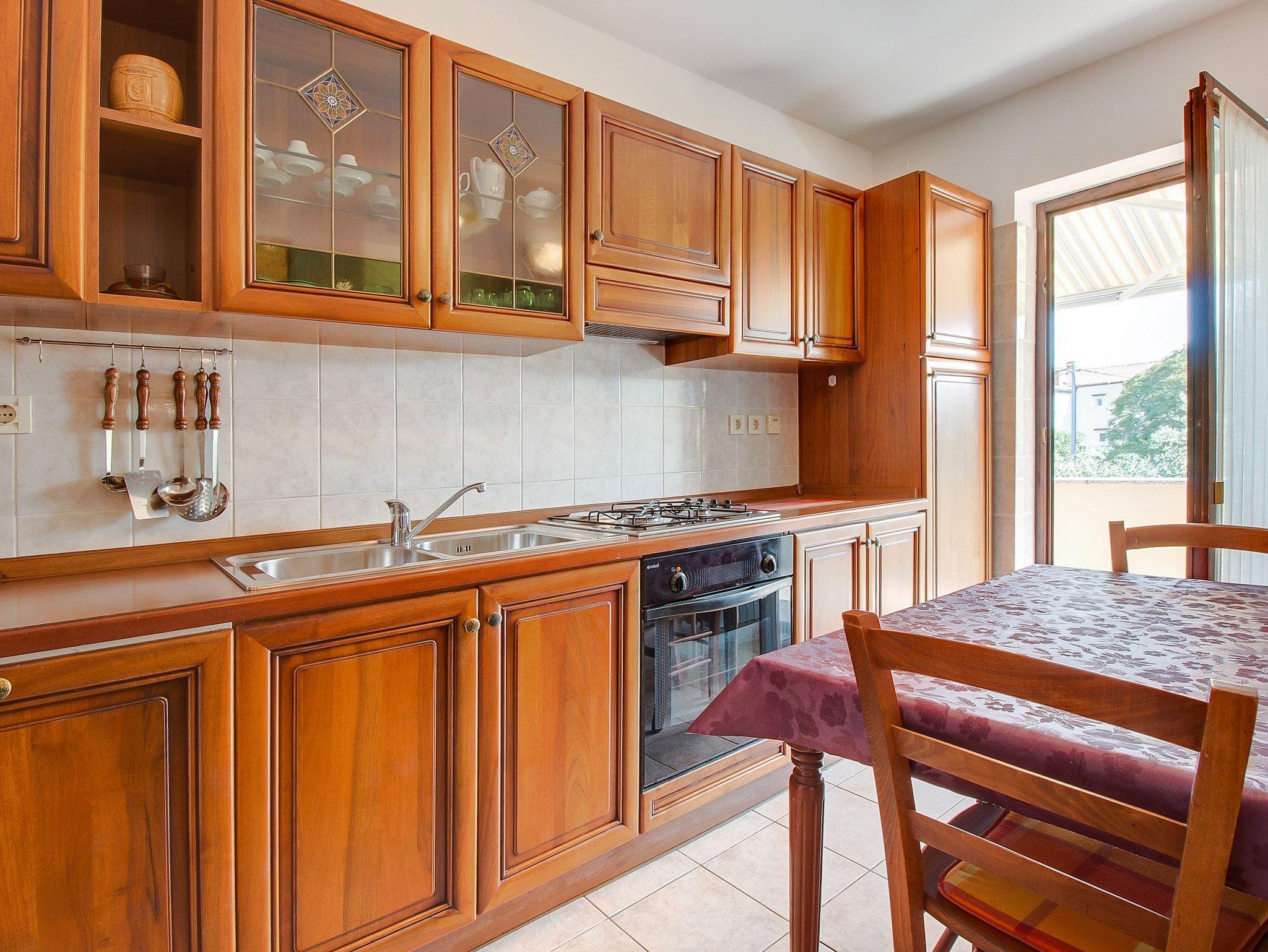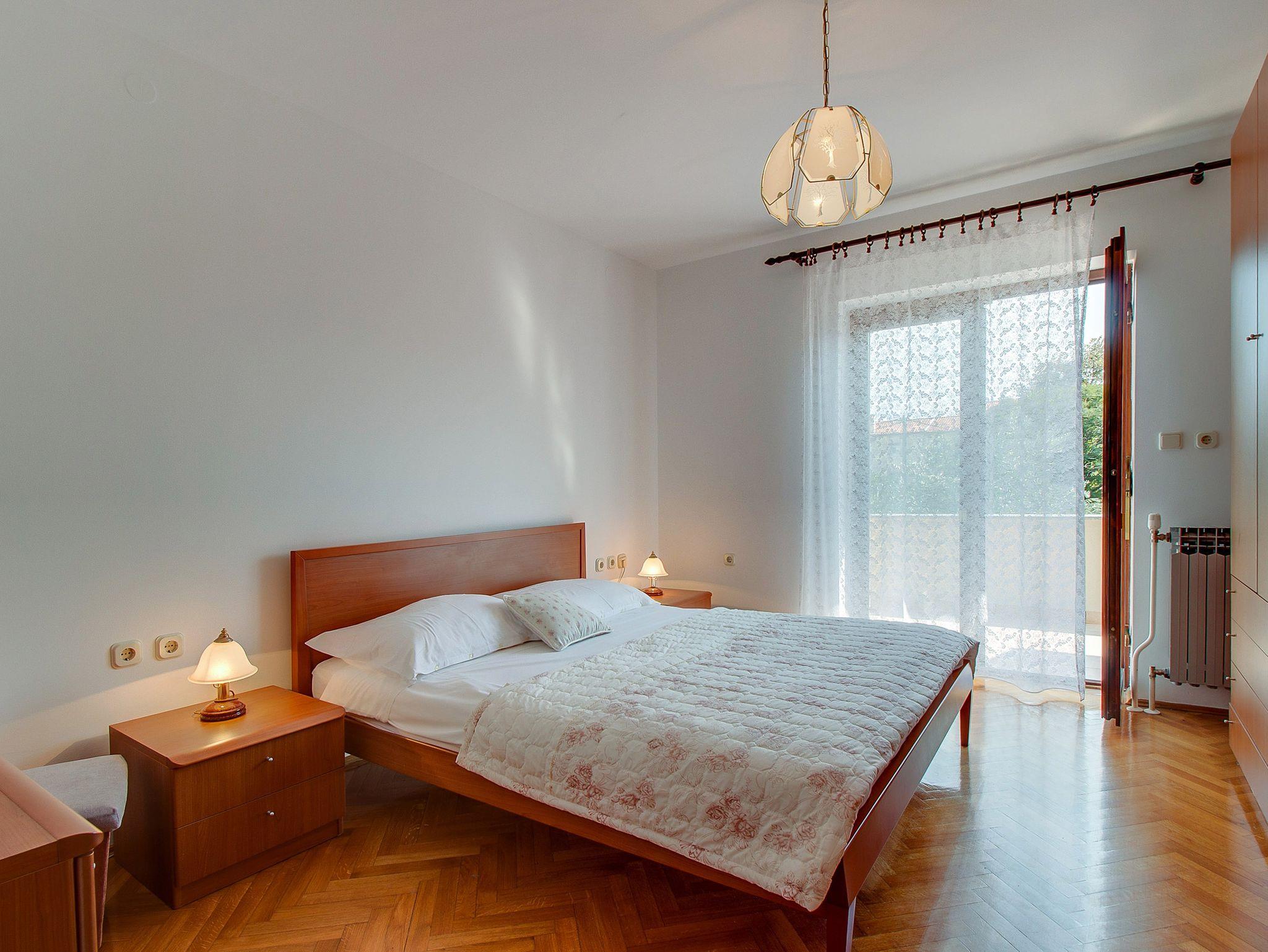 Ferienwohnung bietet Platz für 6 Gäste. Die Betten sind in Schlafzimmern, die es 3 gibt, innerhalb einer Gesamtfläche von 105m2, angeordnet. Die Gäste haben eine eigene Terrasse zur Verfügung, auf der sie in warmen Sommernächten genießen können. Für vollen Genuss und Entspannung gibt es einen privaten Grill für Gäste dieser Unterkunft. IM PREIS INBEGRIFFEN: Kurtaxe, Endreinigung, Klimatisierung, Zentralheizung, Parkplatz, Internet, Bügeleisen, Bügelbrett, Föhn, Sonnenschirm, Liegestühle. VERBINDLICHE ZUSÄTZLICHE KOSTEN: Aufzahlung für Kurzaufenthalte (prozentualer Zuschlag pro Nächtigungsanzahl: 30% - 1, 20% - 2, 10% - 3). Die Verfügbarkeit zusätzlicher Dienstleistungen in Ihrem reservierten Termin und die Preise derselben (falls nicht aufgeführt) müssen im Voraus überprüft werden. Zusätzliche Dienstleistungen die in der Zahlungsaufforderung nicht aufgeführt sind werden direkt beim Vermieter bezahlt, angenommen der Gast nutzt auch diese.