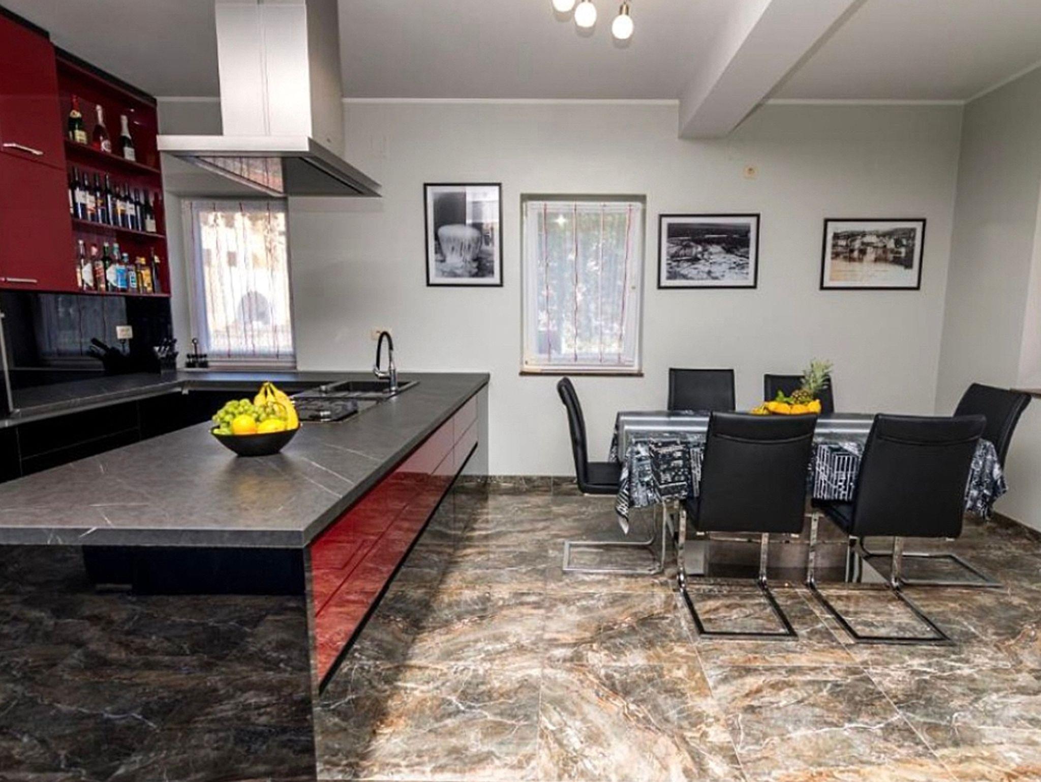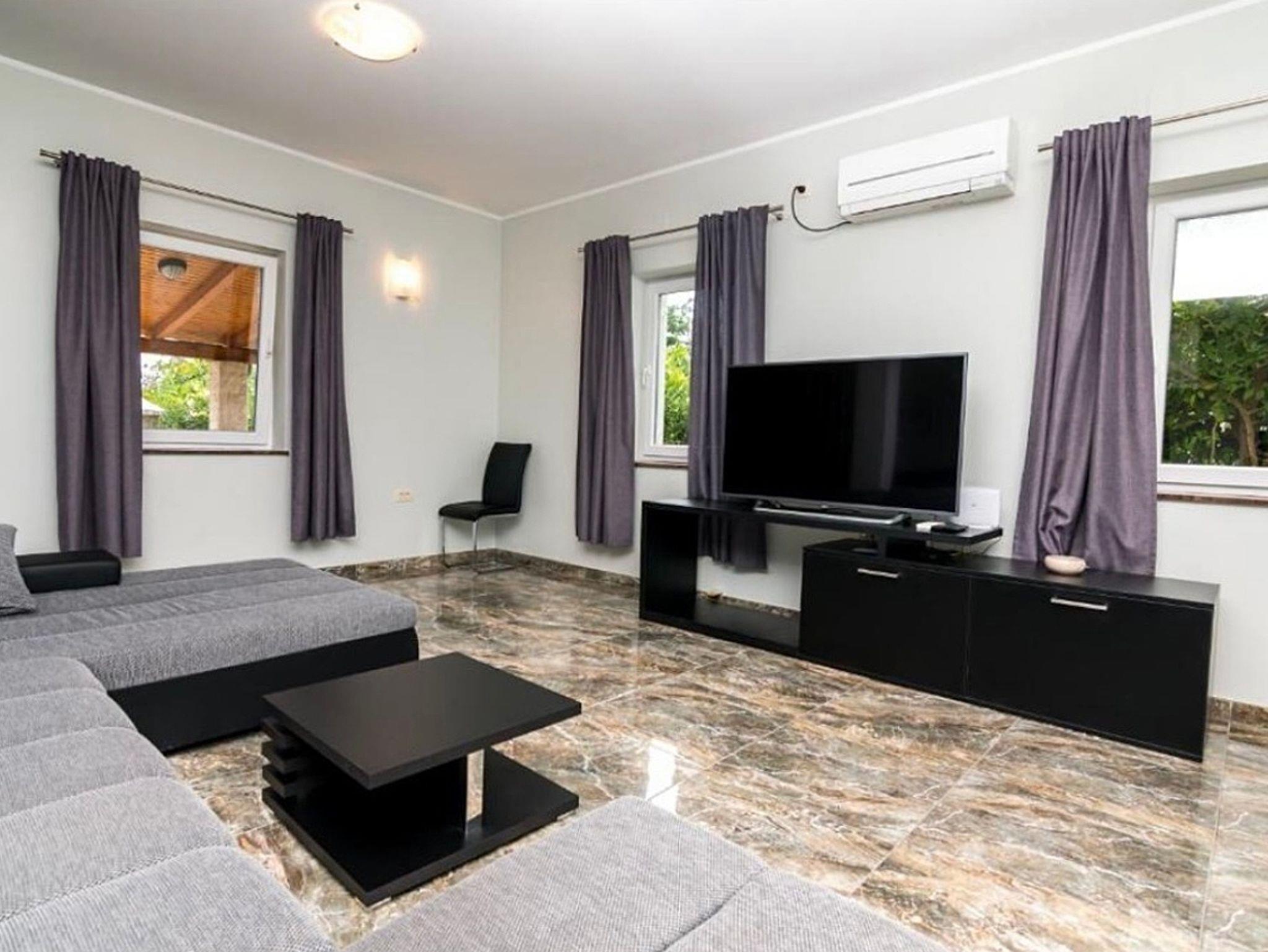 Ferienwohnung bietet Platz für 6 Gäste. Die Betten sind in Schlafzimmern, die es 2 gibt, und in Wohnzimmer, innerhalb einer Gesamtfläche von 86m2, angeordnet. Die Gäste haben eine eigene Terrasse zur Verfügung, auf der sie in warmen Sommernächten genießen können. Das Apartment bietet Meerblick. Für vollen Genuss und Entspannung gibt es einen privaten Grill für Gäste dieser Unterkunft. IM PREIS INBEGRIFFEN: Kurtaxe, Endreinigung, Klimatisierung, Zentralheizung, Parkplatz, Internet, Zusatzbett, Föhn. VERBINDLICHE ZUSÄTZLICHE KOSTEN: Aufzahlung für Kurzaufenthalte (prozentualer Zuschlag pro Nächtigungsanzahl: 30% - 1, 20% - 2, 10% - 3). UNVERBINDLICHE ZUSÄTZLICHE KOSTEN: Wäschewaschen (7,00 € Waschen). Die Verfügbarkeit zusätzlicher Dienstleistungen in Ihrem reservierten Termin und die Preise derselben (falls nicht aufgeführt) müssen im Voraus überprüft werden. Zusätzliche Dienstleistungen die in der Zahlungsaufforderung nicht aufgeführt sind werden direkt beim Vermieter bezahlt, angenommen der Gast nutzt auch diese. Ermäßigung auf den Grundpreis: Gratistag 14=13 (bei einem Aufenthalt von 14 Tagen oder mehr erhalten Sie einen Gratistag für den Aufenthalt bis 31.12.26).