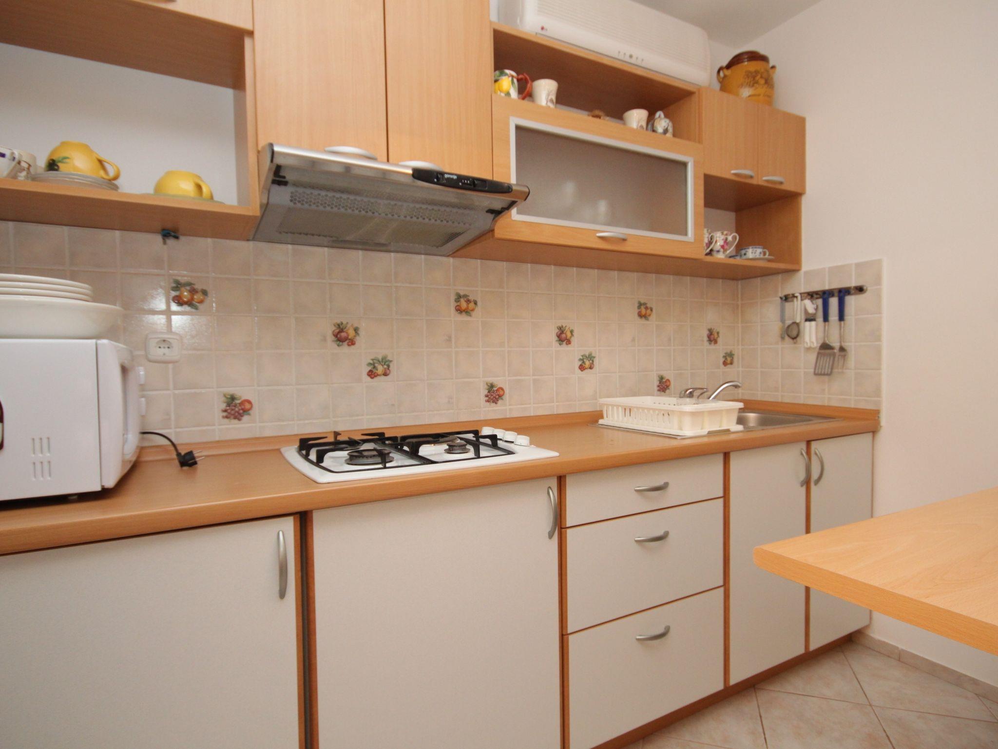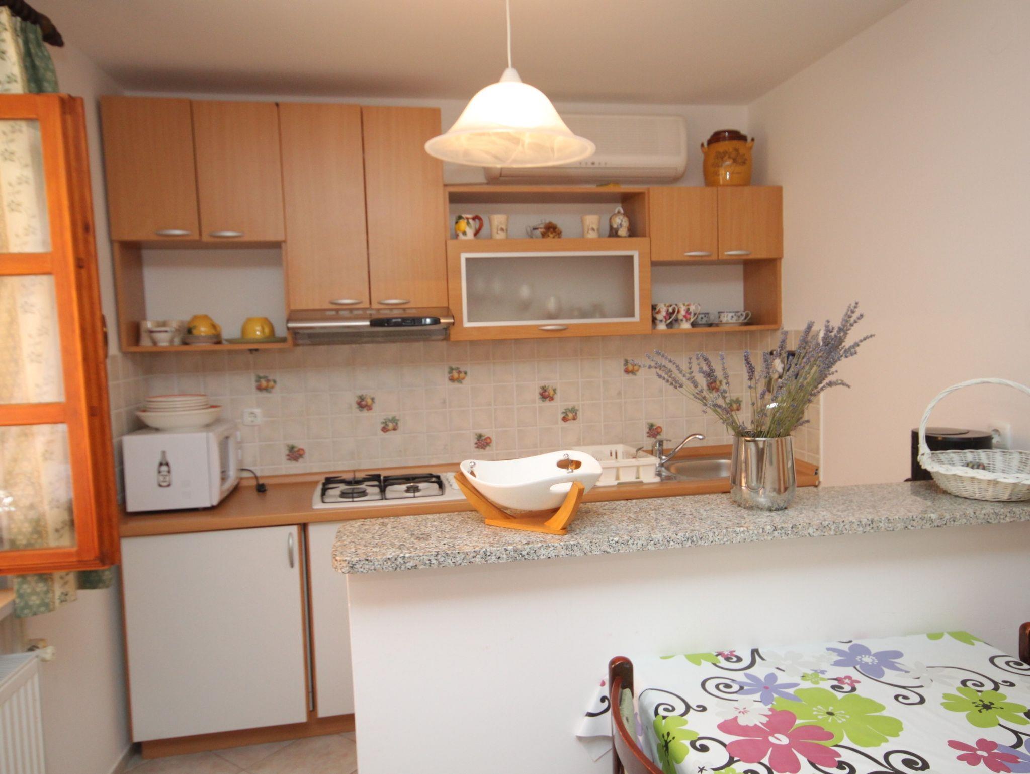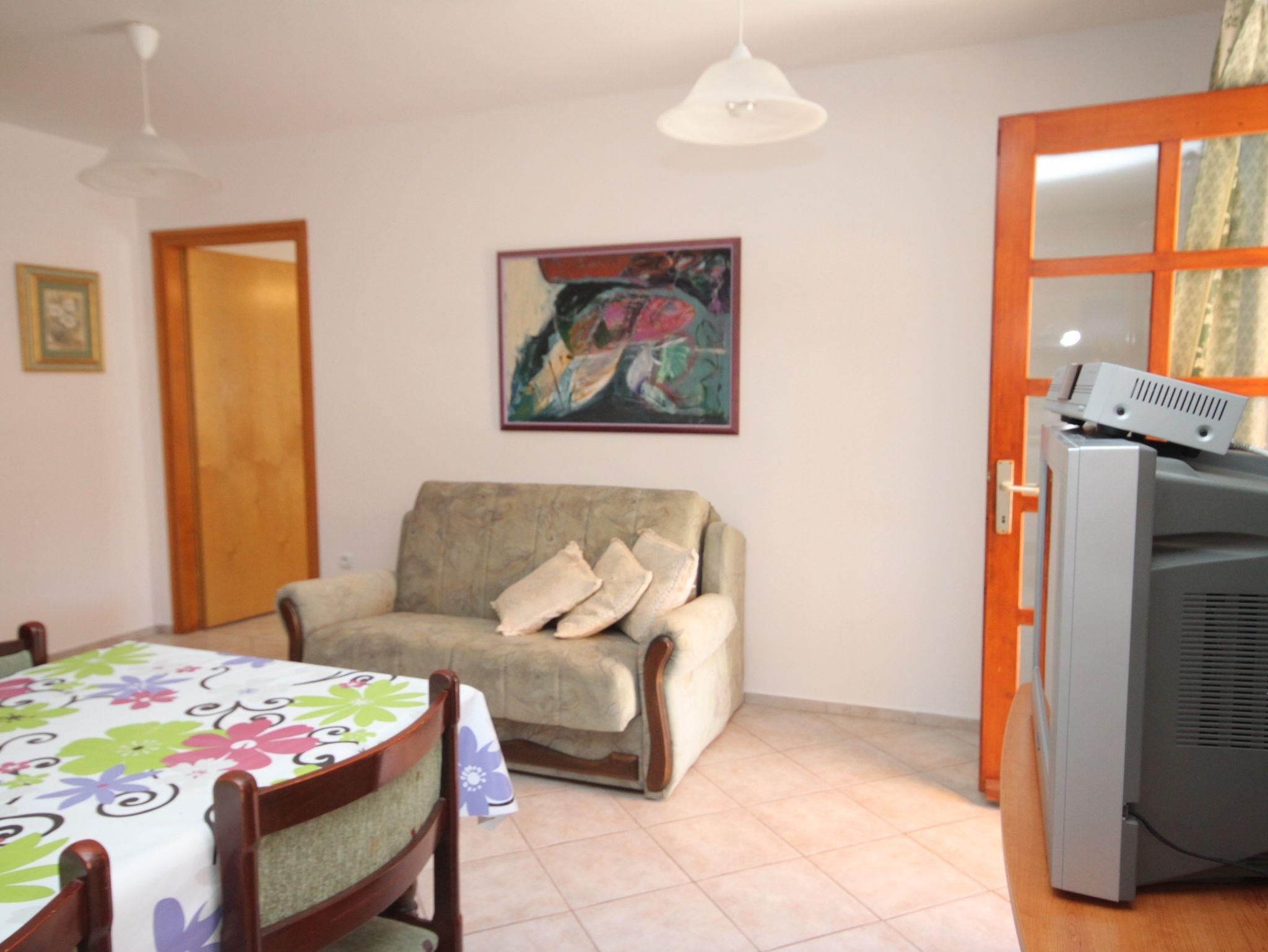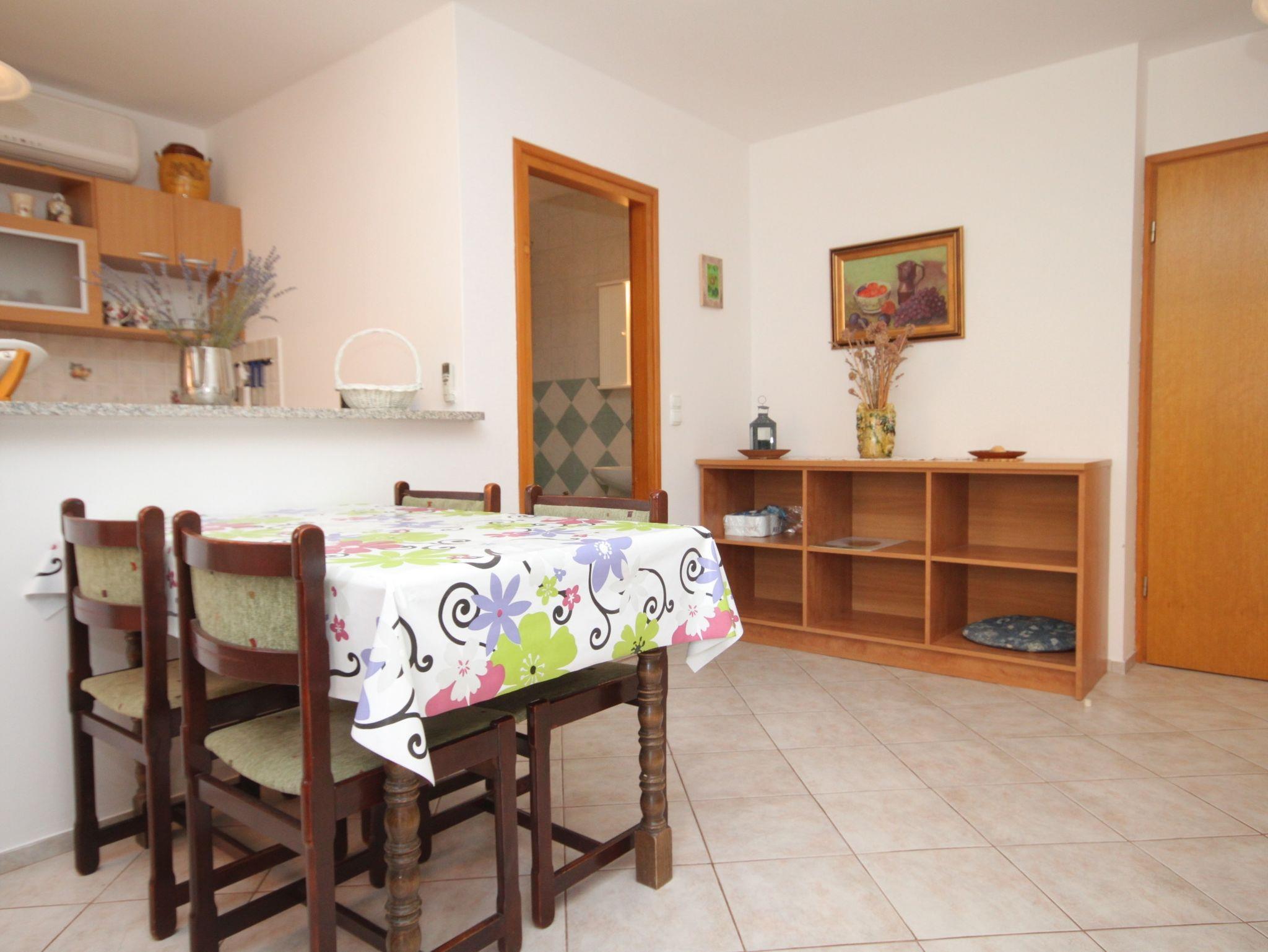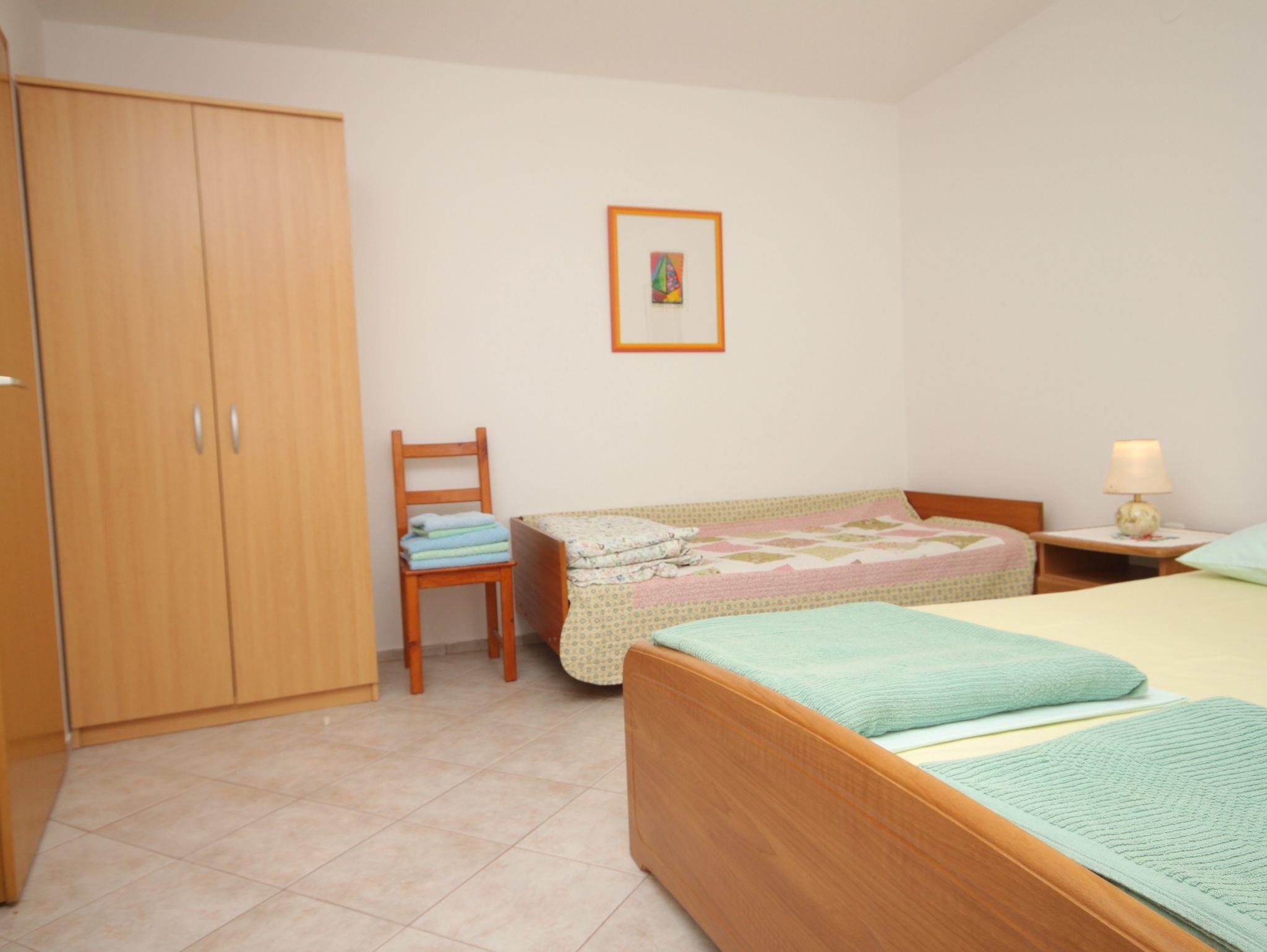 Ferienwohnung bietet Platz für 5 Gäste. Die Betten sind in Schlafzimmern, die es 2 gibt, innerhalb einer Gesamtfläche von 56m2, angeordnet. Die Gäste haben eine eigene Terrasse zur Verfügung, auf der sie in warmen Sommernächten genießen können. Es ist erlaubt, Speisen auf dem Gemeinschafts-Grill vorzubereiten. Unterkunftseinheit hat Räume, die von dem Rest der Einheit abgetrennt werden. IM PREIS INBEGRIFFEN: Kurtaxe, Endreinigung, Wäschewaschen, Bügeleisen, Bügelbrett, Föhn. VERBINDLICHE ZUSÄTZLICHE KOSTEN: Aufzahlung für Kurzaufenthalte (prozentualer Zuschlag pro Nächtigungsanzahl: 30% - 1, 20% - 2, 10% - 3). UNVERBINDLICHE ZUSÄTZLICHE KOSTEN: Klimatisierung (5,00 € pro Nacht). Die Verfügbarkeit zusätzlicher Dienstleistungen in Ihrem reservierten Termin und die Preise derselben (falls nicht aufgeführt) müssen im Voraus überprüft werden. Zusätzliche Dienstleistungen die in der Zahlungsaufforderung nicht aufgeführt sind werden direkt beim Vermieter bezahlt, angenommen der Gast nutzt auch diese. Ermäßigung auf den Grundpreis: Gratistag 14=13 (bei einem Aufenthalt von 14 Tagen oder mehr erhalten Sie einen Gratistag für den Aufenthalt bis 31.12.26).
