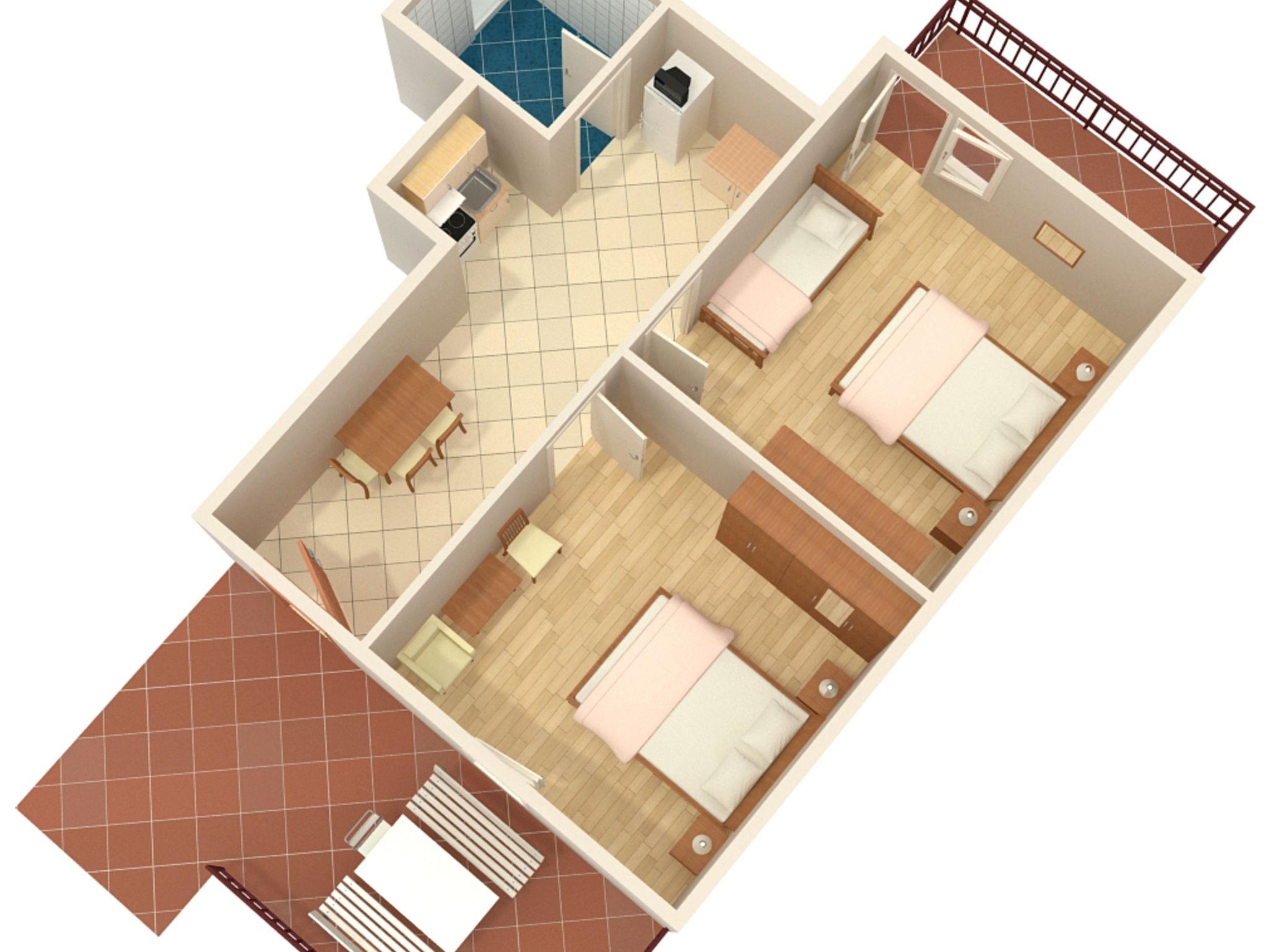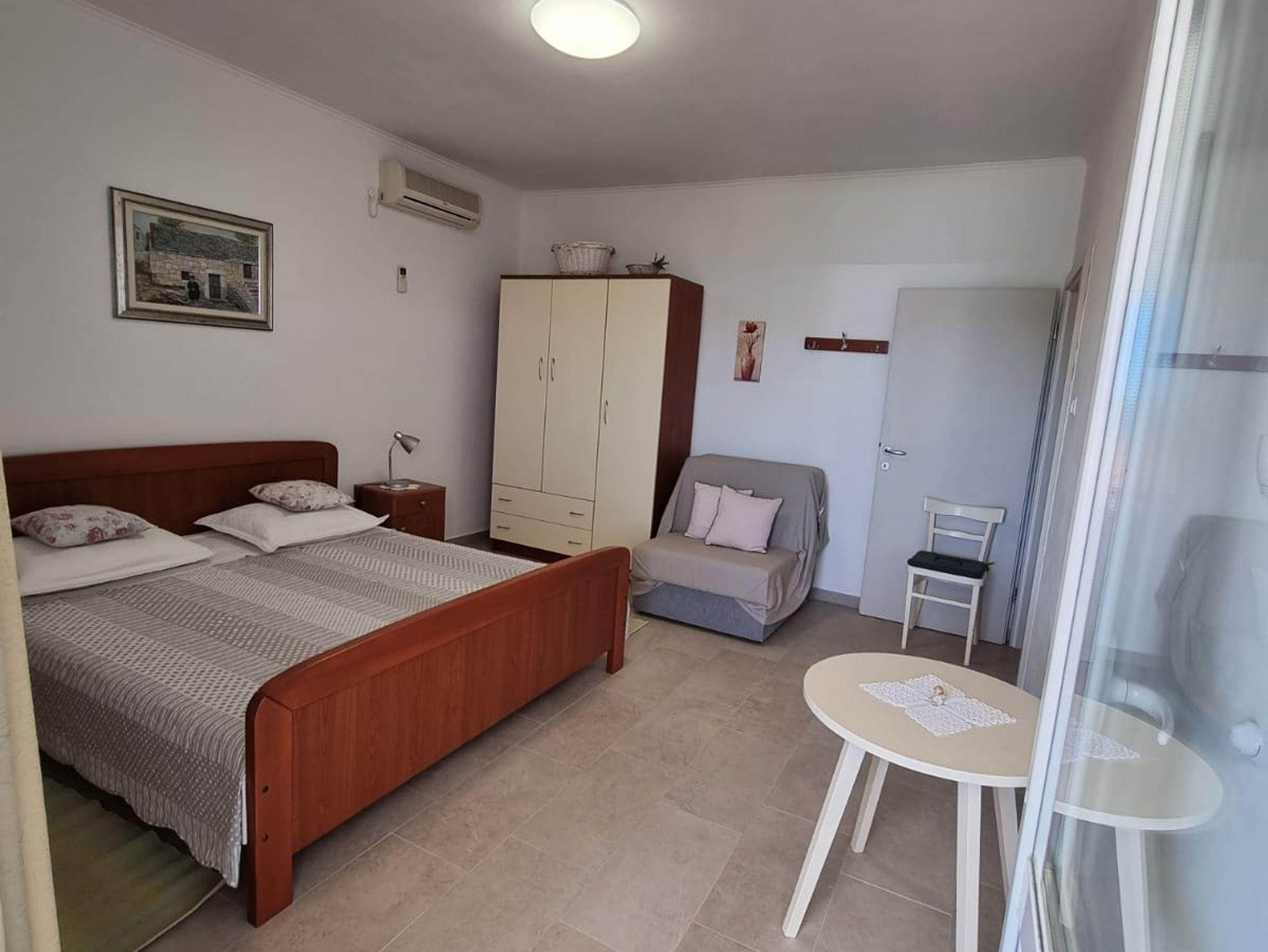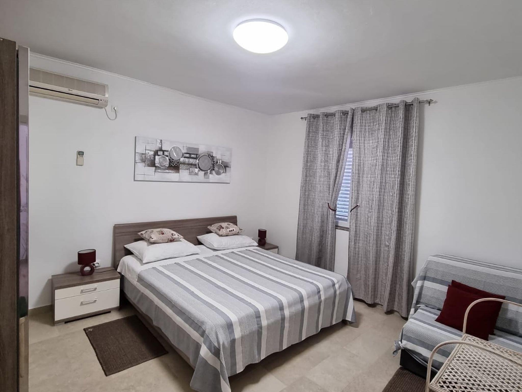Ferienwohnung bietet Platz für 4 Gäste. Die Betten sind in Schlafzimmern, die es 2 gibt, innerhalb einer Gesamtfläche von 50m2, angeordnet. Die Gäste haben eine eigene Terrasse zur Verfügung, auf der sie in warmen Sommernächten genießen können. Das Apartment bietet Meerblick. Es ist erlaubt, Speisen auf dem Gemeinschafts-Grill vorzubereiten. Durch die Terrasse der gebuchten Unterkunftseinheit gehen auch andere Gäste oder Vermieter. IM PREIS INBEGRIFFEN: Kurtaxe, Endreinigung, Klimatisierung, Parkplatz, Internet, Bügeleisen, Bügelbrett, Föhn, tragbarer Grill, Liegestühle. VERBINDLICHE ZUSÄTZLICHE KOSTEN: Aufzahlung für Kurzaufenthalte (prozentualer Zuschlag pro Nächtigungsanzahl: 30% - 1, 20% - 2, 10% - 3). UNVERBINDLICHE ZUSÄTZLICHE KOSTEN: Wäschewaschen (5,00 € Waschen). Die Verfügbarkeit zusätzlicher Dienstleistungen in Ihrem reservierten Termin und die Preise derselben (falls nicht aufgeführt) müssen im Voraus überprüft werden. Zusätzliche Dienstleistungen die in der Zahlungsaufforderung nicht aufgeführt sind werden direkt beim Vermieter bezahlt, angenommen der Gast nutzt auch diese. Ermäßigung auf den Grundpreis: Gratistag 21=19 (bei einem Aufenthalt von 21 Tagen oder mehr erhalten Sie 2 Gratistage für den Aufenthalt bis 31.12.26).