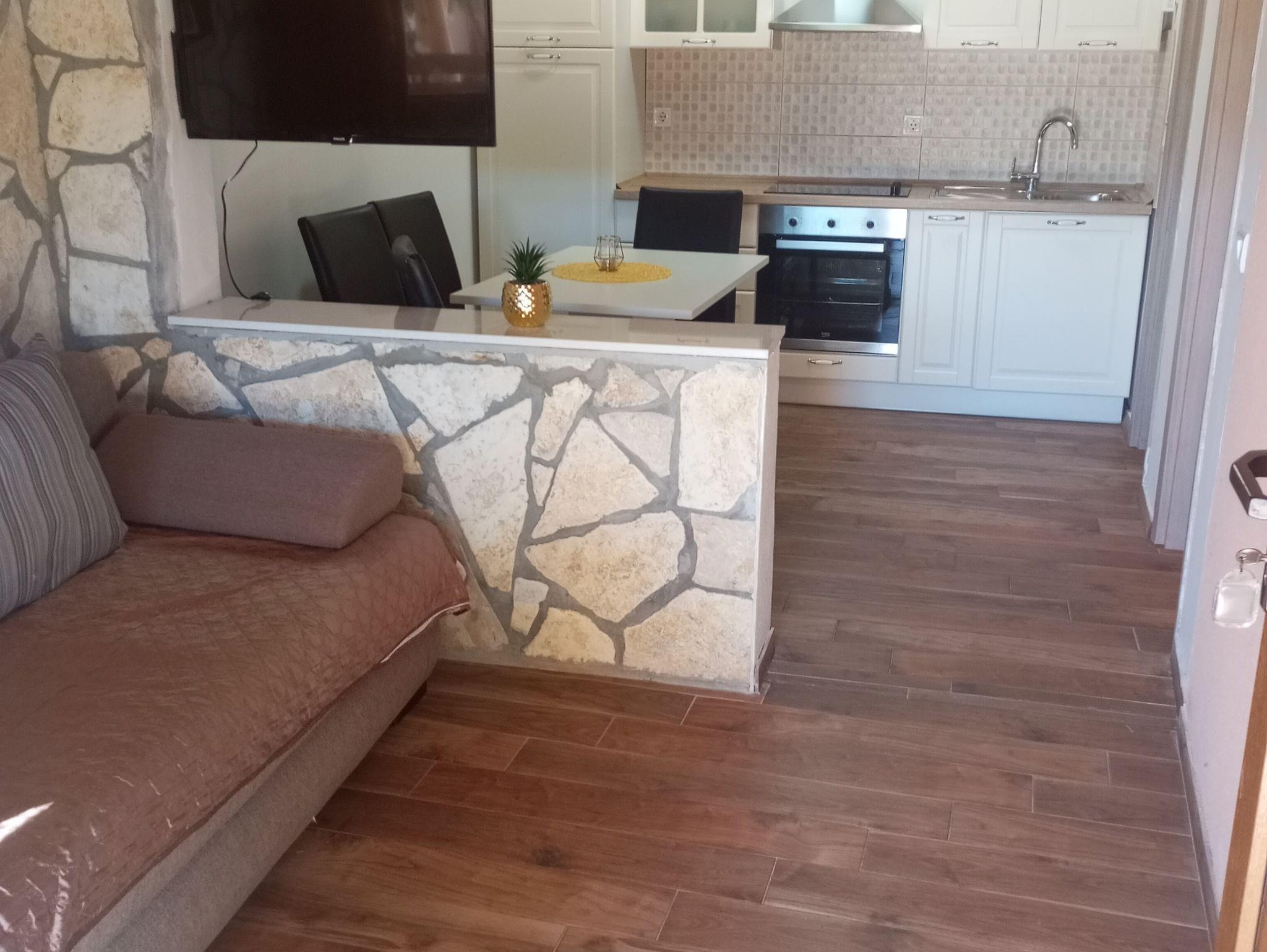Ferienwohnung bietet Platz für 4 Gäste. Die Betten sind in Schlafzimmern, die es 1 gibt, und in Wohnzimmer, innerhalb einer Gesamtfläche von 27m2, angeordnet. Die Gäste haben eine eigene Terrasse zur Verfügung, auf der sie in warmen Sommernächten genießen können. Es ist erlaubt, Speisen auf dem Gemeinschafts-Grill vorzubereiten. In der Unterkunftseinheit besteht die Möglichkeit des Mitbringens von Haustieren, und die Dienstleistung ist im Preis der Unterkunft enthalten. IM PREIS INBEGRIFFEN: Endreinigung, Klimatisierung, Parkplatz, Internet, Bootsanlegeplatz, Haustiere, Bügeleisen, Bügelbrett, Föhn. VERBINDLICHE ZUSÄTZLICHE KOSTEN: Kurtaxe (Erwachsene 0,93 € - 1,50 € Nacht/Person, Kinderermäßigung 12 - 17 Jahre), Aufzahlung für Kurzaufenthalte (prozentualer Zuschlag pro Nächtigungsanzahl: 30% - 1, 20% - 2, 10% - 3). UNVERBINDLICHE ZUSÄTZLICHE KOSTEN: Wäschewaschen (10,00 € Waschen). Die Verfügbarkeit zusätzlicher Dienstleistungen in Ihrem reservierten Termin und die Preise derselben (falls nicht aufgeführt) müssen im Voraus überprüft werden. Zusätzliche Dienstleistungen die in der Zahlungsaufforderung nicht aufgeführt sind werden direkt beim Vermieter bezahlt, angenommen der Gast nutzt auch diese.