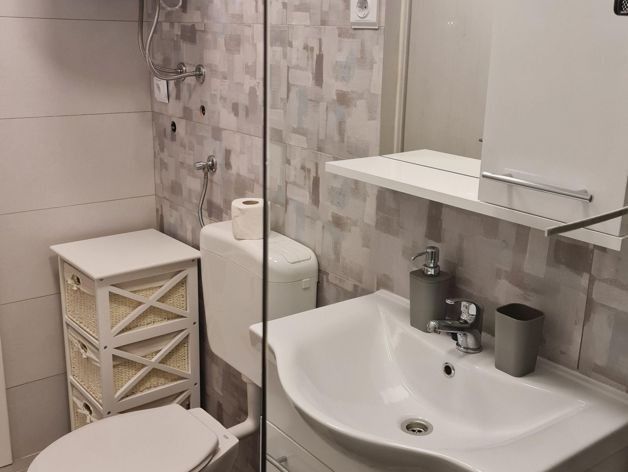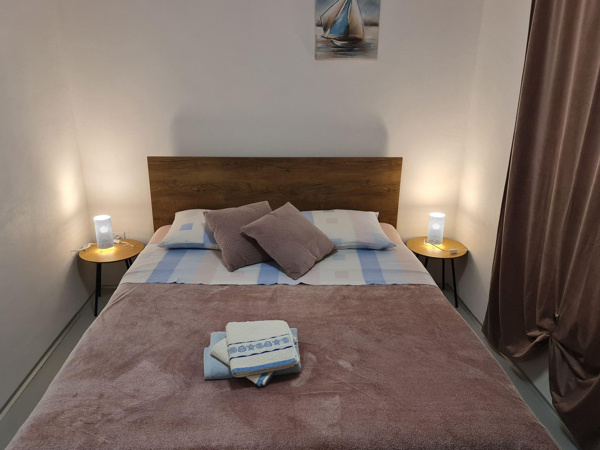 Ferienwohnung bietet Platz für 5 Gäste. Die Betten sind in Schlafzimmern, die es 2 gibt, und in Wohnzimmer, innerhalb einer Gesamtfläche von 53m2, angeordnet. Die Gäste haben eine eigene Terrasse zur Verfügung, auf der sie in warmen Sommernächten genießen können. Das Apartment bietet Meerblick. Es ist erlaubt, Speisen auf dem Gemeinschafts-Grill vorzubereiten. In der Unterkunftseinheit besteht die Möglichkeit des Mitbringens von Haustieren gegen Aufpreis. IM PREIS INBEGRIFFEN: Kurtaxe, Endreinigung, Klimatisierung, Parkplatz, Internet, Bootsanlegeplatz, Kinderbett, Bügeleisen, Föhn, Liegestühle. VERBINDLICHE ZUSÄTZLICHE KOSTEN: Aufzahlung für Kurzaufenthalte (prozentualer Zuschlag pro Nächtigungsanzahl: 30% - 1, 20% - 2, 10% - 3). UNVERBINDLICHE ZUSÄTZLICHE KOSTEN: Haustiere (5,00 € pro Nacht). Die Verfügbarkeit zusätzlicher Dienstleistungen in Ihrem reservierten Termin und die Preise derselben (falls nicht aufgeführt) müssen im Voraus überprüft werden. Zusätzliche Dienstleistungen die in der Zahlungsaufforderung nicht aufgeführt sind werden direkt beim Vermieter bezahlt, angenommen der Gast nutzt auch diese.