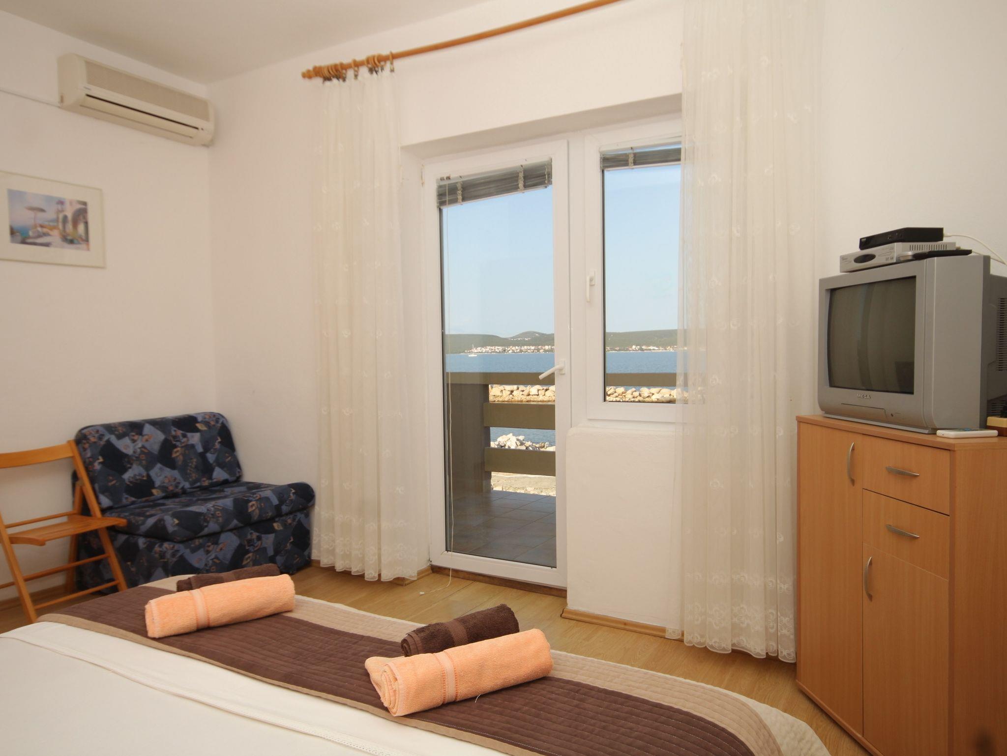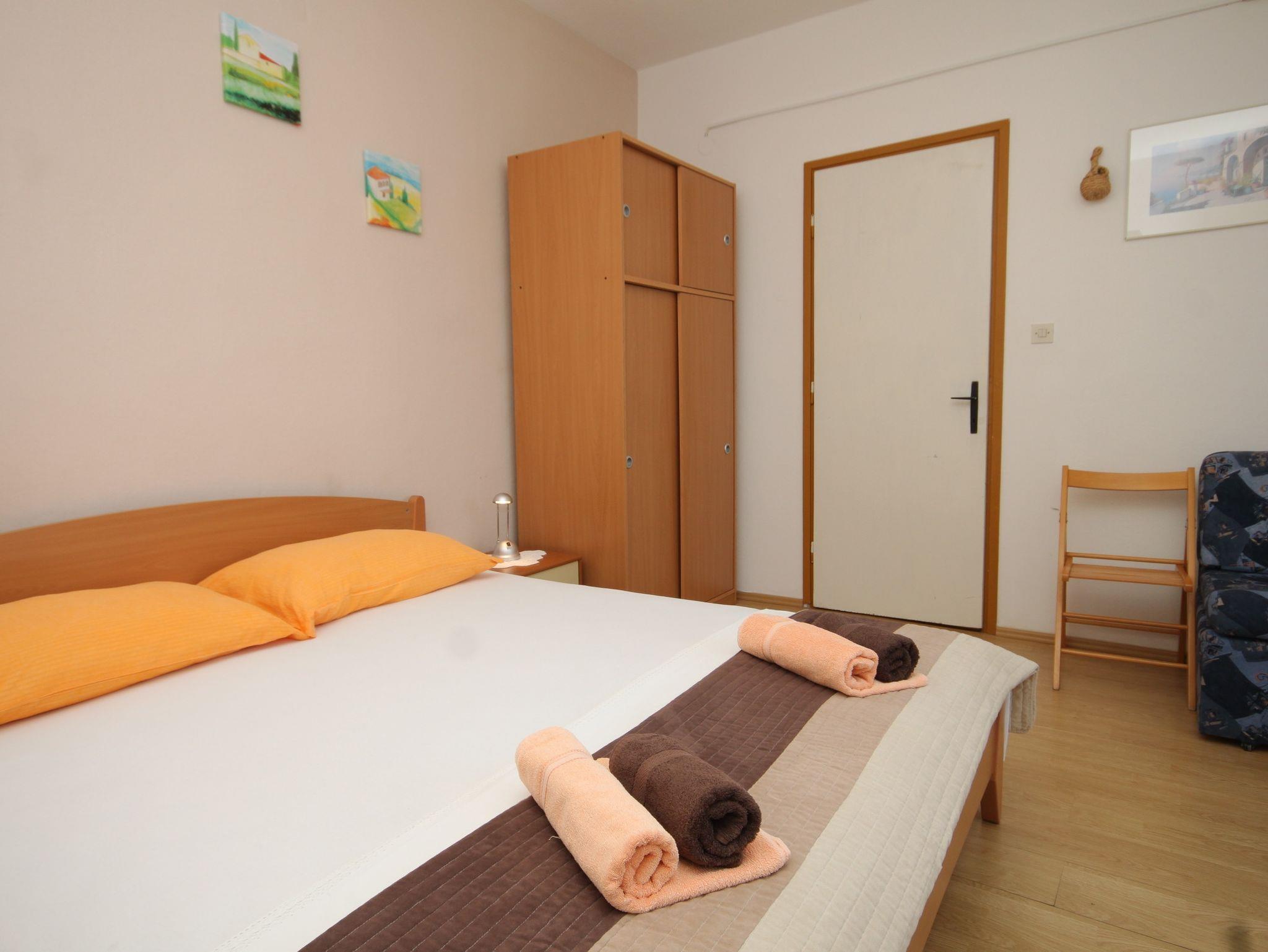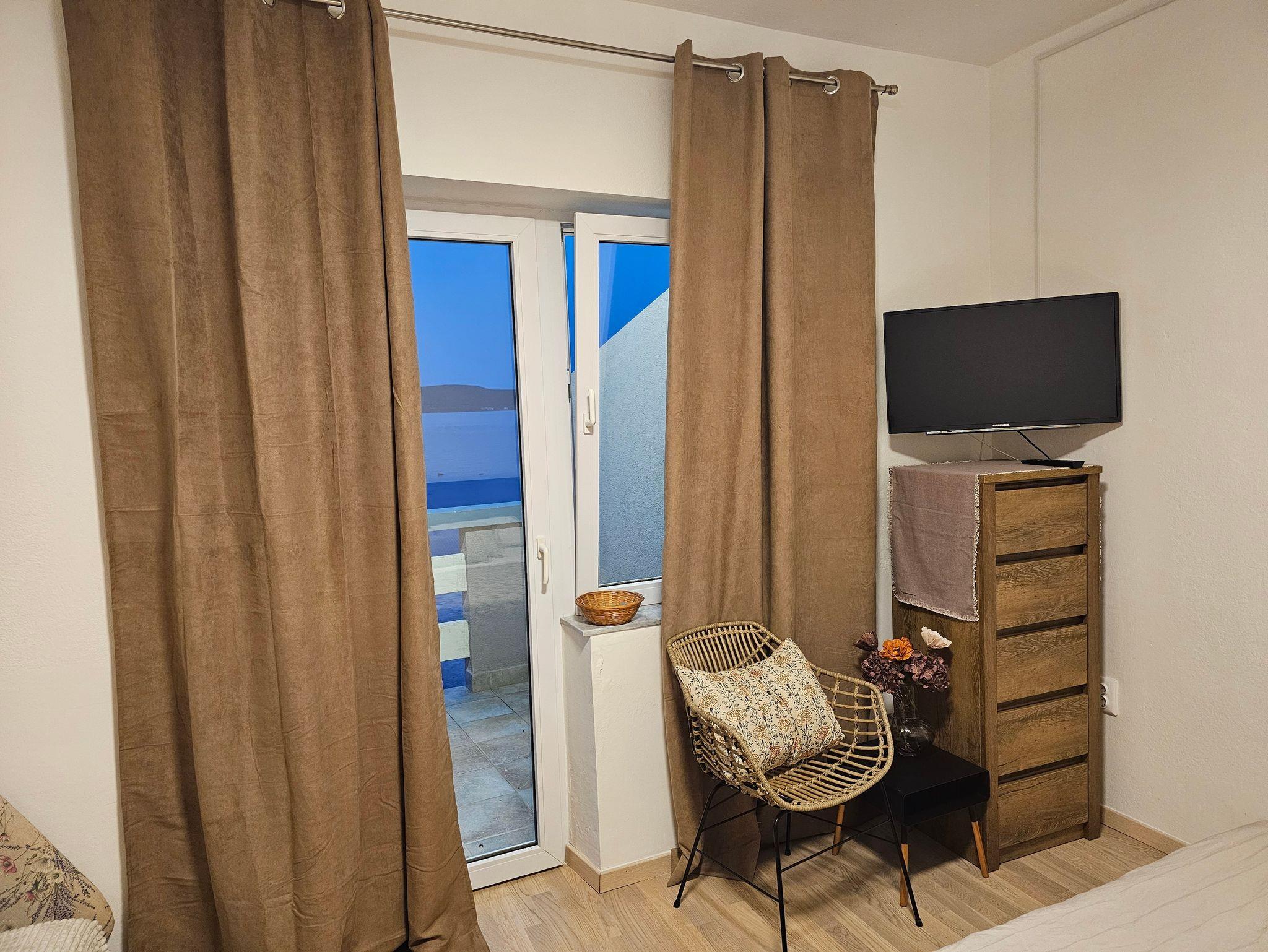 Ferienwohnung bietet Platz für 3 Gäste. Die Betten sind in Schlafzimmern, die es 1 gibt, innerhalb einer Gesamtfläche von 23m2, angeordnet. Die Gäste haben eine eigene Terrasse zur Verfügung, auf der sie in warmen Sommernächten genießen können. Das Apartment bietet Meerblick. Es ist erlaubt, Speisen auf dem Gemeinschafts-Grill vorzubereiten. In der Unterkunftseinheit besteht die Möglichkeit des Mitbringens von Haustieren gegen Aufpreis. IM PREIS INBEGRIFFEN: Kurtaxe, Endreinigung, Klimatisierung, Parkplatz, Internet, Bootsanlegeplatz, Kinderbett, Bügeleisen, Föhn, Liegestühle. VERBINDLICHE ZUSÄTZLICHE KOSTEN: Aufzahlung für Kurzaufenthalte (prozentualer Zuschlag pro Nächtigungsanzahl: 30% - 1, 20% - 2, 10% - 3). UNVERBINDLICHE ZUSÄTZLICHE KOSTEN: Haustiere (5,00 € pro Nacht). Die Verfügbarkeit zusätzlicher Dienstleistungen in Ihrem reservierten Termin und die Preise derselben (falls nicht aufgeführt) müssen im Voraus überprüft werden. Zusätzliche Dienstleistungen die in der Zahlungsaufforderung nicht aufgeführt sind werden direkt beim Vermieter bezahlt, angenommen der Gast nutzt auch diese.
