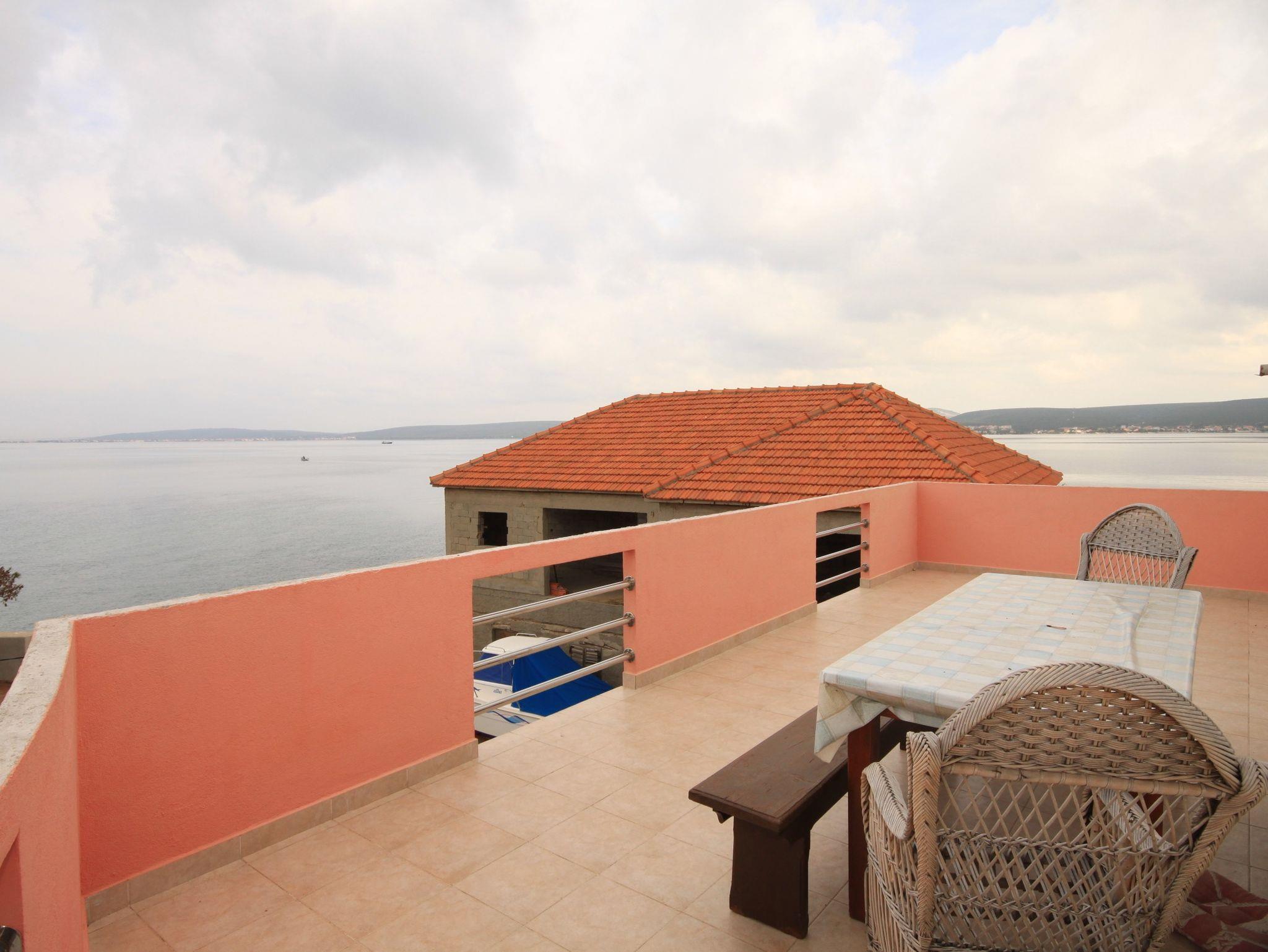 Ferienwohnung bietet Platz für 6 Gäste. Die Betten sind in Schlafzimmern, die es 2 gibt, und in Wohnzimmer, innerhalb einer Gesamtfläche von 77m2, angeordnet. Die Gäste haben eine eigene Terrasse zur Verfügung, auf der sie in warmen Sommernächten genießen können. Das Apartment bietet Meerblick. Es ist erlaubt, Speisen auf dem Gemeinschafts-Grill vorzubereiten. IM PREIS INBEGRIFFEN: Kurtaxe, Endreinigung, Parkplatz, Internet. VERBINDLICHE ZUSÄTZLICHE KOSTEN: Aufzahlung für Kurzaufenthalte (prozentualer Zuschlag pro Nächtigungsanzahl: 30% - 1, 20% - 2, 10% - 3). UNVERBINDLICHE ZUSÄTZLICHE KOSTEN: Zusatzbett (5,00 € pro Nacht). Die Verfügbarkeit zusätzlicher Dienstleistungen in Ihrem reservierten Termin und die Preise derselben (falls nicht aufgeführt) müssen im Voraus überprüft werden. Zusätzliche Dienstleistungen die in der Zahlungsaufforderung nicht aufgeführt sind werden direkt beim Vermieter bezahlt, angenommen der Gast nutzt auch diese.